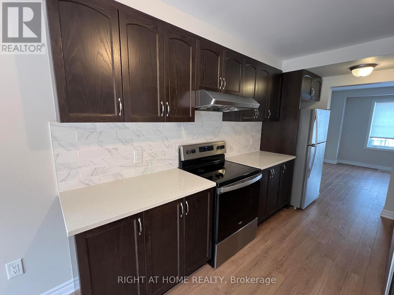 Modern 3 storey end row unit, 4 bedroom, 2 full ensuite bathrooms, total 3.5 bathrooms, open kitchen with quartz island to accommodate breakfast eating counter space, pot lights in family room, trendy glass door shower stall in master ensuite and MF bedroom with ensuite bath, luxury vinyl tiles and laminating flooring through out, only carpeting on the staircases, quartz countertops in Kitchen and all full bathrooms, 2004 sq ft of luxury living space in 3 level, main floor laundry, rear attached double garage and huge 2nd level balcony off eating area.5 appliances. Ready for you to move in. All offer to lease must accompany with full credit report - Landlord only consider full credit and tenant report obtained from SINGLEKEY.COM and select the option to share to listing agent, completed rental application, proof of employment, copy of latest paystub, deposit cheque in bank draft or certified cheque. No smoking and no pet. Tenant will provide tenant liability insurance, pays gas, hydro, water and on demand hot water heater rental, tenant responsible for lawn mow and snow removal. (id:49712)