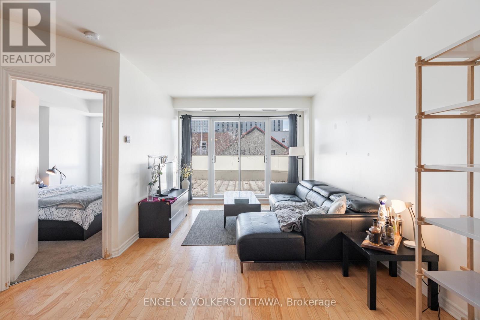 Enjoy living in the heart of the action in downtown Ottawa in this furnished apartment. Just steps from Ottawa U, the Rideau Centre, and an array of restaurants and coffee shops, this condo offers the perfect urban lifestyle. Inside, you'll find a spacious open-concept layout featuring a modern kitchen with quartz countertops, hardwood flooring in the living area, in-unit laundry, and a unique private outdoor terrace. Residents have access to premium amenities, including a 24-hour concierge, indoor pool, sauna, two fitness centres, theatre, party room, and outdoor terraces with BBQs. Walking distance to the ByWard Market, Rideau Canal, Parliament, LRT, galleries, museums, and more. Heat and water are included in the rent. Parking not included. Storage locker included. (id:49712)