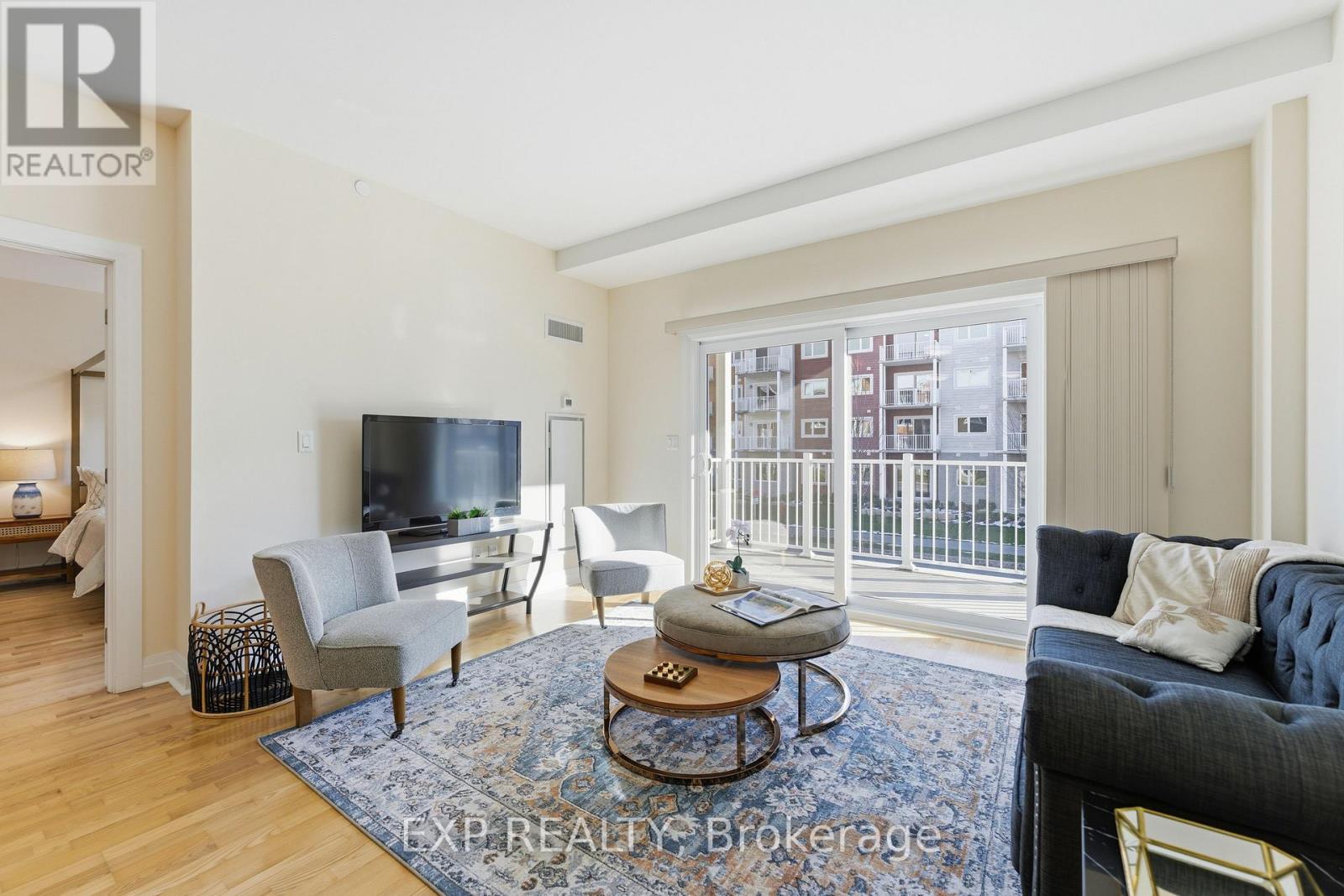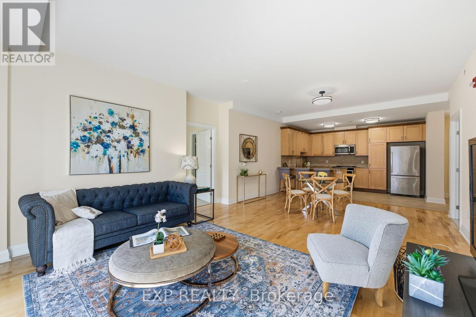 Bright and modern, this 2-bedroom, 2-bath unit at 207C-258 Coleman Street in the sought-after Johanne's Court community of Carleton Place offers comfortable and stylish living. The open-concept living and dining area is filled with natural light from large windows, while the kitchen features elegant granite countertops. The primary bedroom boasts a private ensuite bathroom, while the second bedroom offers convenient Jack-and-Jill access to the full bathroom. Additional highlights include a private balcony, in-unit laundry, and access to high-end amenities such as a games lounge, yoga studio, indoor pool, fitness centre, and a tranquil communal garden and courtyard. Ideally located close to shopping, dining, and stunning outdoor spaces, this unit combines convenience with a vibrant community lifestyle. (id:49712)