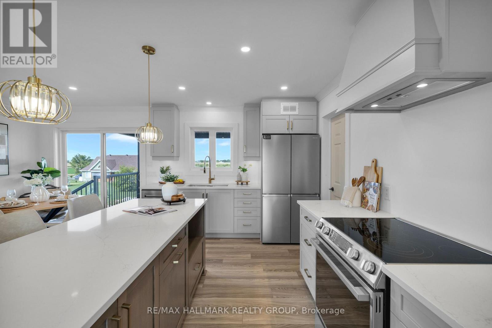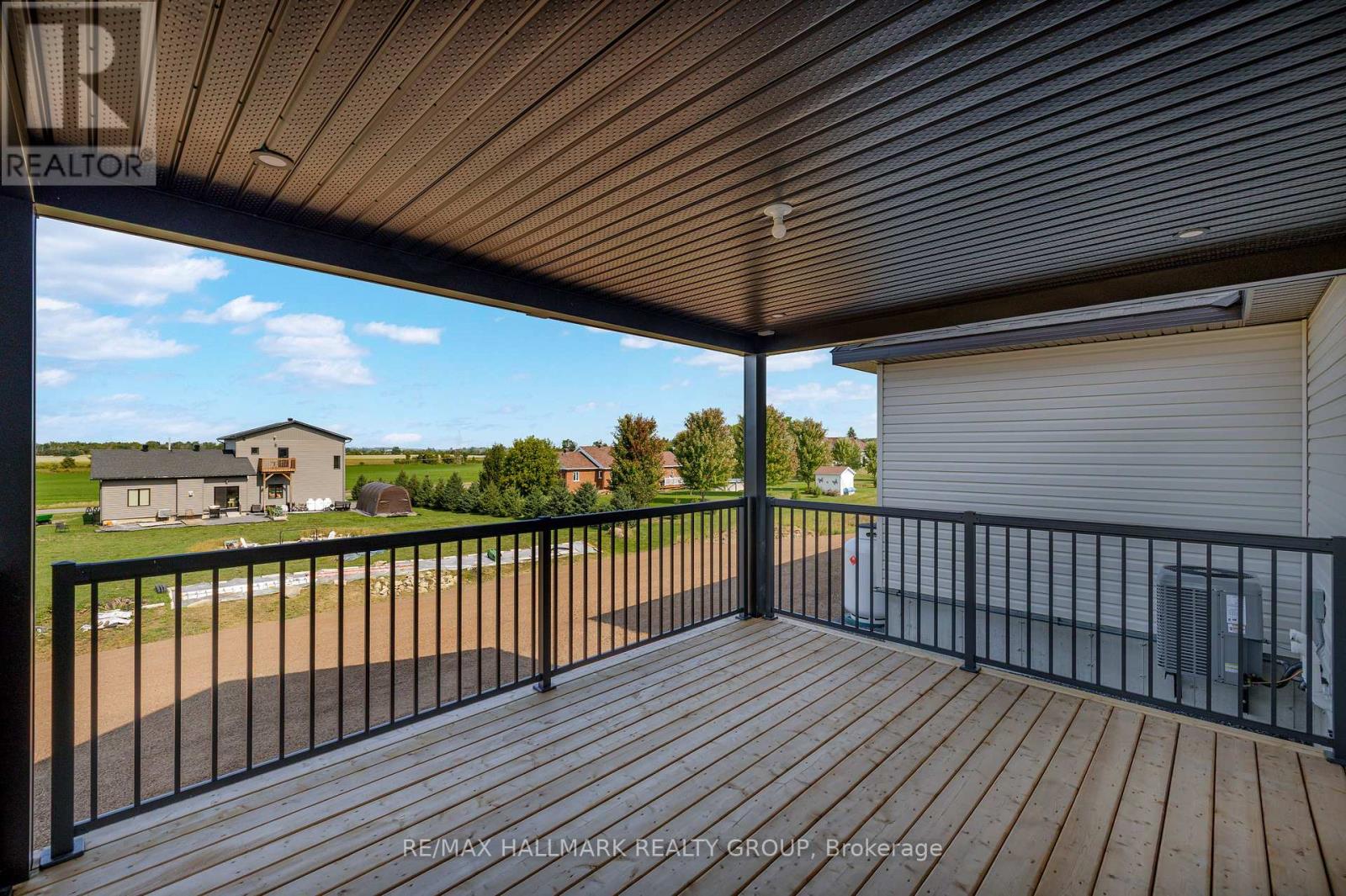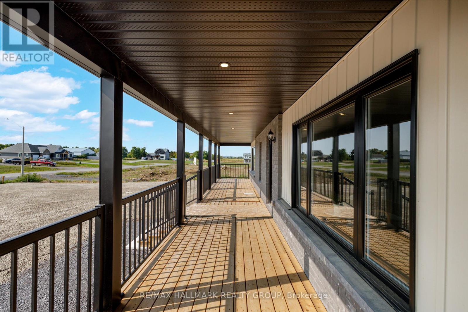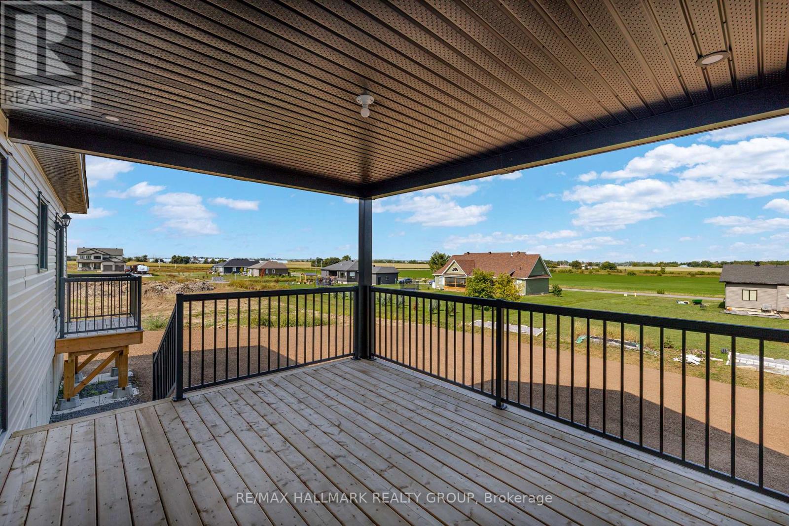Welcome to this brand new 2 bedroom, 2 bathroom custom built Guildcrest bungalow in Russell Ridge Estates! Fabulous curb appeal with the amazing welcoming covered front porch spanning the entire length of the home, perfect to enjoy morning coffee or to relax. Modern open-concept floor plan. The bright and inviting living room features a gas fireplace flanked by windows on each side. The gorgeous kitchen includes an abundance of maple cabinets, quartz counters, trendy gold coloured fixtures and a large island (7'5" x 3') with a breakfast bar. The kitchen has access to the laundry room and additional pantry shelving. The dining area features a beverage bar, additional cabinetry and has patio door access to the rear deck. The primary bedroom suite enjoys a 3 piece ensuite bathroom with double shower, as well as a large walk-in closet, and patio door access to a private deck. A second good-sized bedroom and full 4 piece bathroom complete the main level. The unfinished basement is nice and high and ready for your personal touch with insulation and drywall already in place on the walls and a rough-in for a future bathroom. Great backyard space. There is a large covered rear deck (15'5" x 12') to enjoy BBQ's and outdoor living. You'll love the huge 3 car garage with inside access. Front and year yards are hydro seeded. Driveway will be paved soon. Quick access to amenities in Russell Village as well as in Embrun. Minimum 24 hour irrevocable on offers. (id:49712)