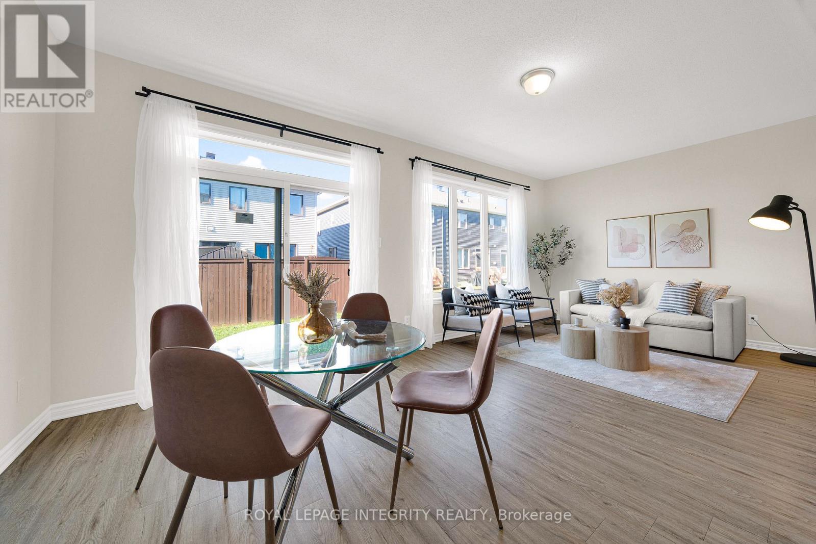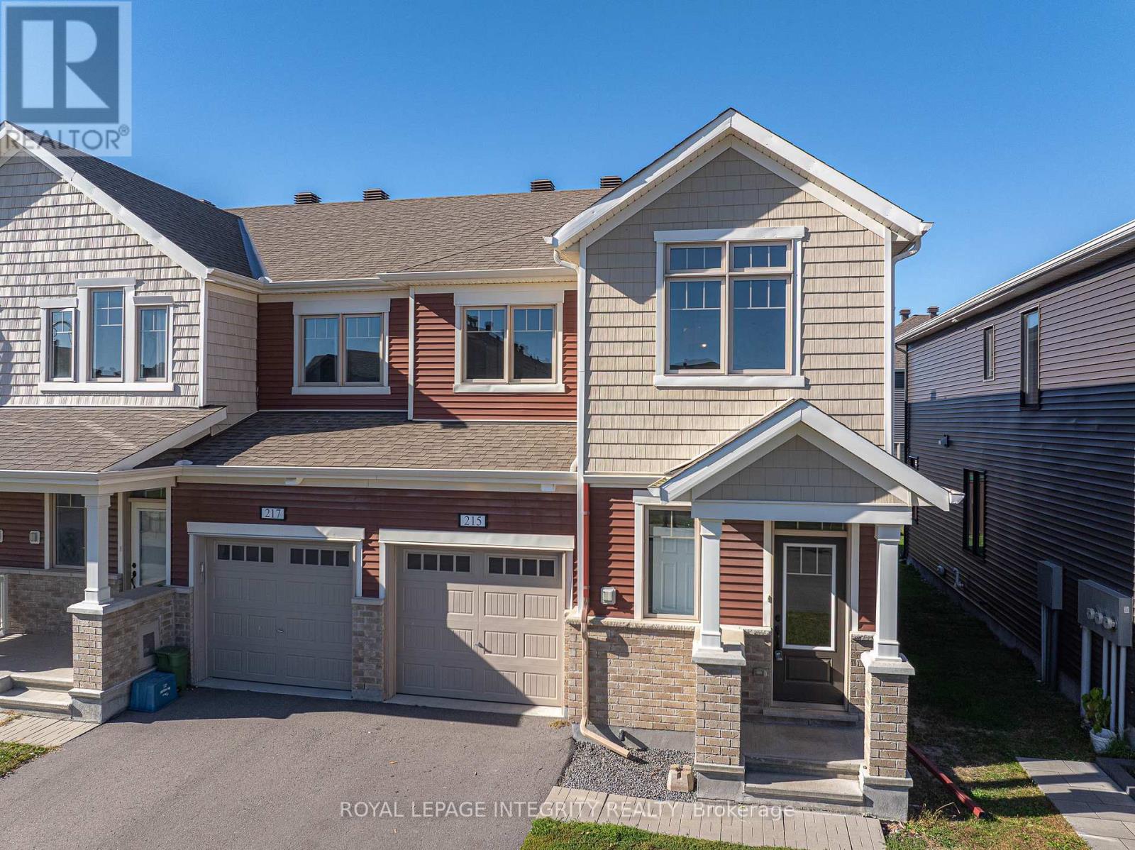 Welcome to the stunning Majestic End model by Mattamy Homes, ideally located in the heart of Half Moon Bay, one of Ottawa's most sought-after family communities. This end-unit townhome combines space, comfort, and modern design, featuring a layout that maximizes natural light and functionality.The main floor showcases an open-concept design with 9-foot ceilings, a foyer closet, convenient stop/drop built-in shelving, and a powder room adjacent to the inside entry. The kitchen offers abundant cabinet space, a breakfast bar, and an eat-in area, while the spacious living and dining rooms provide the perfect setting for relaxation or entertaining guests. Upstairs, the primary bedroom features a walk-in closet and a -4 piece ensuite, while the two additional bedrooms are generously sized and share a full bath and laundry room on the same floor.What truly sets this home apart is its location: directly across from a beautiful park, providing serene views, and just a 5-minute drive to the soon-to-open Food Basics, Minto Recreation Complex, and Half Moon Bay Public School putting everything your family needs within easy reach. With its thoughtful layout, high-quality finishes, and access to excellent community amenities, 215 Merak Way is more than just a home its a lifestyle, perfect for growing families or anyone seeking a vibrant, welcoming neighborhood. (id:49712)