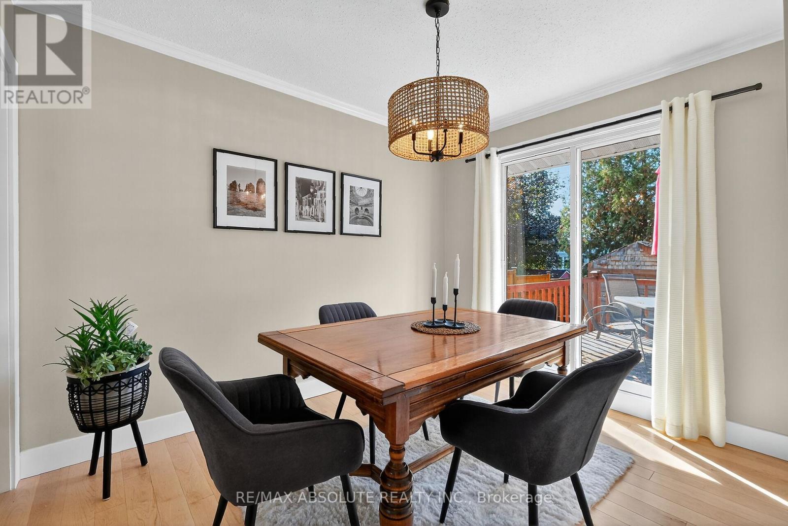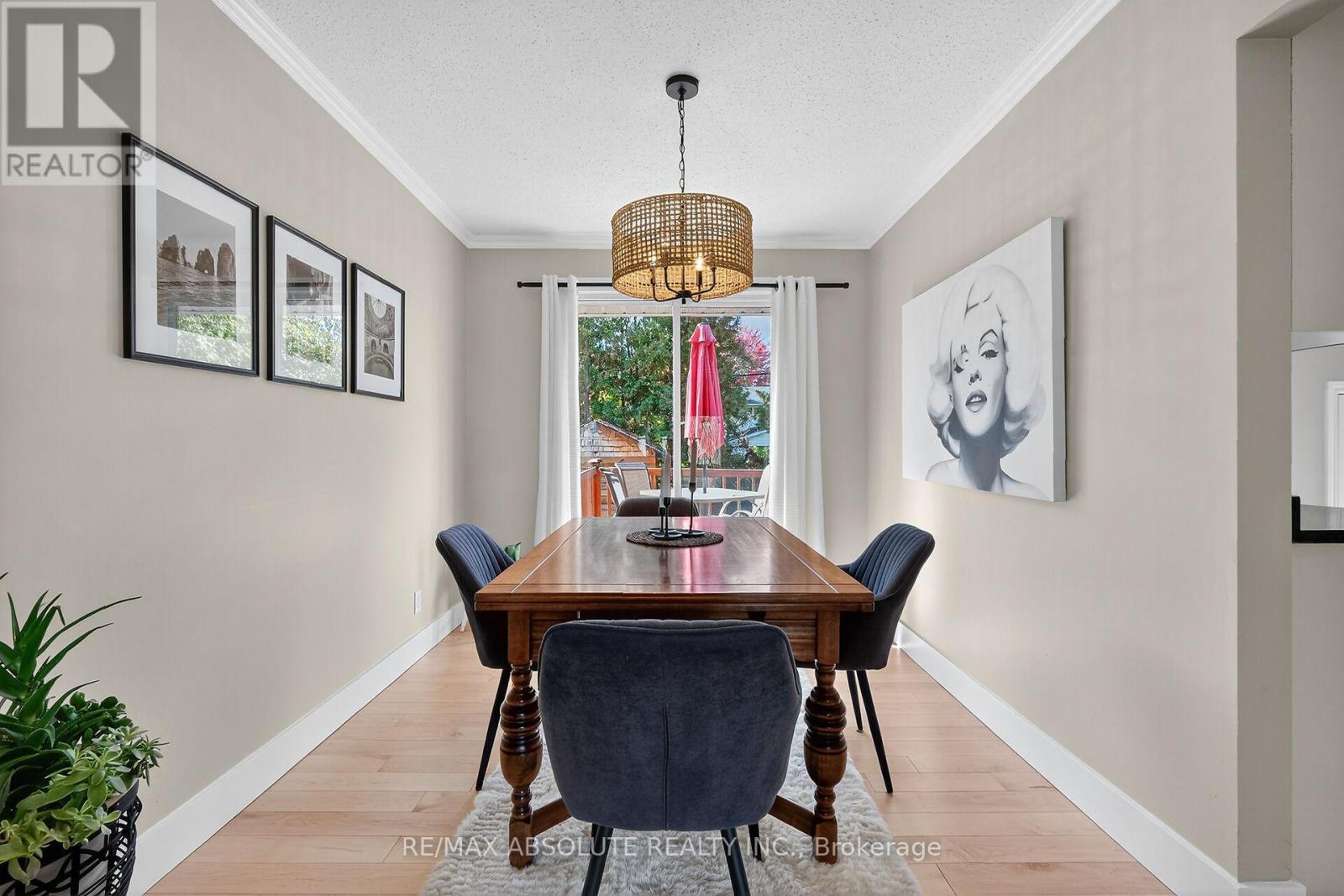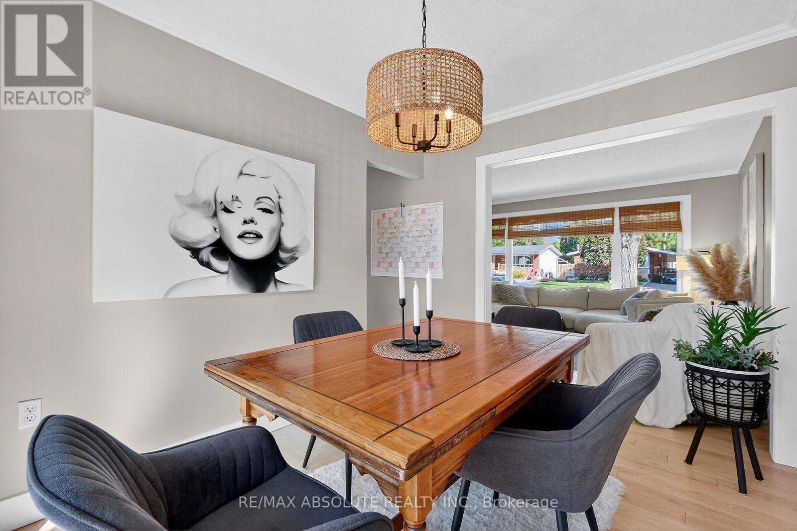 Charming 2+1 Bedroom Bungalow in Hawthorne Meadows! Welcome to 2186 Tawney Road a well-maintained bungalow offering a functional layout and inviting spaces throughout. Step into a spacious foyer with a custom Pax closet system, leading into a bright living room with a large front window and gleaming maple hardwood floors. The open-concept living and dining areas are ideal for entertaining, with the dining room featuring patio door access to the backyard. The kitchen is just off the dining area and boasts ample cabinetry, generous counter space, a double sink under the window, fridge, stove, dishwasher, hood fan, and microwave shelf, everything you need in a practical, well-laid-out space. The main floor features two well-sized bedrooms. The primary bedroom includes a large walk-in closet and a bright window. The second bedroom also offers great natural light and overlooks the front yard. A full bathroom with ceramic tub/shower surround, toilet, vanity, and medicine cabinet completes the main level. A side door off the kitchen provides access to the backyard and leads to the fully finished lower level. Downstairs you'll find a spacious rec room with laminate flooring, a third bedroom with cheater access to a 3-piece bathroom, a separate laundry room with utility sink, hobby room, and additional storage space. Ideal for first-time buyers, downsizers, or investors this home combines comfort and convenience in a family-friendly neighbourhood close to parks, schools, shopping, and transit. Roof 2014; Furnace 2023; A/C 2019; Hardwood Floors 2024; Bath in floor heating 2024; main level doors/trim 2024; windows 2009; eavestrough 2020; electrical panel 2025 (id:49712)