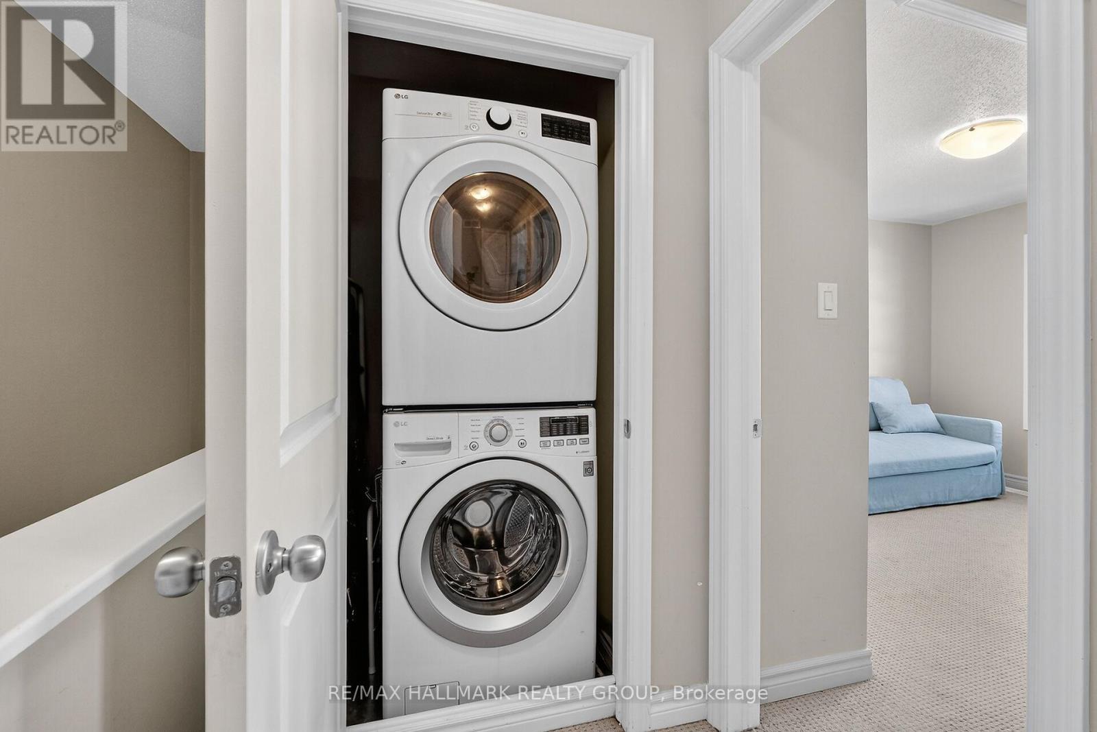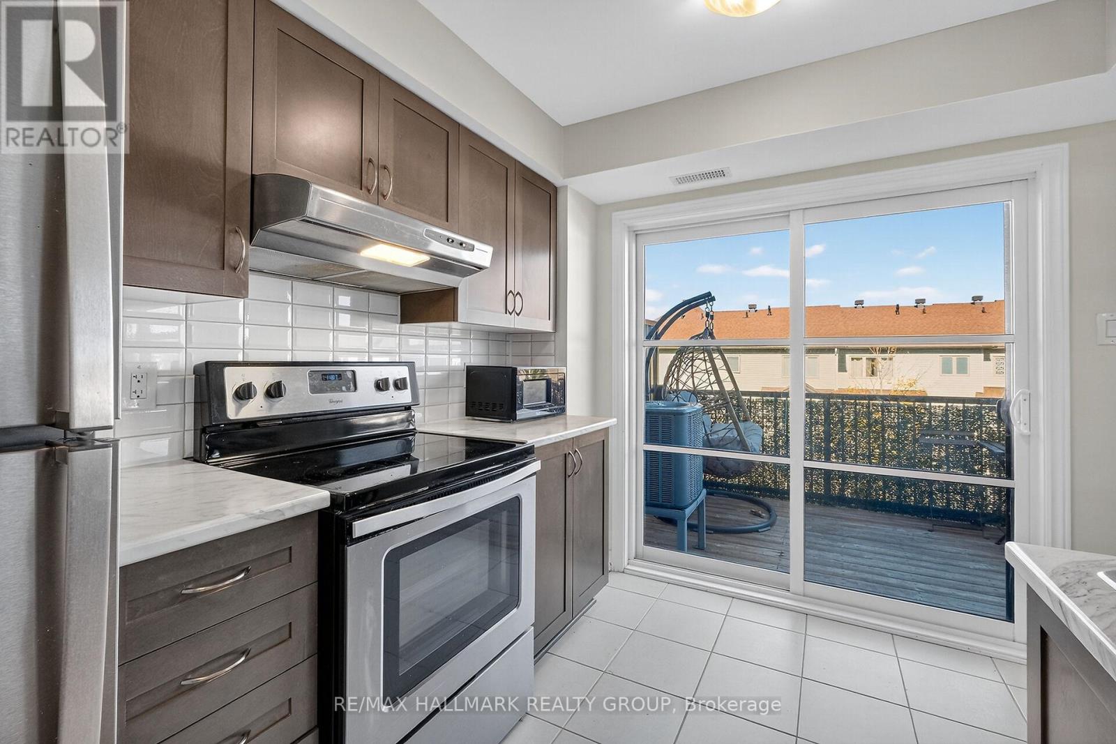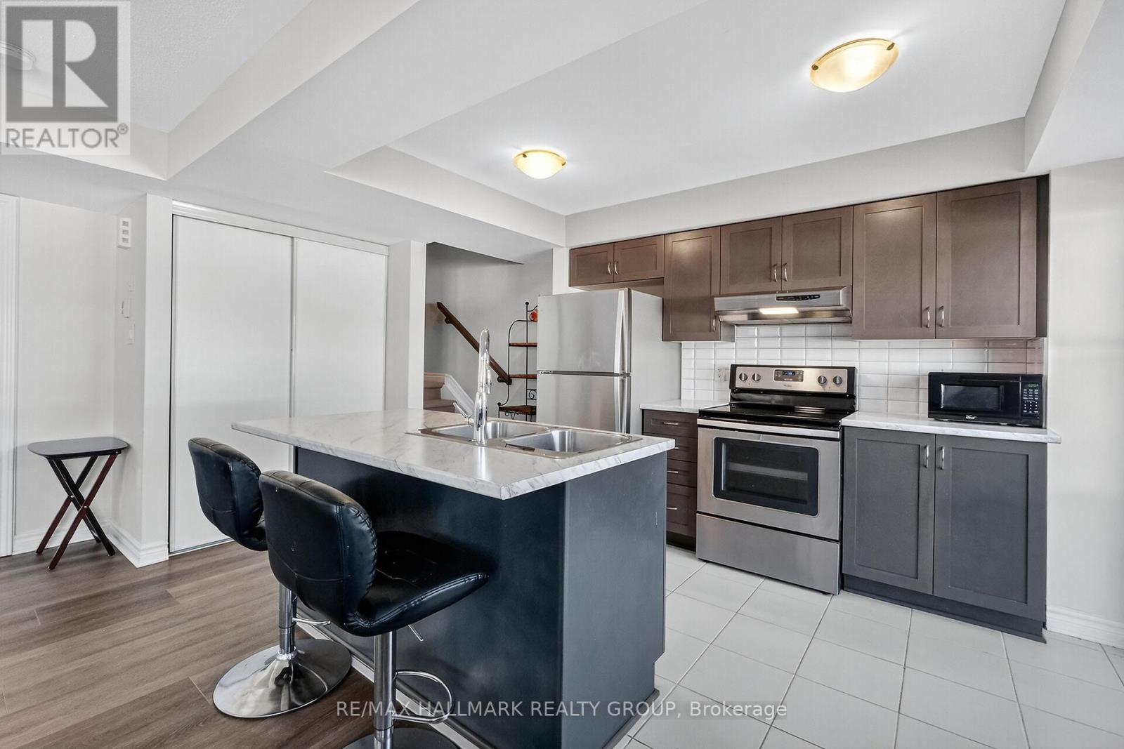 Welcome to this CONVENIENT & AFFORDABLE UPPER UNIT condo offering 2 bedrooms and 1.5 bathrooms. This modern & stylish home is in a FANTASTIC LOCATION - nestled in the heart of Barrhaven's vibrant Chapman Mills community. OPEN CONCEPT main level floorplan. The living room is filled with natural light from the large sunlit windows, creating a warm & inviting atmosphere throughout the day. The bright kitchen boasts stainless steel appliances, a tiled backsplash, plenty of cupboards & counter space & an ISLAND WITH SEATING for 2 or 3. Step out to the SPACIOUS BALCONY (11'0" x 8'5") directly from the kitchen/living room area to enjoy your morning coffee or to relax in the evening. A two-piece bath completes the main level. Ascending to the upper level, you'll find 2 GENEROUSLY SIZED BEDROOMS, each with wall to wall closets, a 4 piece bath, linen storage, & convenient IN-SUITE LAUNDRY next to the bedrooms. This home is situated in a FAMILY FRIENDLY location, just steps from the bus rapid transit station and the Chapman Mills Market Place w/Walmart, shops, cinema, restaurants, medical & dental clinics and much more. You'll also be within walking distance of trails, four parks (including a water park), and several schools. With PARKING AT YOUR FRONT DOOR, LOW CONDO FEES & MINIMAL MAINTENANCE, this home provides the perfect blend of comfort, convenience, and modern living. Don't miss your chance to enjoy an easy lifestyle-book your showing today! (id:49712)