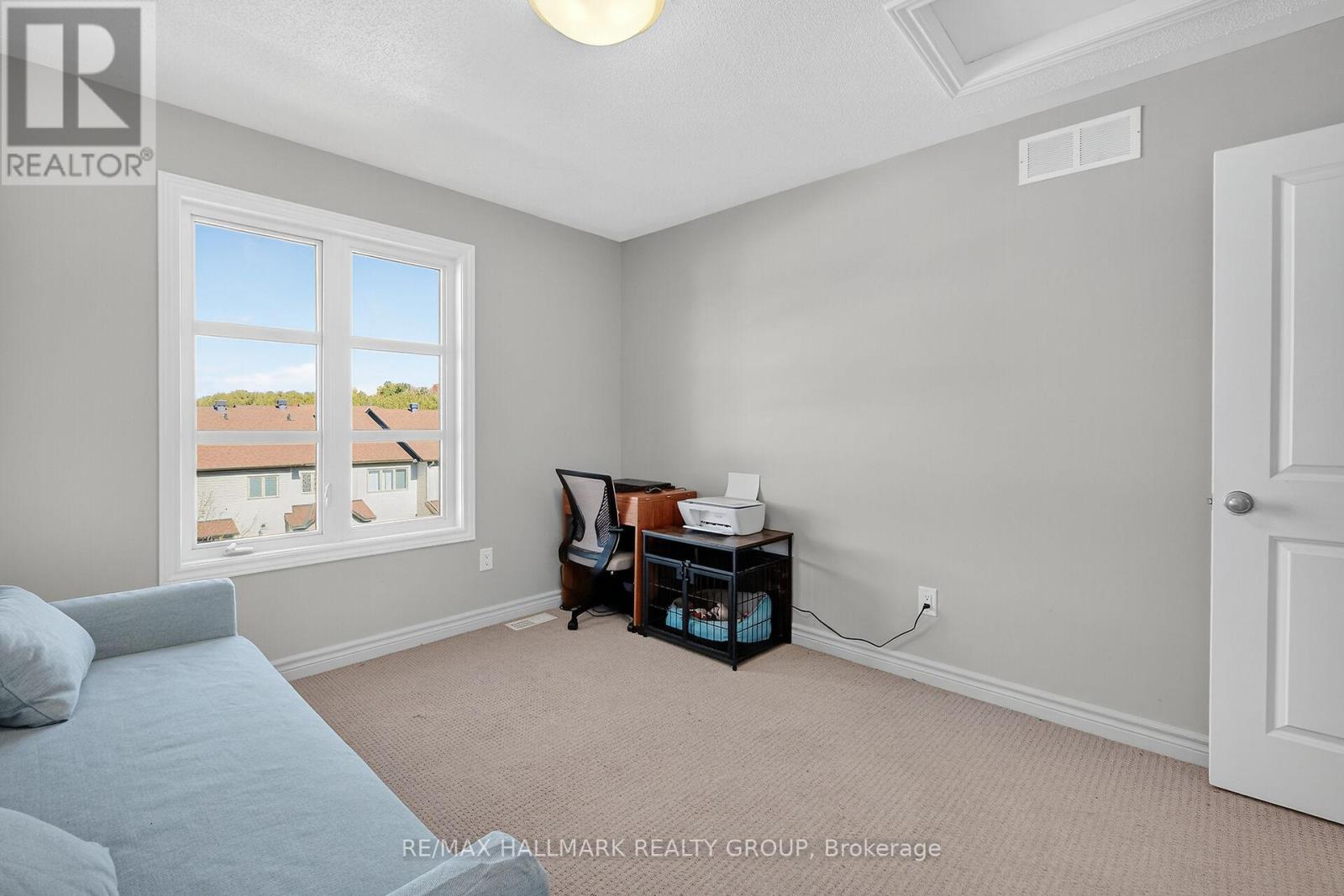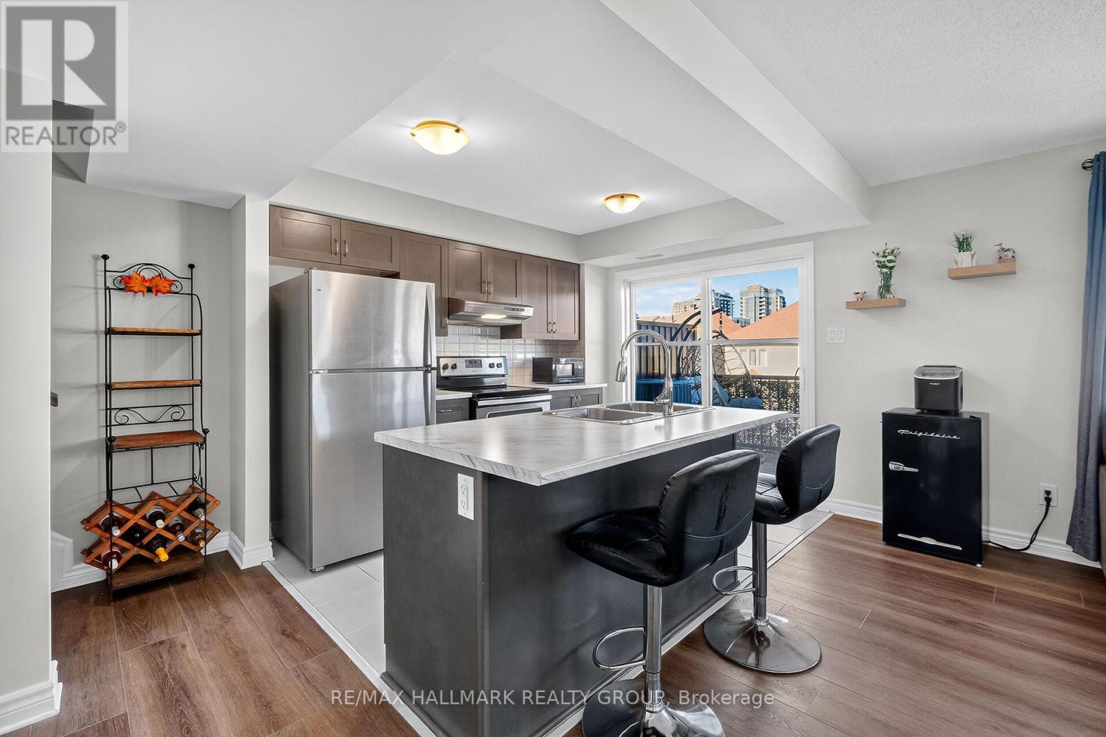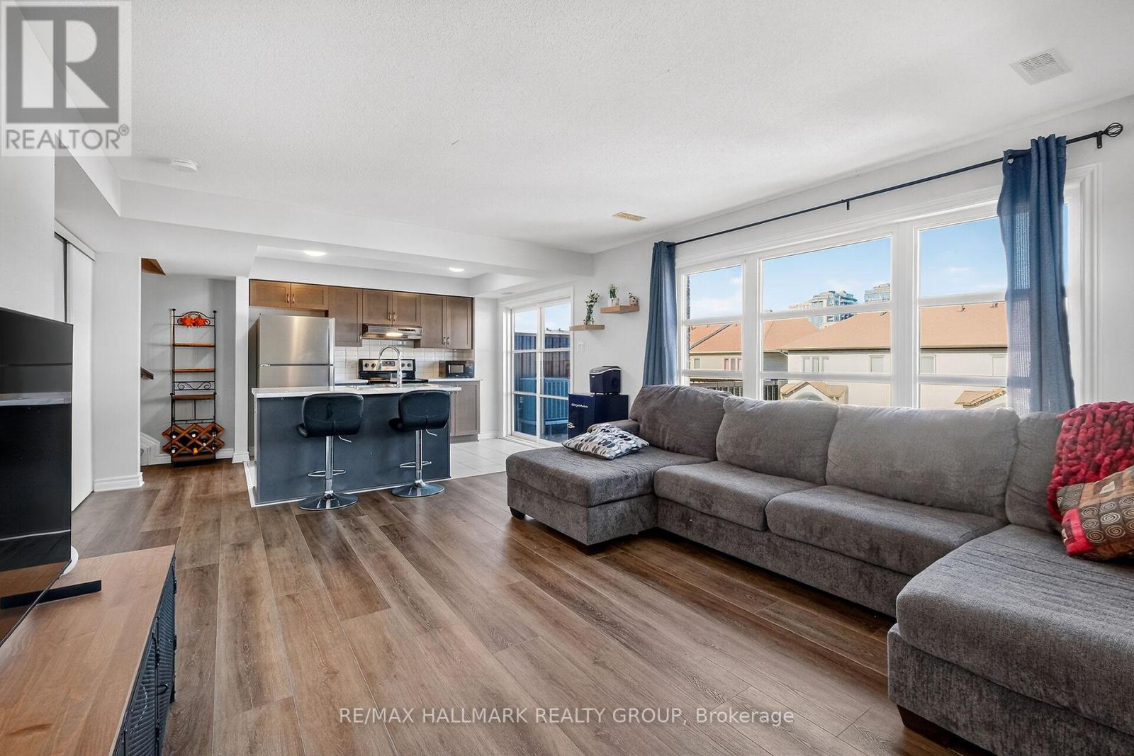 Welcome to this CONVENIENT & AFFORDABLE UPPER UNIT condo offering 2 bedrooms and 1.5 bathrooms. This modern & stylish home is in a FANTASTIC LOCATION - nestled in the heart of Barrhaven's vibrant Chapman Mills community. OPEN CONCEPT main level floorplan. The living room is filled with natural light from the large sunlit windows, creating a warm & inviting atmosphere throughout the day. The bright kitchen boasts stainless steel appliances, a tiled backsplash, plenty of cupboards & counter space & an ISLAND WITH SEATING for 2 or 3. Step out to the SPACIOUS BALCONY (11'0" x 8'5") directly from the kitchen/living room area to enjoy your morning coffee or to relax in the evening. A two-piece bath completes the main level. Ascending to the upper level, you'll find 2 GENEROUSLY SIZED BEDROOMS, each with wall to wall closets, a 4 piece bath, linen storage, & convenient IN-SUITE LAUNDRY next to the bedrooms. This home is situated in a FAMILY FRIENDLY location, just steps from the bus rapid transit station and the Chapman Mills Market Place w/Walmart, shops, cinema, restaurants, medical & dental clinics and much more. You'll also be within walking distance of trails, four parks (including a water park), and several schools. With PARKING AT YOUR FRONT DOOR, LOW CONDO FEES & MINIMAL MAINTENANCE, this home provides the perfect blend of comfort, convenience, and modern living. Don't miss your chance to enjoy an easy lifestyle-book your showing today! (id:49712)