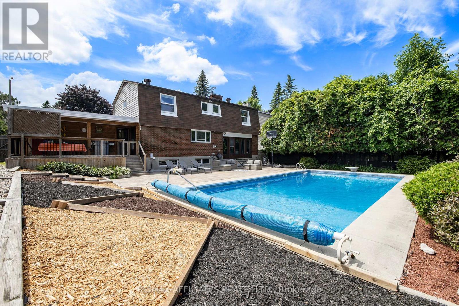 A MUST SEE! Beautiful 4 bedroom home located on a tree-lined crescent in a quiet, family friendly neighbourhood! Pride of ownership prevails in this stunning home. The home features tons of natural light and an excellent living space with hardwood floors on the main and top floor. Spacious kitchen with lots of counter and cabinet room, and a full sized pantry. All bedrooms are generously sized. Master bedroom has a walk-in closet & full ensuite bathroom with a stand-up shower. Large fully finished basement with rec room, and playroom. Back facing the Okanogan park with a large deck & end-to-end interlocked patio, great for hosting family BBQs! Enjoy summer to the fullest with your very own in-ground pool perfect for relaxing and entertaining. Whether you're hosting weekend BBQs or enjoying a quiet evening swim, this backyard pool offers the perfect escape from everyday life. Within walking distance of bike paths, trails, schools, transit, the Queensway Carleton Hospital. Don't miss out on this opportunity and book your showing today! (id:49712)