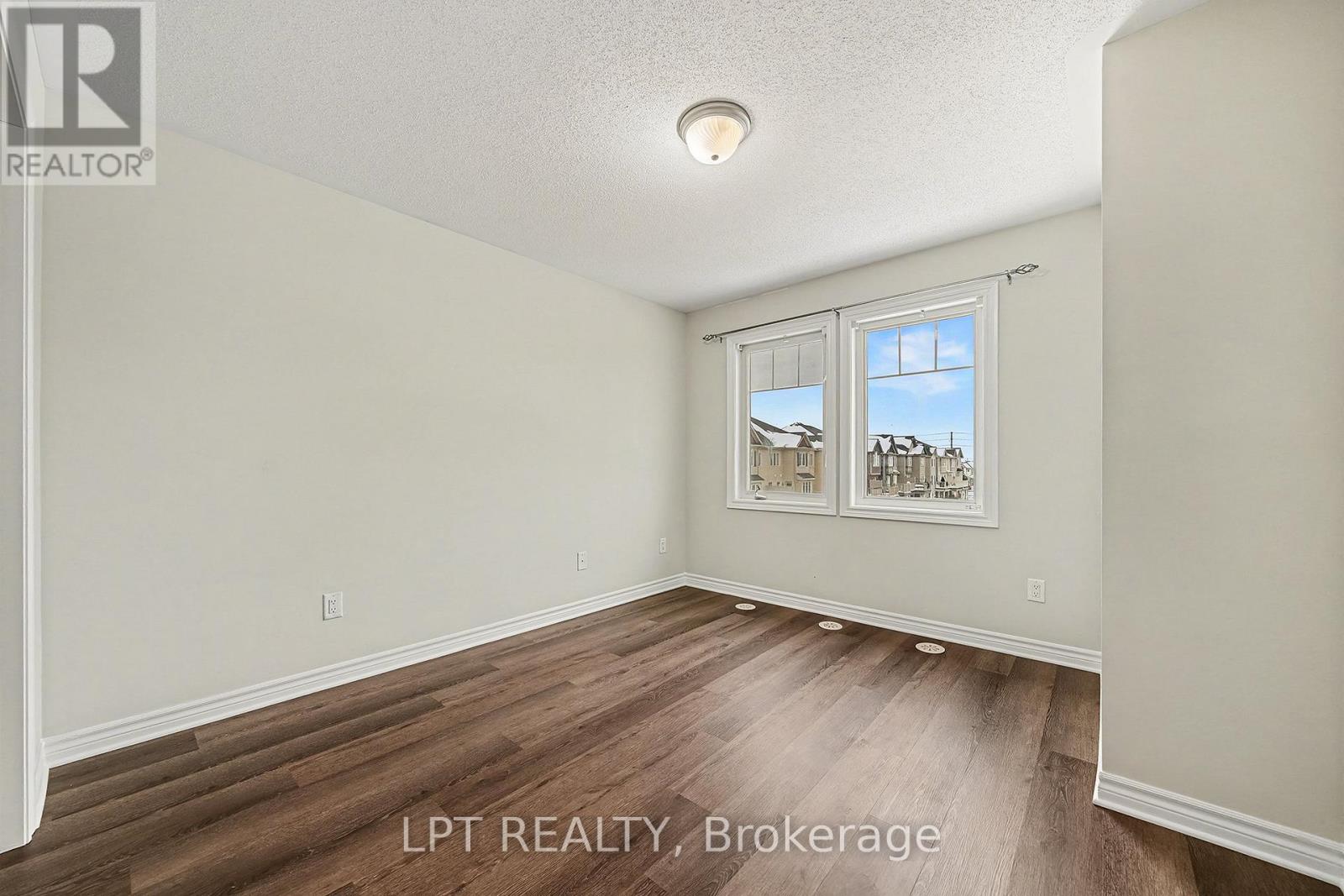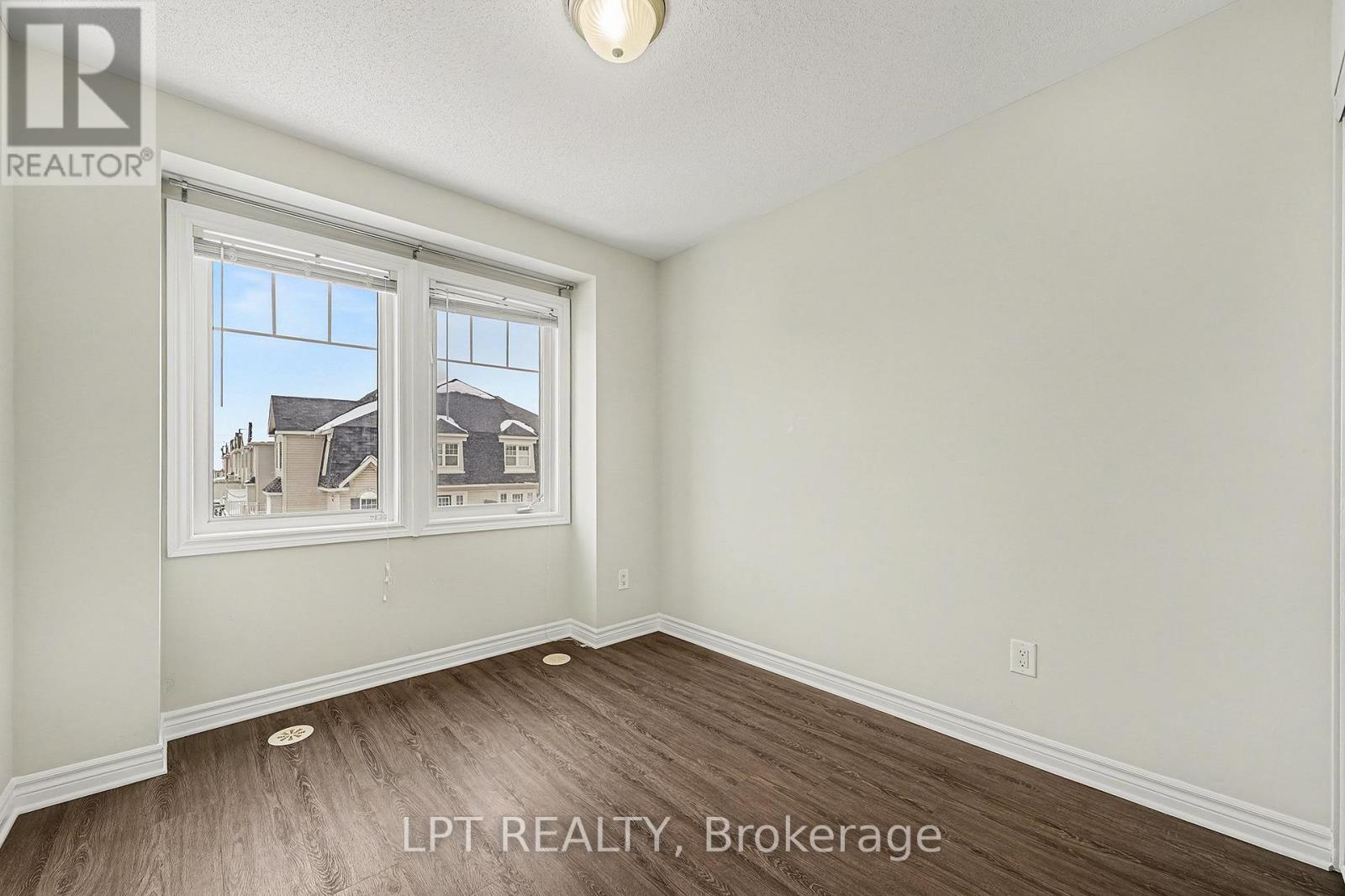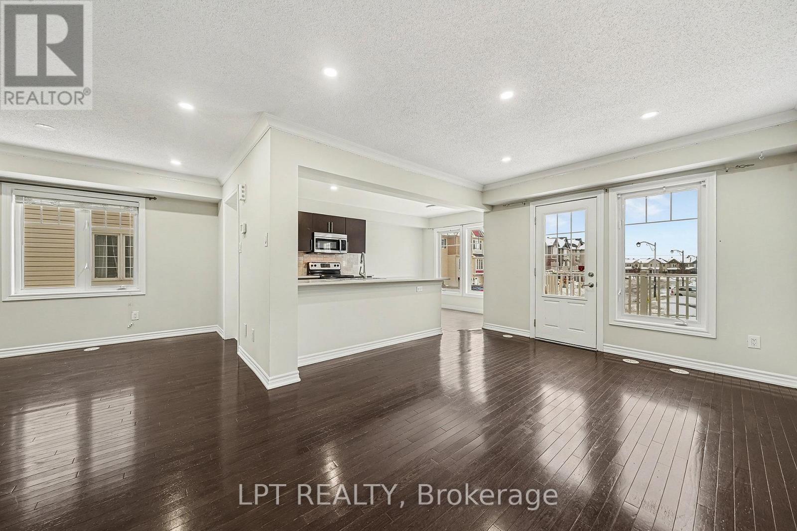 Welcome home to this beautifully upgraded Thornbury end-unit townhome in Ottawa's Half Moon Bay. Tasteful updates shine throughout, from the stylish kitchen with richly stained cabinetry and stainless steel appliances to gorgeous hardwood floors on the main level. The main floor delivers convenience with a powder room, closet storage, and a bright, spacious laundry room. Head upstairs to an open-concept kitchen and living area that flows onto a lovely deck, ideal for summer gatherings, while Berber-style carpeting graces the stairs and three generous upper-level bedrooms. Upstairs you'll find a handsomely designed 4-piece bathroom completes the third level, offering style and functionality for families. Flooring mixes hardwood, carpet, and more for enduring appeal. Perfectly positioned just steps from parks, schools, trails, Minto Recreation Centre, and bus lines, this gem combines suburban charm with easy access to Barrhaven amenities. (id:49712)