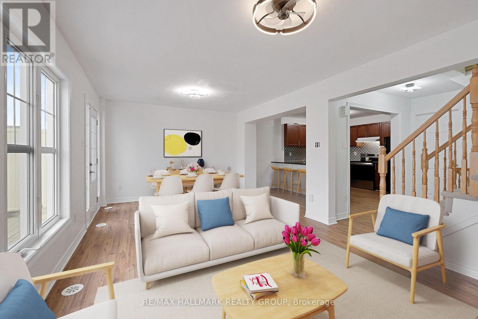 Welcome to 2325 Blue Aster, beautifully updated 2 bedroom townhome in sought after Half Moon Bay! This bright and spacious move in ready FREEHOLD townhome blends with comfort and convenience. The main floor has convenient access to the attached garage and closet. On the 2nd floor you step inside to a sun filled living/dining room adjacent to a large kitchen with granite counter and abundance of cabinetry. The living/dining has direct access to the spacious deck ideal for entertaining or enjoying some fresh air. The third floor has 2 spacious bedrooms with oversized closets that share access to a full bath. Great location close to Schools, Parks, Minto Rec Centre and Shopping. NEW FLOORING, NEW BERBER CARPETS, NEW STOVE, NEW FRIDGE, WASHER AND DRYER (2024), FRESHLY PAINTED WALLS, ALL NEW LIGHT FIXTURES AND FANS, DUCTS CLEANED JULY 24, 2025, FURNACE (2019). Don't miss your chance to lease this move in ready beautiful home. Virtual staging in living, dining and bedroom. (id:49712)