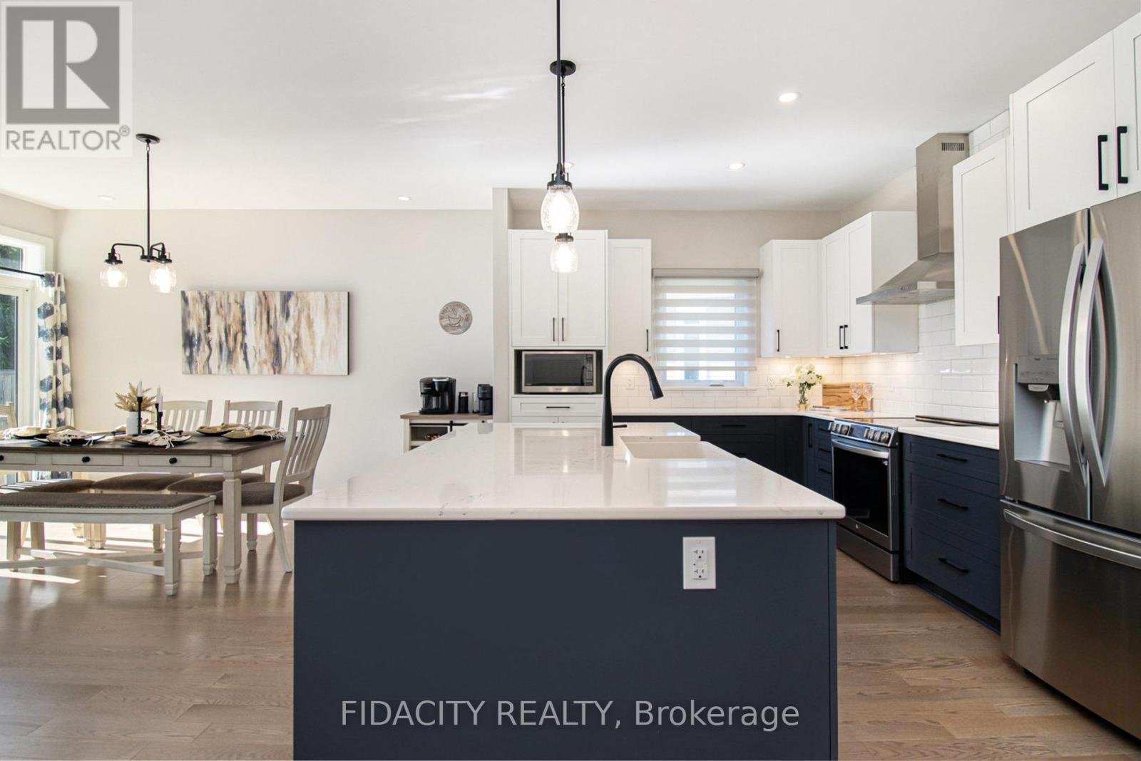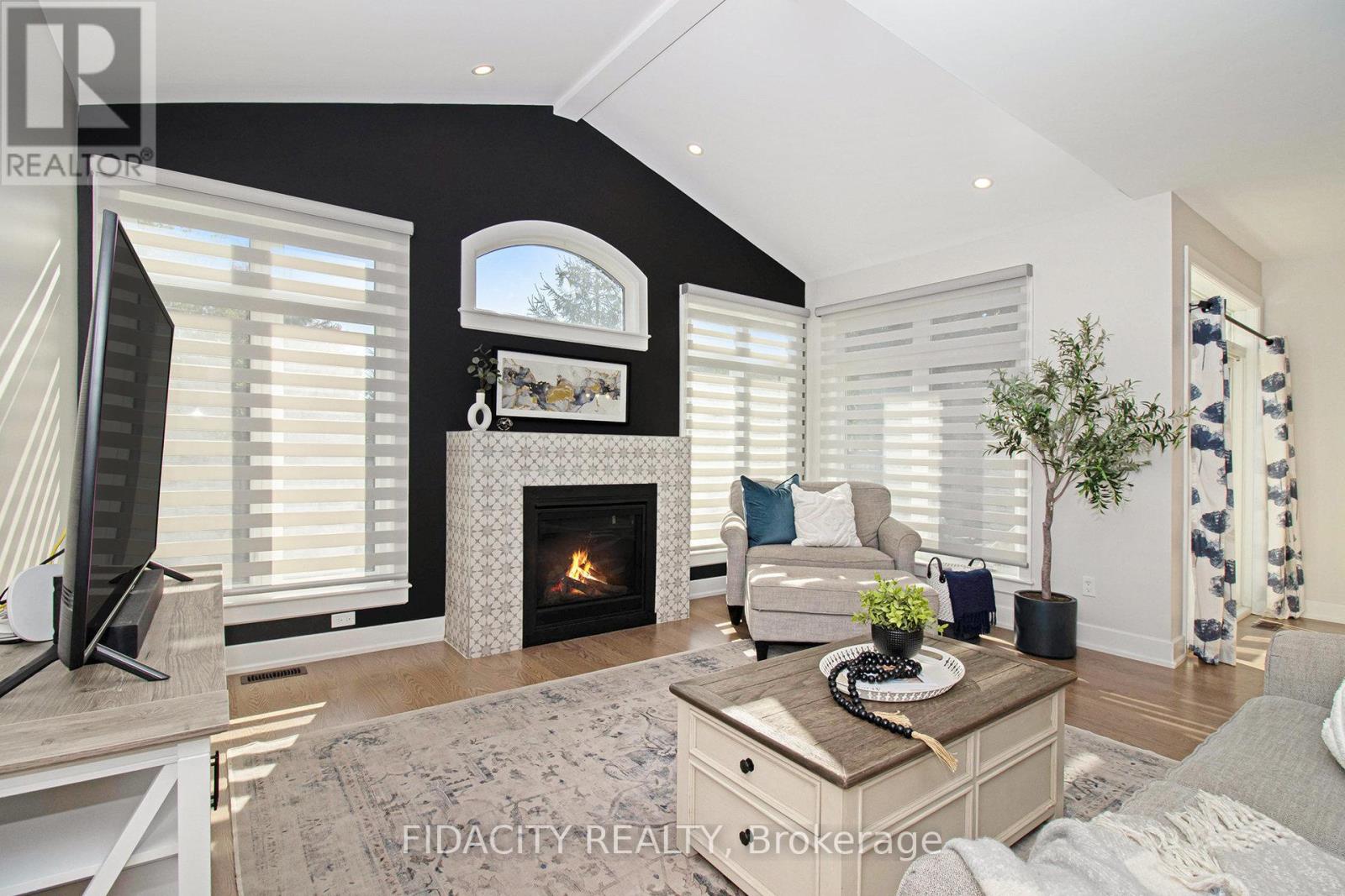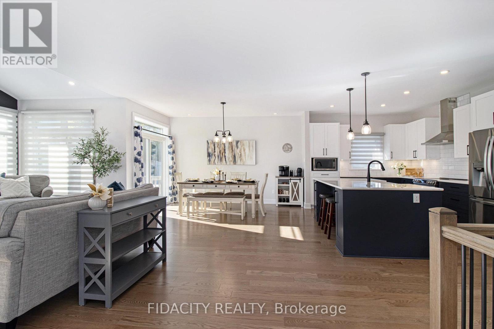 Welcome to 250 Maygrass a beautifully upgraded bungalow tucked onto a quiet, adult-oriented street with an exceptionally large corner lot. Step inside to a bright, open-concept main floor where modern finishes meet timeless comfort. The stylish kitchen boasts two-tone cabinetry, quartz countertops, a large island with breakfast bar seating, ample storage, and a classic white farmhouse ceramic sink. The kitchen flows seamlessly to the dining and living areas, where a vaulted ceiling and gas fireplace create a stunning focal point. Custom blinds throughout add a polished touch, and the main floor also includes a convenient laundry area. The spacious primary suite is a true retreat with a walk-in closet and a spa-like ensuite featuring quartz counters, a soaker tub, and glass shower. A generous second bedroom (currently used as an office) and a powder room with quartz countertops complete the main level. The fully finished lower level expands the living space with large windows that fill the rooms with natural light, a spacious rec room anchored by a second gas fireplace, an additional full bathroom with quartz counters, a bedroom, and an abundance of storage making it ideal for guests, extended family, or even a private suite. Outside, the oversized, fully fenced backyard benefits from the corner lot, with mature trees, partial no rear neighbours, and plenty of room to relax or entertain. The community also offers a shared clubhouse where neighbours gather for game nights and events, with the option to rent for private functions. All of this in a fantastic Stittsville location, just steps to the Trans Canada Trail, groceries, restaurants, and everyday amenities. Avalan Accent Lighting installed. (id:49712)