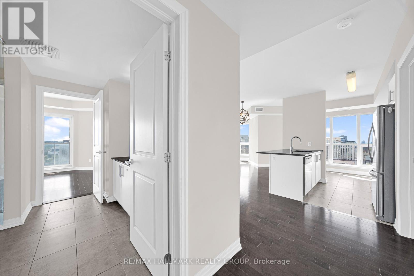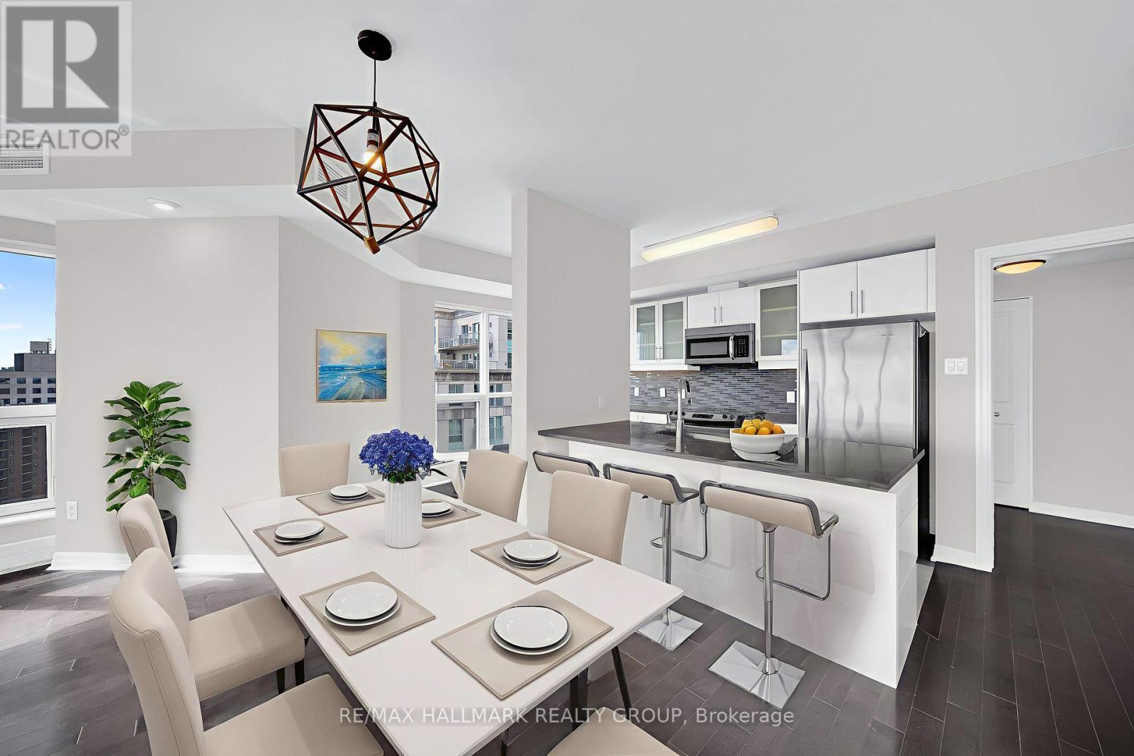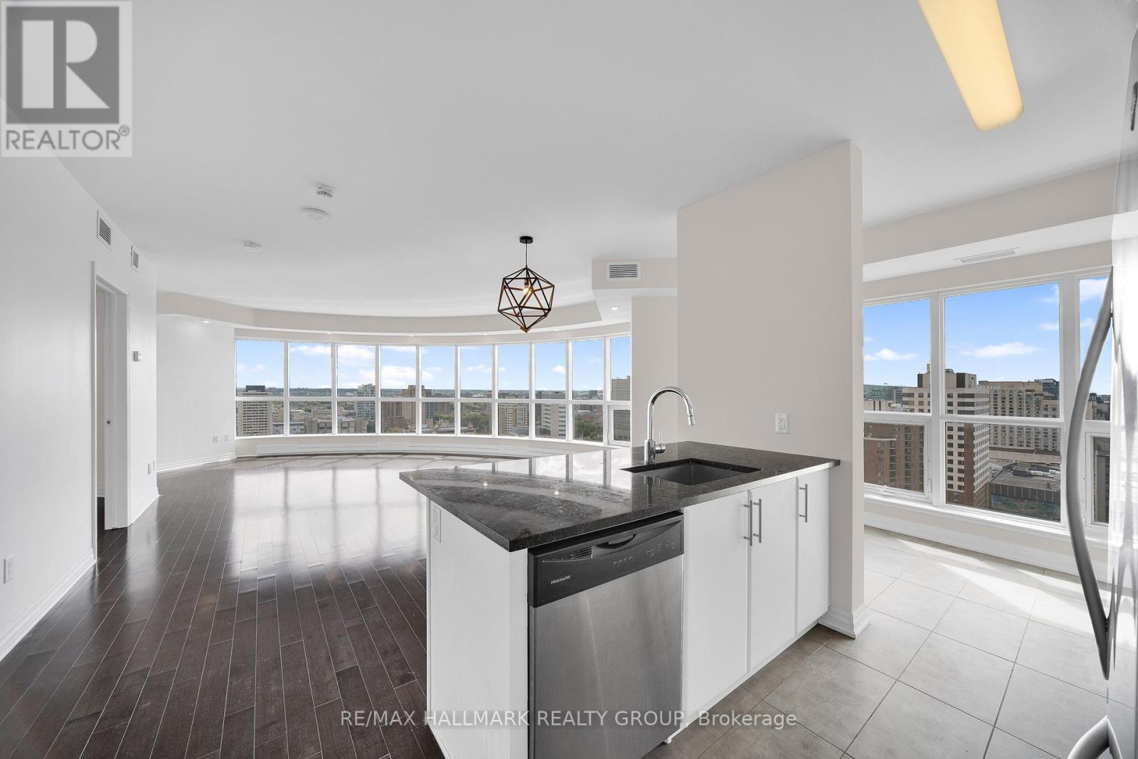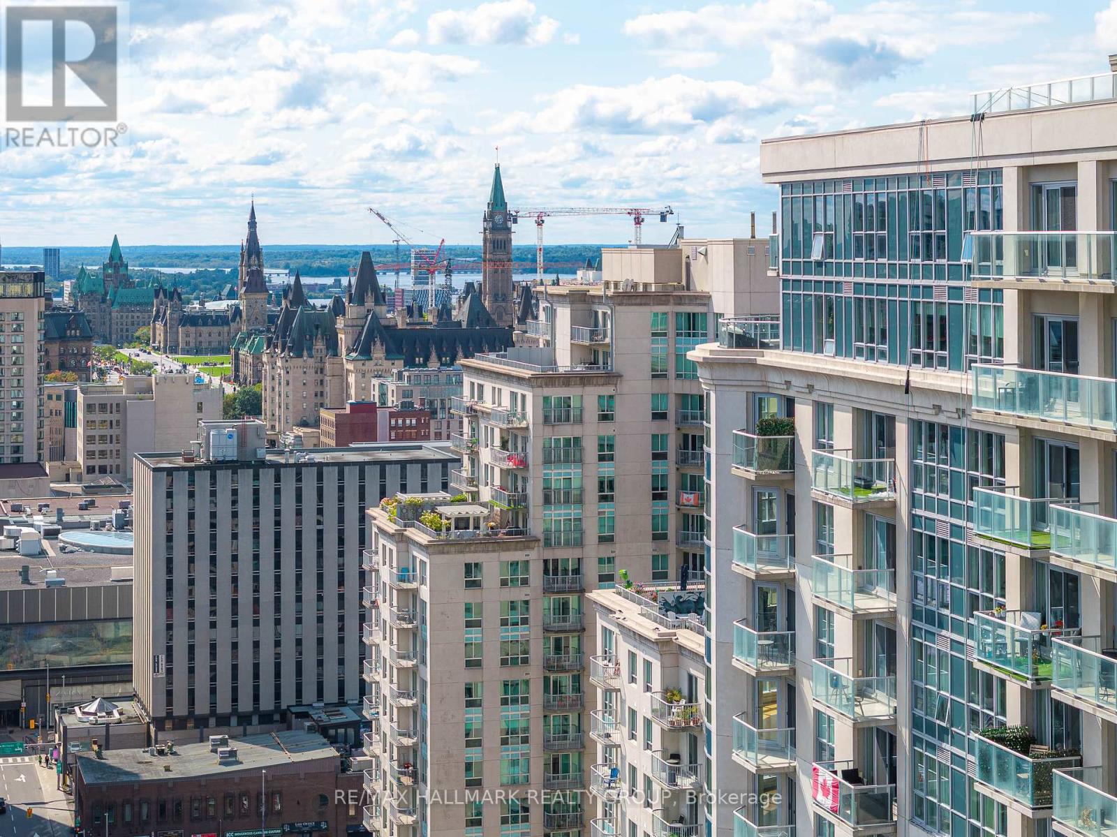 Luxury TWO bedrooms condo, South & West Exposure with non-obstruct panorama view in the heart of Downtown with sufficient sunlight! This 2 bedroom & 2 bathrooms plus den unit offers 1280sf, in this Luxury 28 storey tinted glass tower Prestigious Claridge Plaza(4). Private Balcony, Granite Counter tops & Appliances with In-Unit Laundry, Huge Floor-to-ceiling Curved window, two separate bedrooms all with its own bathroom, Spacious living space makes the difference. Breakfast beside kitchen with views of Parliament hill. One premium heated underground parking with large locker behind included, Heat and A/C are also included. Indoor salt water pool, sauna, fitness facilities, lounge, large landscaped terrace, party room grand lobby with 24-hour concierge & Security service! Walk to Parliament, Byward Market, University of Ottawa, Rideau Centre, NAC, Art Galleries, Fine Dinning, Canal & specialty shops, and good schools for kids! Pictures are from the previous listing. (id:49712)