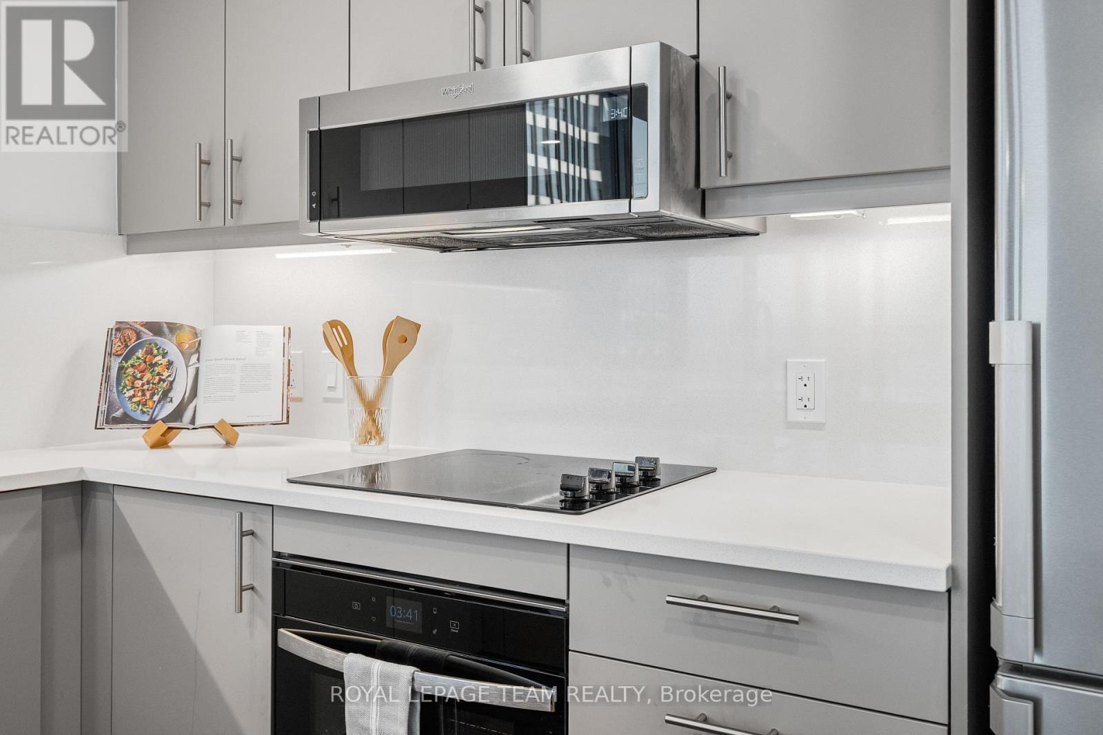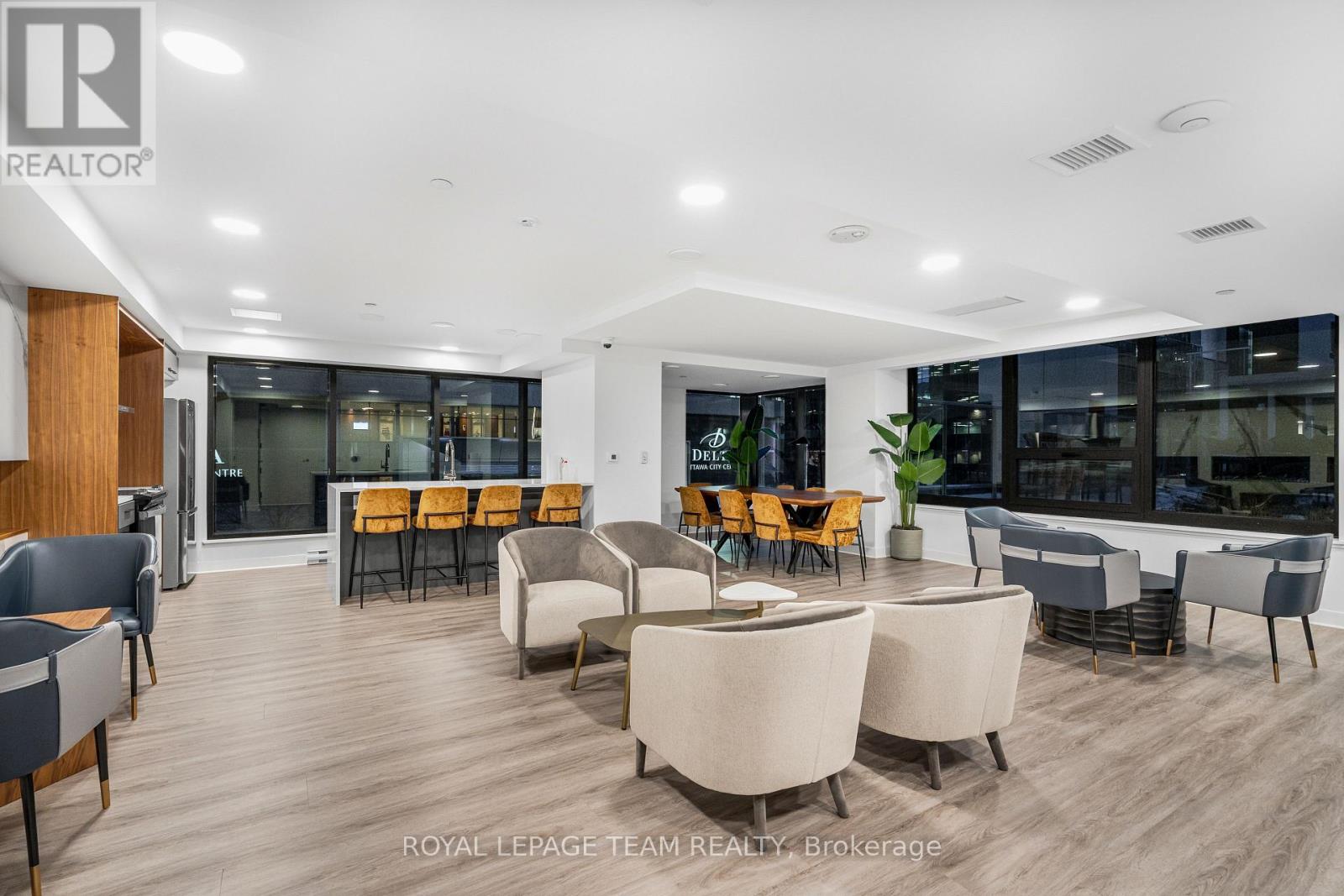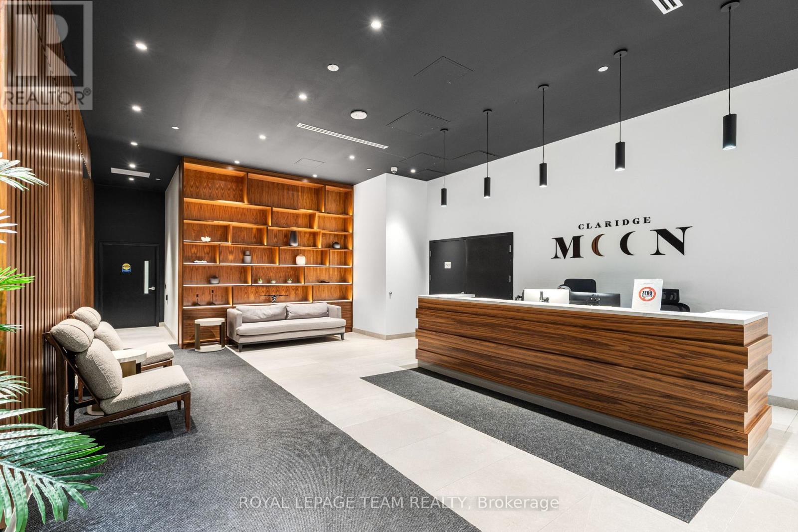 Bright and modern 1-bedroom + den, 1-bath condo at Claridge Moon offering 710 sq ft of stylish living in the heart of Ottawa. The kitchen features quartz countertops and stainless steel appliances. The bright living area connects to the dedicated dining space with access to a private balcony, perfect for morning coffee or evening relaxation. The den provides an ideal home office or study space, while the primary bedroom and full bathroom complete this functional unit. Additional conveniences include in-unit laundry and stunning panoramic views of the Gatineau Hills. Residents enjoy exceptional amenities including a gym, pool, terrace with seating and BBQ, theatre, business centre and guest suite. With a grocery store and rail station right in the building, everything you need is at your doorstep. Live at the centre of the Nation's Capital in comfort, style, and convenience. (id:49712)