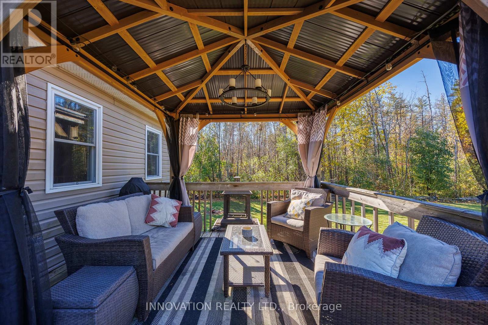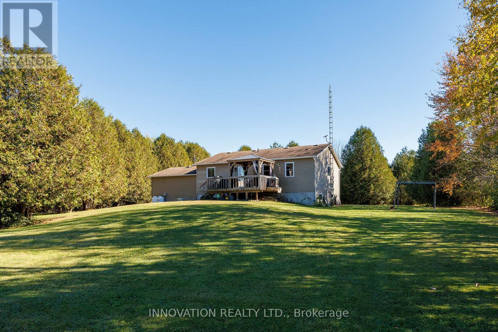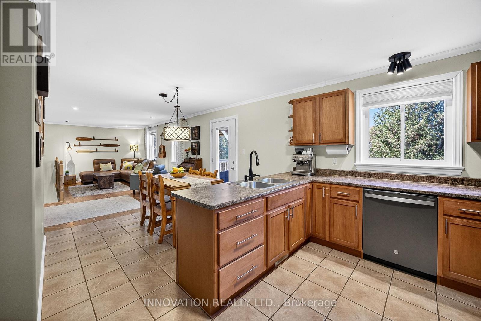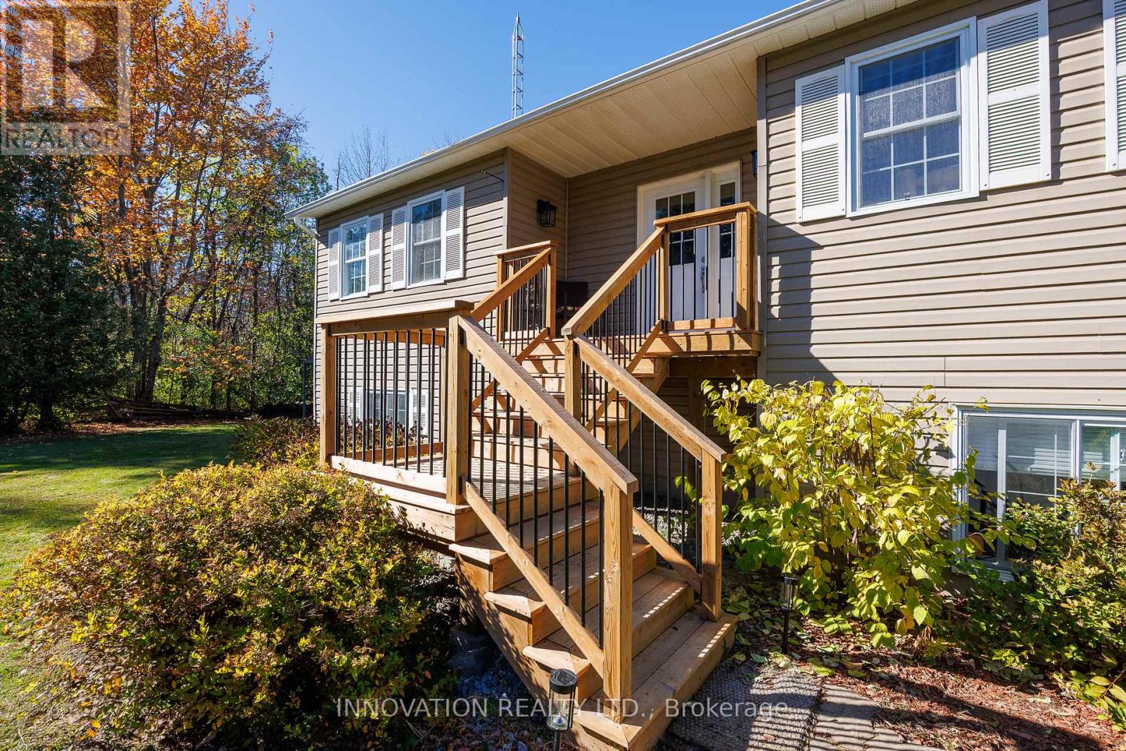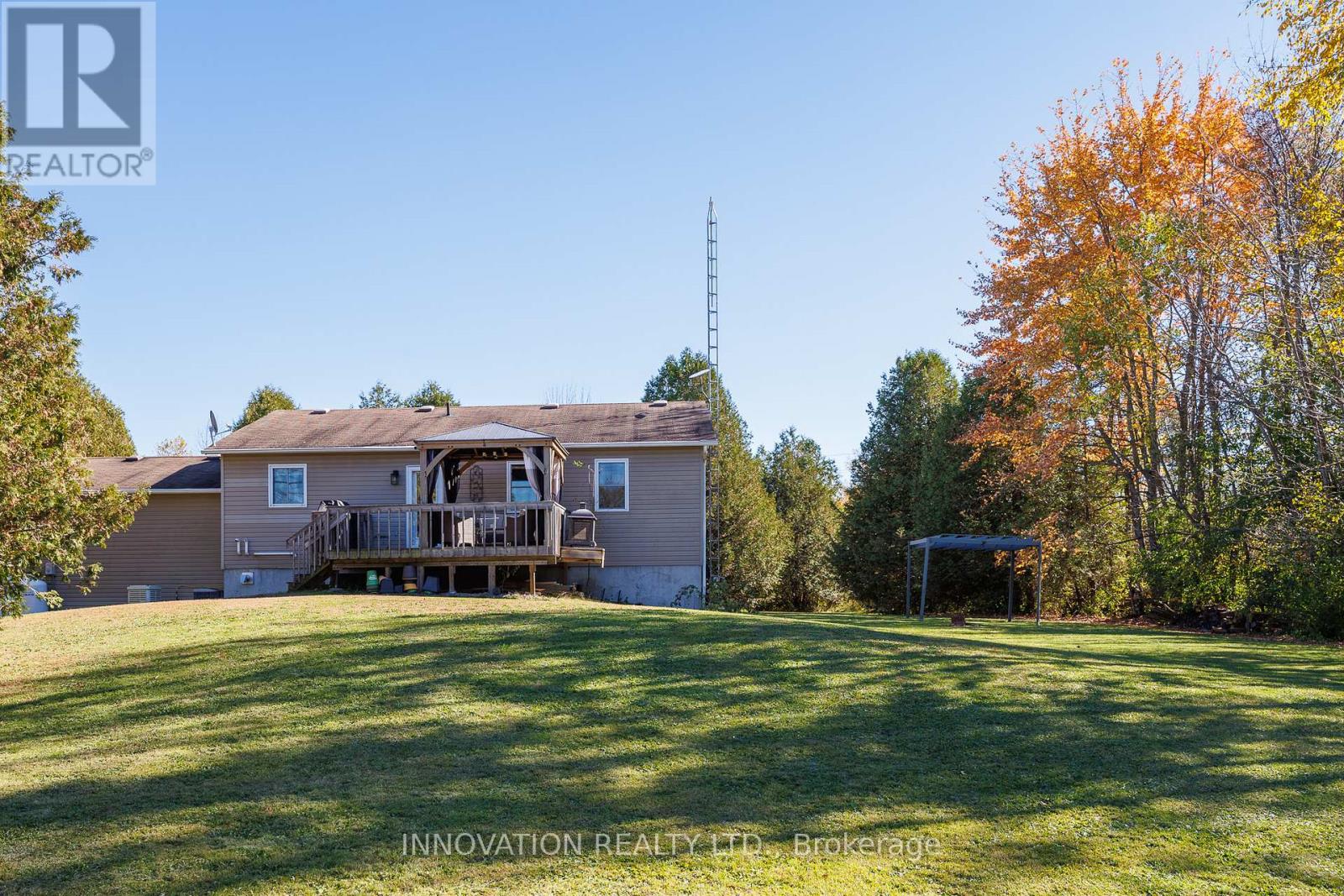 Beckwith beauty. Sometimes an opportunity comes along too good to pass up. This five-bedroom (3+2) raised bungalow, nestled on the 7th Line just 10 minutes outside Carleton Place, offers a private, pastoral setting on a beautifully treed one-acre lot. It's perfectly situated for a reasonable commute while still being far enough from town to see the stars at night.The home features an open-concept kitchen, dining, and living area, with convenient laundry located off the kitchen. The main floor includes a primary bedroom with a remodeled ensuite, plus two additional bedrooms, one of which could easily serve as a home office. The lower level provides a cozy retreat with a warm and inviting family room, perfect for relaxing or hosting a watch party, especially with the added comfort of a pellet stove. This level also includes two more bedrooms, a storage room, and an exercise/yoga room. Outside, you'll find treed privacy from the 7th Line, a spacious two-car garage, and a deck with a gazebo-ideal for enjoying your own piece of heaven. One final bonus is the deeded access to Mississippi Lake. This is a truly beautiful home. Time to make your move. (id:49712)