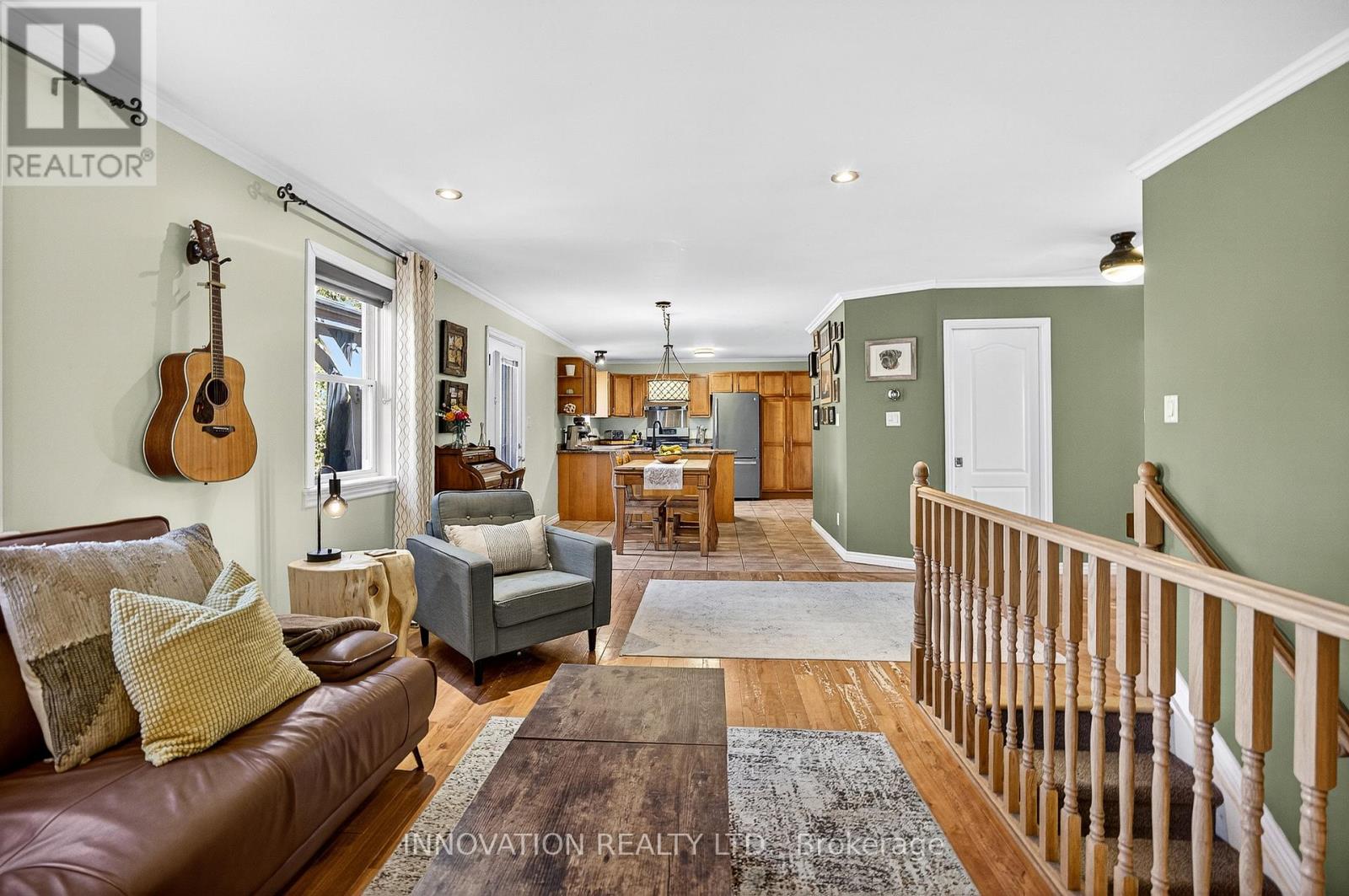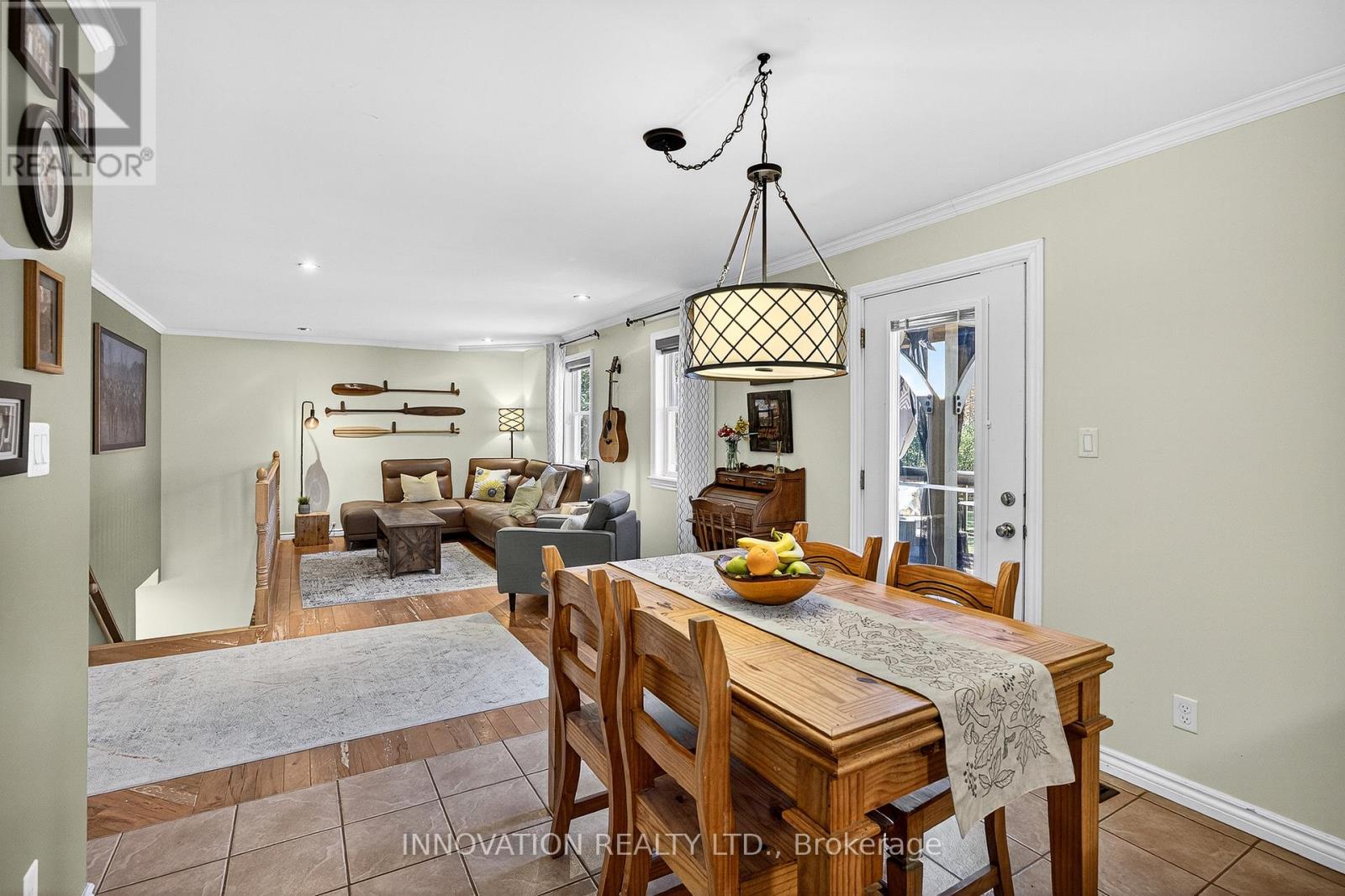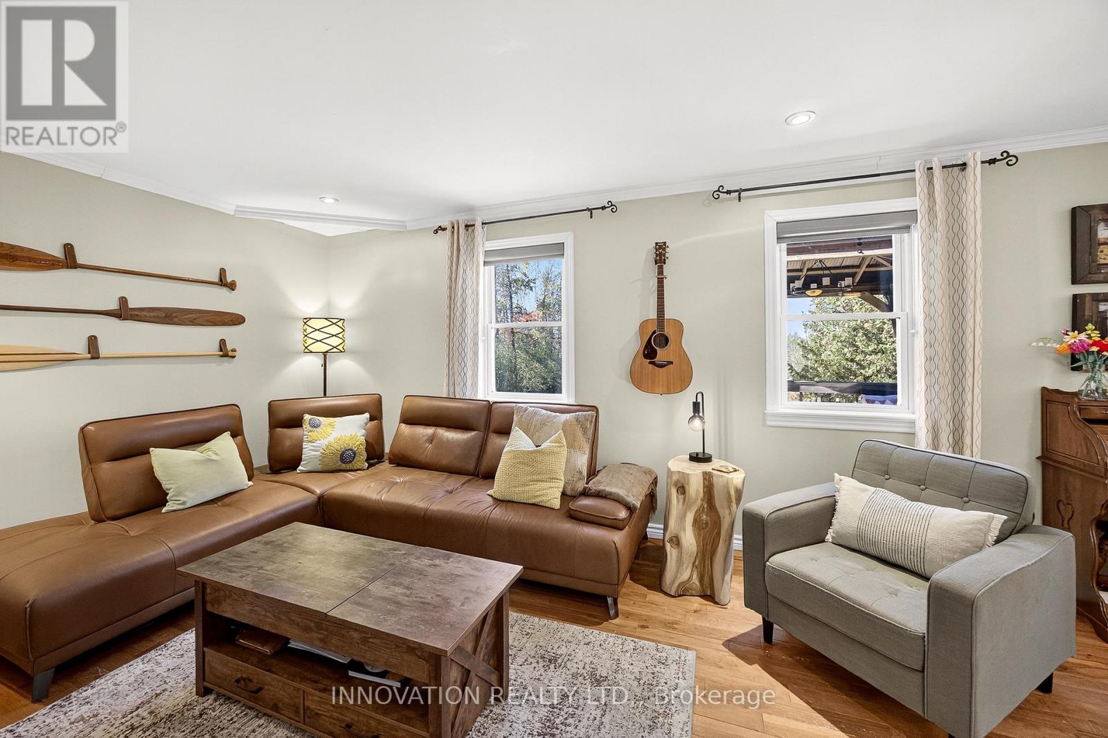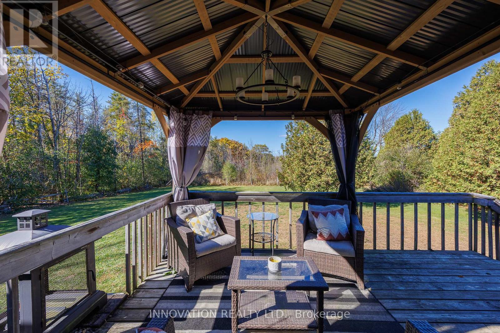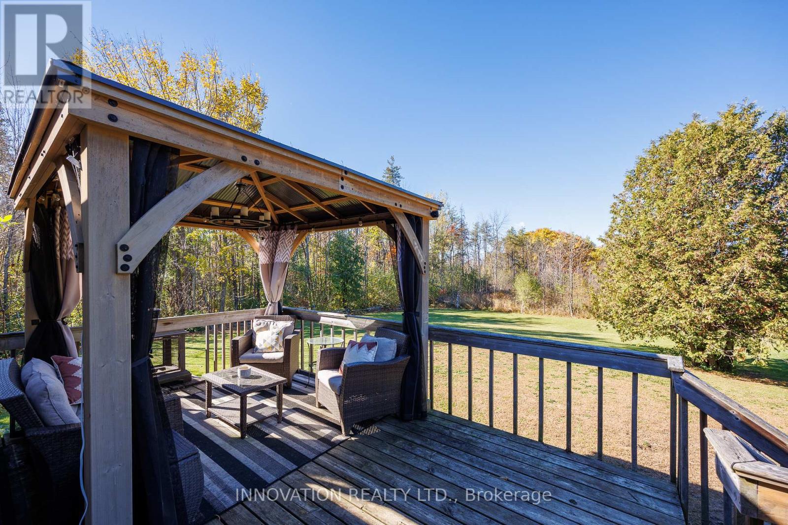 Beckwith beauty. Sometimes an opportunity comes along too good to pass up. This five-bedroom (3+2) raised bungalow, nestled on the 7th Line just 10 minutes outside Carleton Place, offers a private, pastoral setting on a beautifully treed one-acre lot. It's perfectly situated for a reasonable commute while still being far enough from town to see the stars at night.The home features an open-concept kitchen, dining, and living area, with convenient laundry located off the kitchen. The main floor includes a primary bedroom with a remodeled ensuite, plus two additional bedrooms, one of which could easily serve as a home office. The lower level provides a cozy retreat with a warm and inviting family room, perfect for relaxing or hosting a watch party, especially with the added comfort of a pellet stove. This level also includes two more bedrooms, a storage room, and an exercise/yoga room. Outside, you'll find treed privacy from the 7th Line, a spacious two-car garage, and a deck with a gazebo-ideal for enjoying your own piece of heaven. One final bonus is the deeded access to Mississippi Lake. This is a truly beautiful home. Time to make your move. (id:49712)