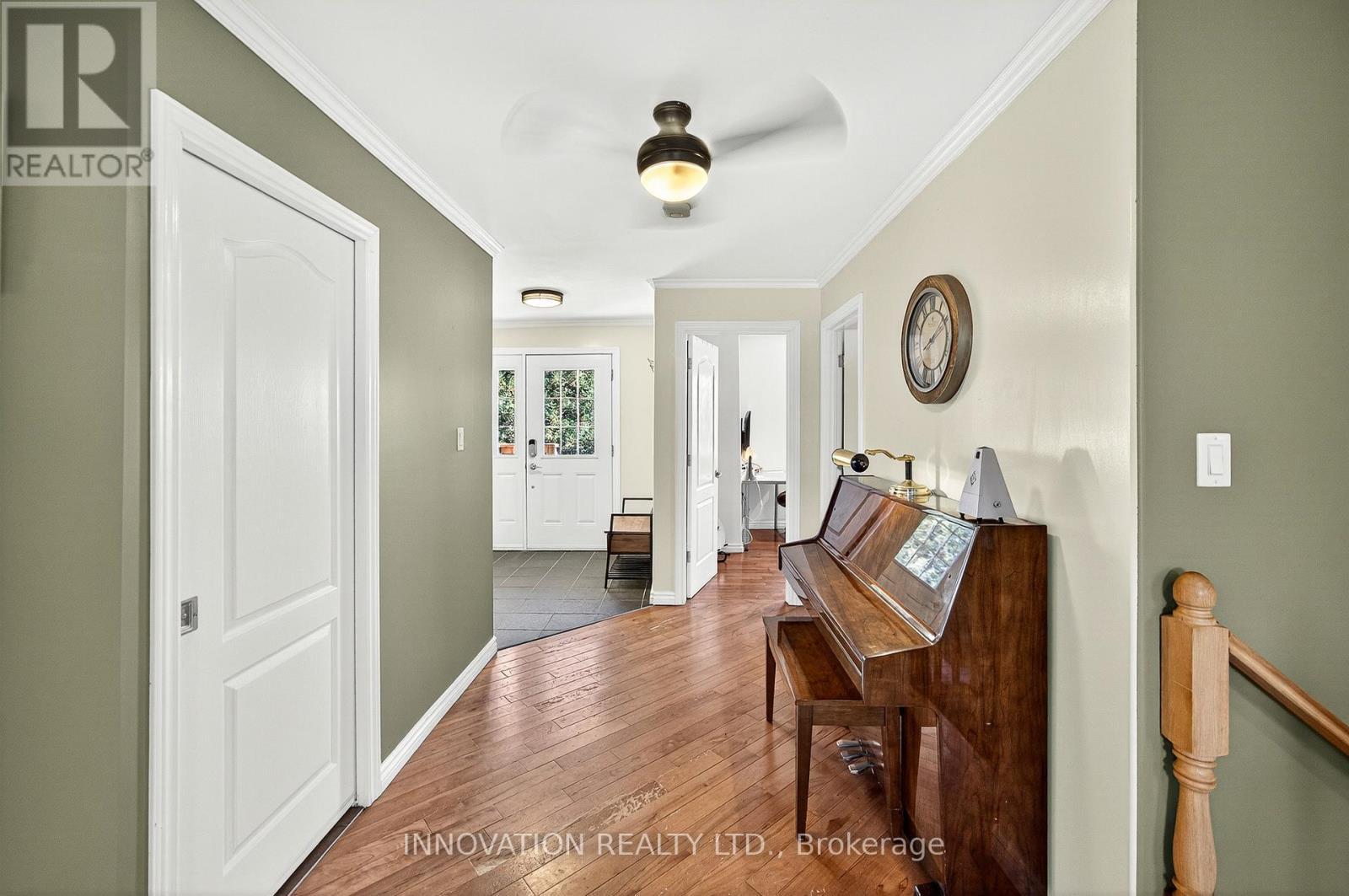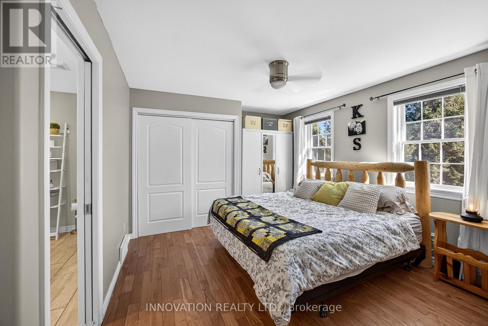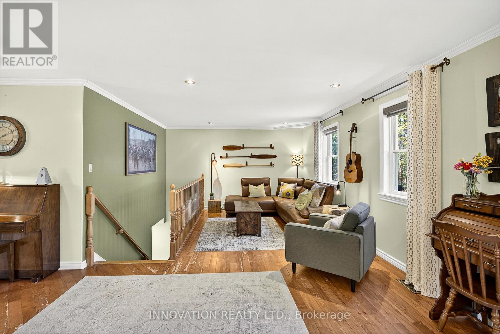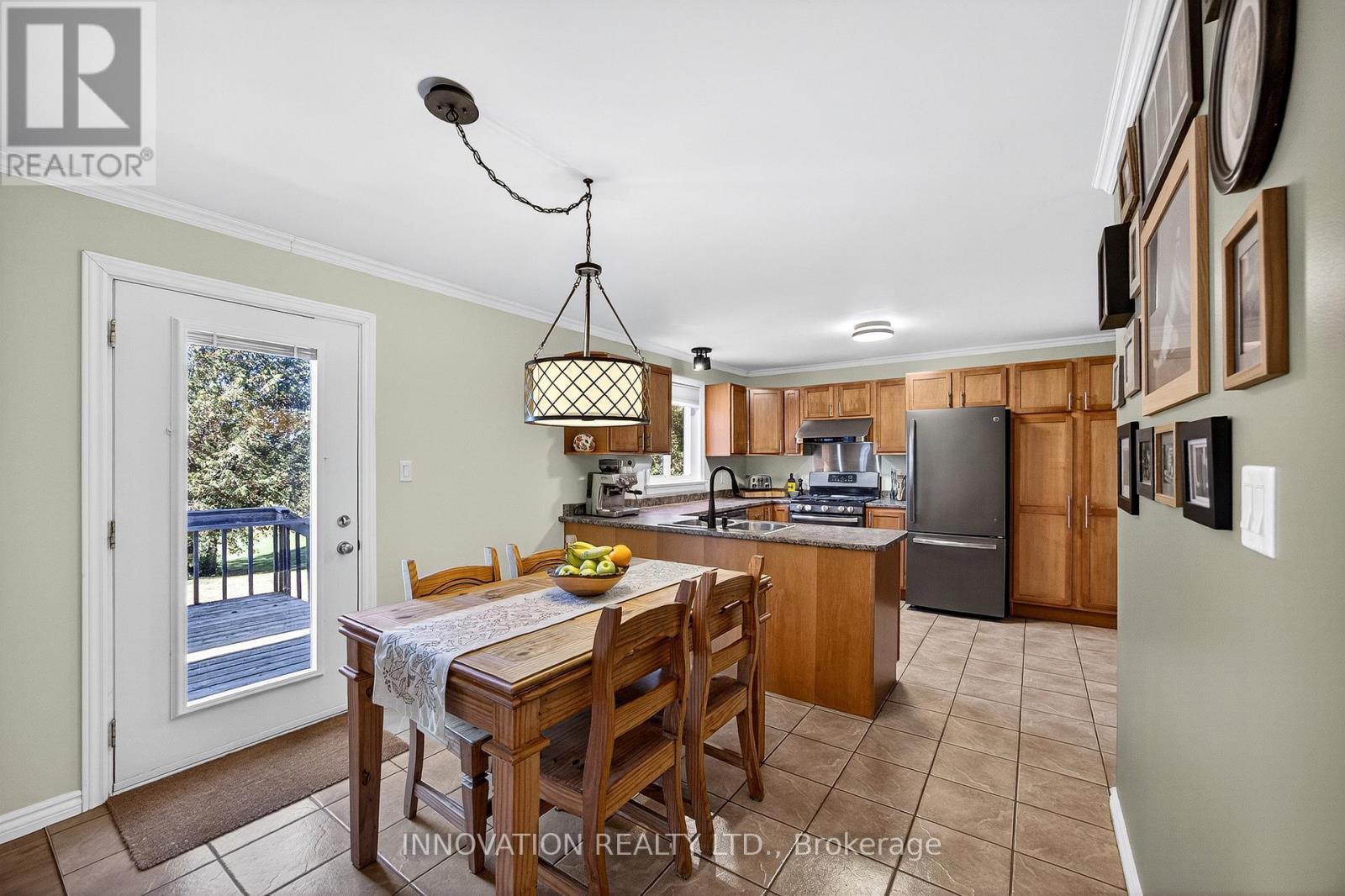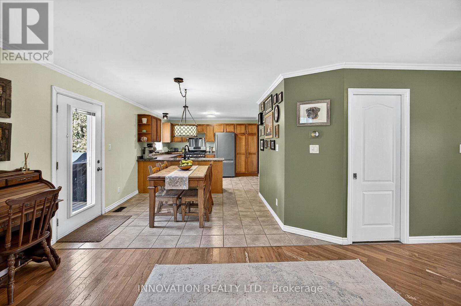 Beckwith beauty. Sometimes an opportunity comes along too good to pass up. This five-bedroom (3+2) raised bungalow, nestled on the 7th Line just 10 minutes outside Carleton Place, offers a private, pastoral setting on a beautifully treed one-acre lot. It's perfectly situated for a reasonable commute while still being far enough from town to see the stars at night.The home features an open-concept kitchen, dining, and living area, with convenient laundry located off the kitchen. The main floor includes a primary bedroom with a remodeled ensuite, plus two additional bedrooms, one of which could easily serve as a home office. The lower level provides a cozy retreat with a warm and inviting family room, perfect for relaxing or hosting a watch party, especially with the added comfort of a pellet stove. This level also includes two more bedrooms, a storage room, and an exercise/yoga room. Outside, you'll find treed privacy from the 7th Line, a spacious two-car garage, and a deck with a gazebo-ideal for enjoying your own piece of heaven. One final bonus is the deeded access to Mississippi Lake. This is a truly beautiful home. Time to make your move. (id:49712)
