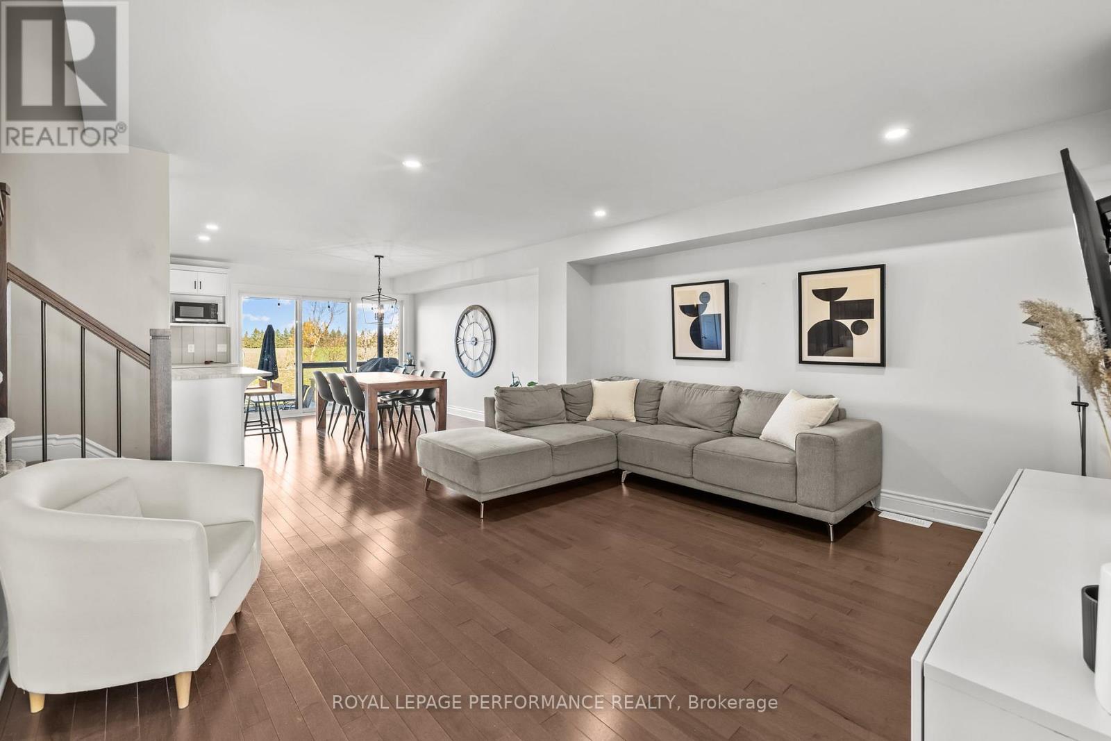 Welcome to 279 Belfort Street in Embrun! This stunning, spacious townhouse offers stylish upgrades and the rare bonus of no rear neighbours. Step inside to be greeted by an abundance of natural light and an inviting open-concept layout. The main level features a generous living room, perfect for relaxing or entertaining. The adjacent modern kitchen boasts ample counter space, a sit-down island, and a large pantry - ideal for any home chef. The dining area opens through patio doors onto an expansive deck, where you can enjoy serene views of trees and open fields. A convenient powder room completes the main floor. Upstairs, the primary bedroom impresses with its spacious walk-in closet and sleek ensuite bathroom featuring a ceramic shower. Two additional well-sized bedrooms with large windows and closets, a stylish 3-piece bathroom, and a dedicated laundry room provide comfort and functionality for the whole family. The basement offers versatile living space - perfect for a family room, home gym, or hobby area. Outside, a double-wide driveway ensures plenty of parking .Located in the charming town of Embrun, this home combines the convenience of nearby amenities with the peaceful beauty of the countryside. Don't miss your chance to call 279 Belfort home! (id:49712)