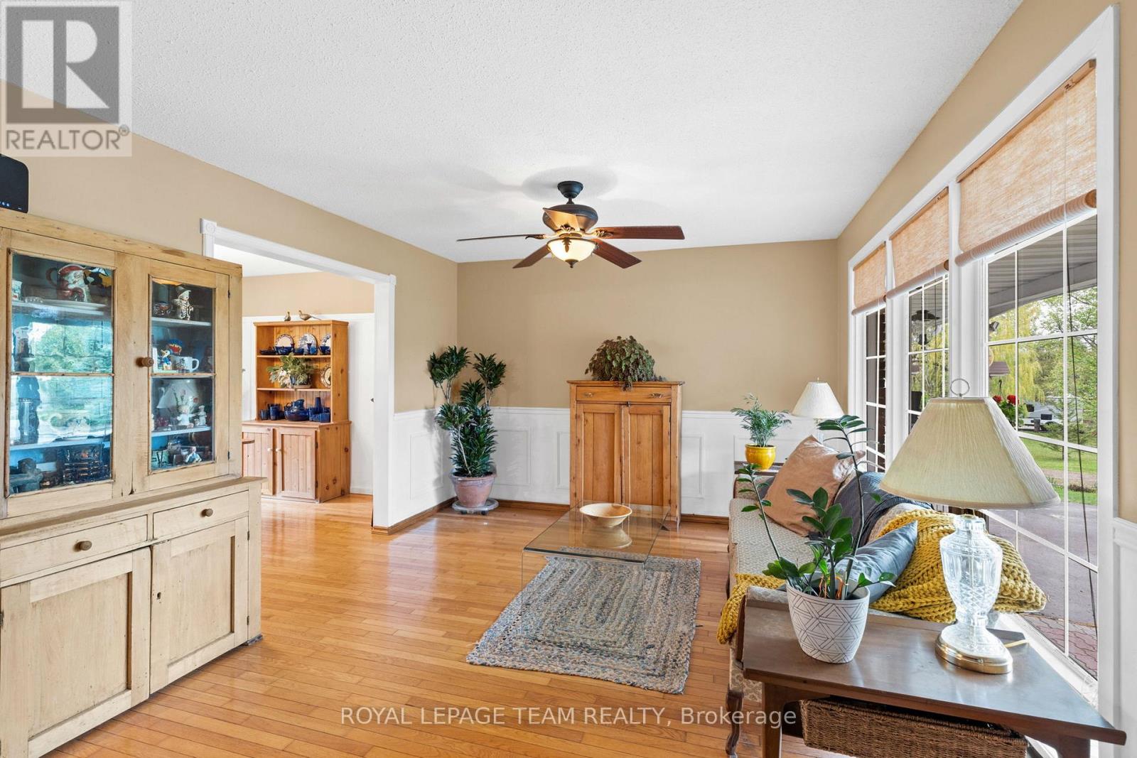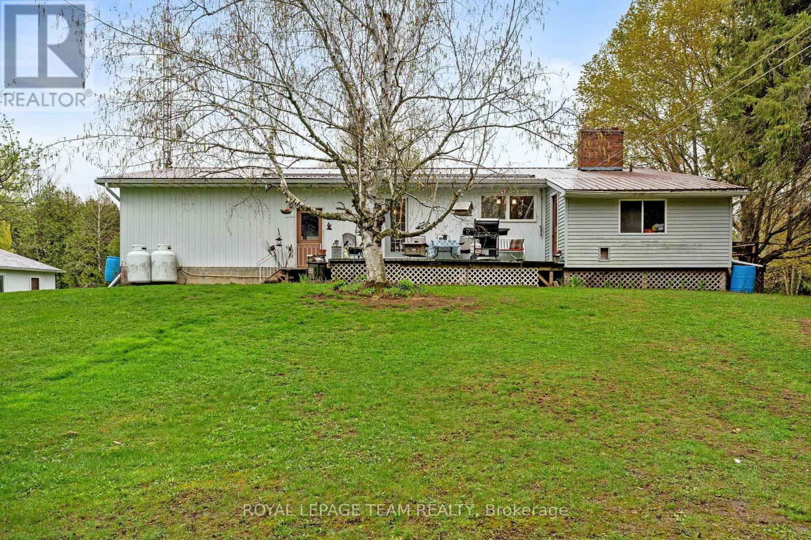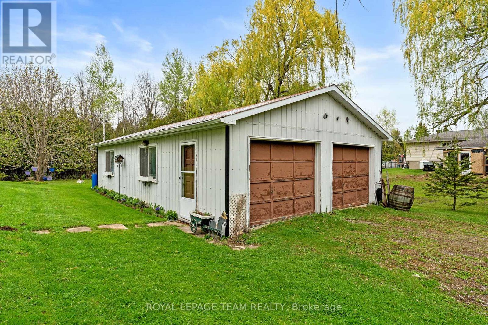 Tucked away on a tranquil 2.8-acre lot in Millars Corners, this beautifully maintained 3-bedroom bungalow offers the perfect blend of peaceful country living and modern convenience. Just minutes from Highway 416 and the growing amenities of Kemptville, it's ideally situated for commuters and families seeking space, privacy, and accessibility.Surrounded by mature trees and vibrant perennial gardens, the property feels like a private retreat. Expansive lawns and two spacious decks invite you to savour the outdoors year-round-whether it's quiet mornings with coffee or evening gatherings under the stars.Inside, the home is warm and welcoming. The updated kitchen features modern cabinetry, generous counter space, and a layout designed for everyday living and easy hosting. A convenient main-floor laundry enhances functionality. The formal dining area flows into a sunlit sitting room, while a cozy family room with a fireplace and walkout to the back deck offers the perfect spot for relaxed evenings.With two full bathrooms and a spacious attached 2-car garage, the home balances comfort and practicality. The expansive partially finished basement offers endless potential for added living space, a gym, or entertainment area, it currently has a second kitchen and a woodstove. A standout feature is the **massive outbuilding**, equipped with 200-amp electrical service and space for up to six vehicles. Whether you're a hobbyist, tradesperson, entrepreneur, or collector, this versatile space is ready to support your vision-from workshops and studios to small business operations or extra storage.Additional updates, including a durable metal roof, provide peace of mind. More than just a home, this is a lifestyle-an inviting haven where comfort, nature, and possibility meet. Your next chapter begins here! (id:49712)
