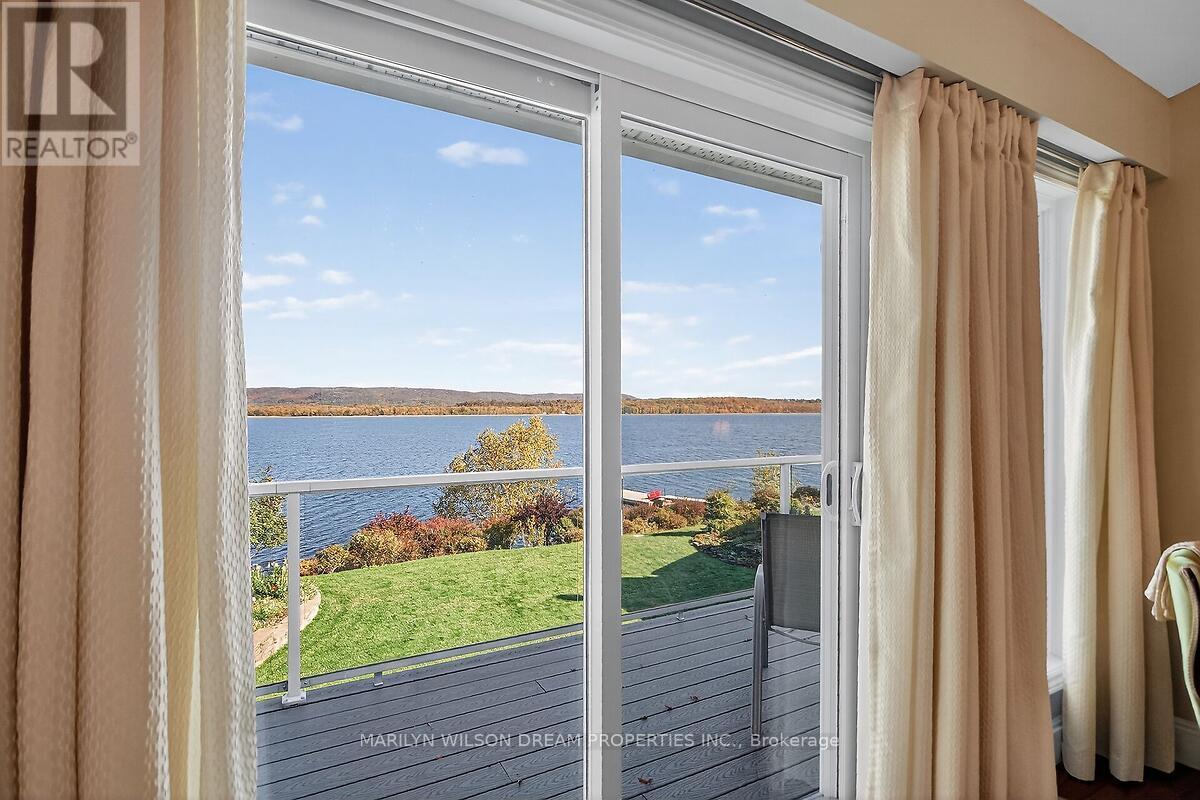 Charming waterfront residence just minutes from Kanata! Spectacular views overlooking the Ottawa River and the Gatineau Hills. Extensively updated bungalow with lower level walkout. 105' waterfront with sought after deep waterfront for boating & swimming. Two main level bedrooms plus two on the walkout level and 3 baths. Exceptional views from all principal rooms. Living room with wood burning fireplace & cathedral ceilings. Stunning gourmet kitchen with luxury cabinets, granite counters & 9' island. New fridge & stove in 2025. Principle bedroom with cathedral ceiling, newer composite patio, his/her walk in & updated ensuite. New walk-in shower, cabinetry, quartz countertop and new toilet in 2025. Second bedroom currently used as office. Curved open staircase to lower level. A huge stone wood burning fireplace creates an inviting atmosphere to this walkout level. Family room also features a wet bar and patio doors to yard. Two additional bedrooms & 3 piece bath. Massive 55' x 26' BONUS rec room was used as an Art studio & teaching facility. Heated separately & has a private entrance, as well as main house access. Great for studio, in-law suite, home business, games room, gym, party room, etc. One could also consider Airbnb rentals. Mud room off of oversized 2.5 car garage. Newer windows & patio doors. Impeccably maintained home. Full list of updates attached. A rural getaway minutes to the marina, Marshes golf, Kanata hi-tech, CTC, etc. No need for a cottage! 24 hours notice for showings please. (id:49712)