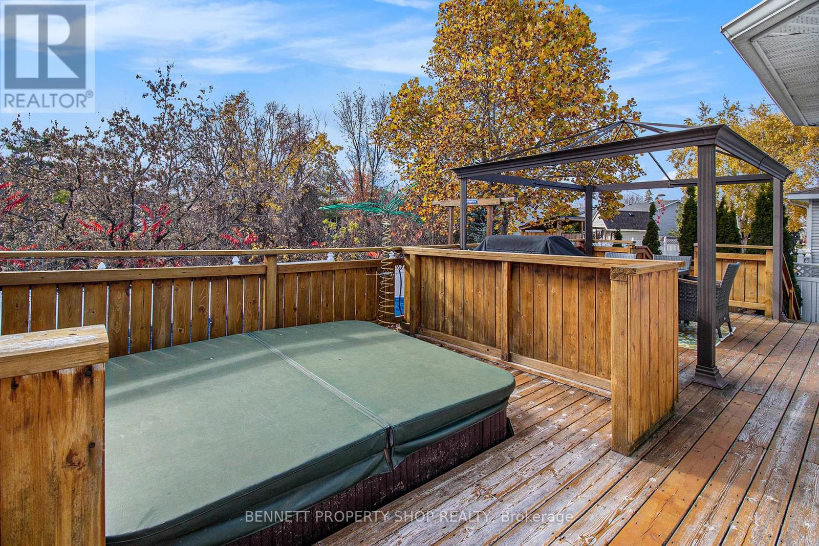 Attractively priced, this well-maintained, move-in-ready home in an established Arnprior neighbourhood checks all the boxes: curb appeal, front porch, extra-large lot & double garage. There's a modern kitchen with granite counters & stainless-steel appliances, a separate living/dining room, laundry & family room conveniently located on the main level and a fourth bedroom with an egress window & a full bathroom on the lower level. Family & friends can gather in the open plan kitchen/eating area/ family room, where large windows & garden doors bring the outdoors in. Enjoy the view out over the treed ravine. Then step out onto the cedar deck designed for entertaining, complete with hot tub, gazebo, cabana, saltwater pool & fenced yard. Generous-sized lot extends beyond the white fence into the ravine area - ideal for carving out walking trails, a dog run, developing gardens in summer and enjoying snowshoeing and cross-country skiing in winter. All this in a well-established neighbourhood close to schools, the hospital, library, golf course, community centre, marina, and public beach. It's the kind of place where you can truly settle in, spread out, and enjoy life. 24 hours irrevocable on all offers. (id:49712)