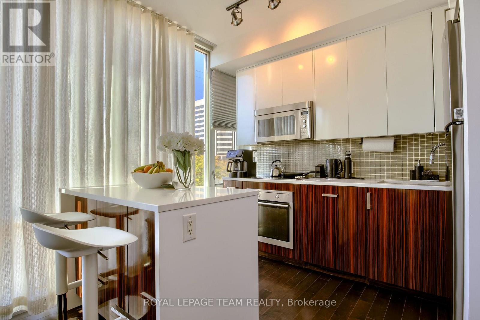 Welcome to SoHo Parkway! This stylish 1-bedroom condo offers approximately 888 sq ft of bright, open-concept living space. The modern kitchen features quartz countertops, a generous island and stainless steel appliances. Floor-to-ceiling windows fill the living area with natural light and open onto a private balcony facing east. A spacious bedroom and sparkling 4-piece bath complete the unit, which includes in-suite laundry. Residents have access to premium amenities including a fully equipped fitness centre, movie theatre room and boardroom. One owned storage locker is included. Steps to the LRT, Parkdale Market and trendy shops and restaurants. Available December 1, 2025. No pets and no smoking. (id:49712)