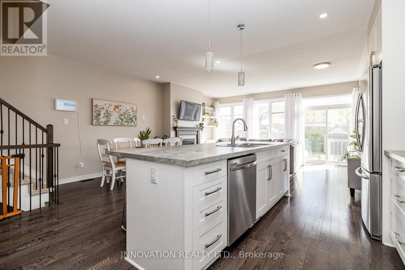 Welcome to this bright and beautiful townhome, filled with natural light and located in a fabulous family-friendly neighborhood - right across the street from the park! Enjoy the convenience of nearby public transportation, schools, and amenities, all while living in a peaceful and welcoming community. Inside, you'll find a spacious open-concept layout that's perfect for everyday living and entertaining. The kitchen features a large island with plenty of prep space, a walk-in pantry, and an easy flow into the living and dining areas. A wall of windows fills the space with sunshine and opens onto the large, fully fenced backyard - ideal for kids, pets, and summer barbecues. A cozy natural gas fireplace makes the main floor warm and inviting year-round. Upstairs offers three generous bedrooms, including a bright primary suite with two walk-in closets and a relaxing ensuite complete with a soaker tub and separate shower - your own little retreat at the end of the day. The fully finished lower level adds even more living space with a comfortable family room featuring another gas fireplace, a handy den or home office, and plenty of storage. With space for everyone, a fantastic layout, and a location that's hard to beat, this home is ready to welcome its next family! Furnace 2022 (id:49712)