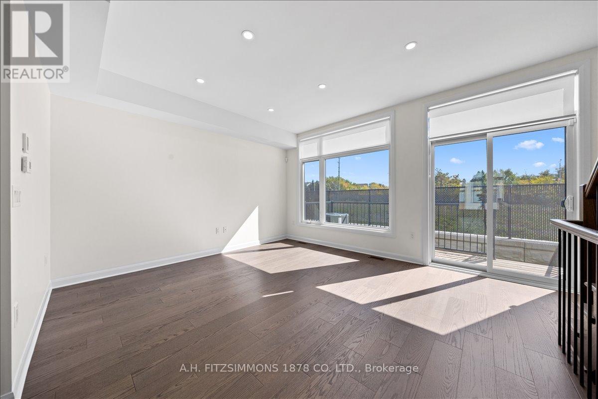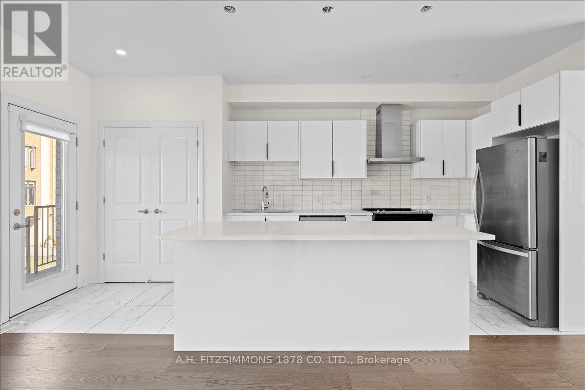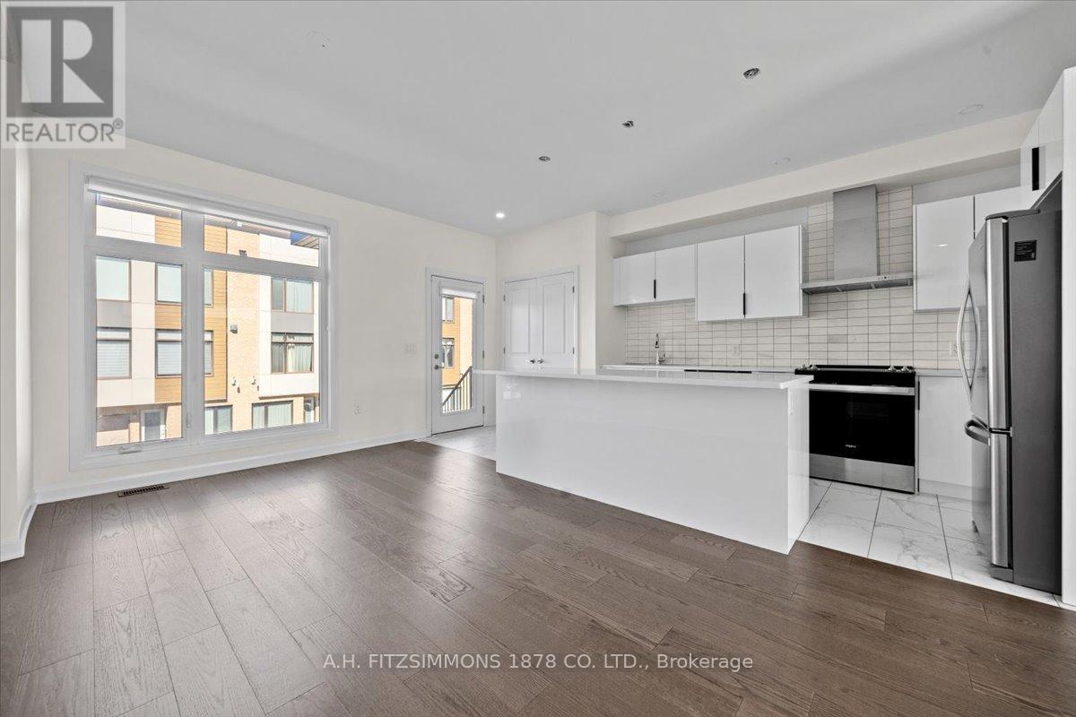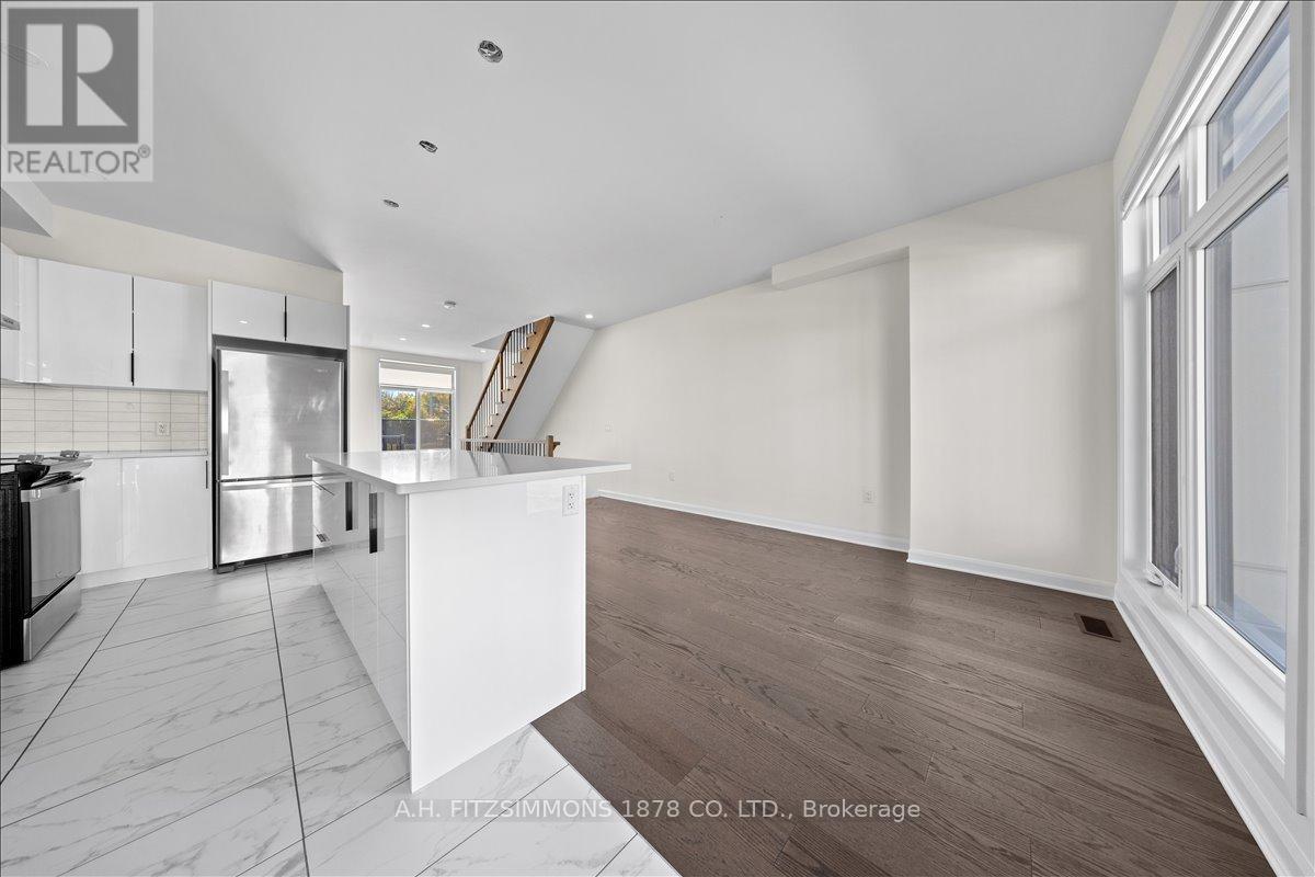 This stylish three-bedroom, three-bath Fresh Town offers exceptional versatility, perfect for first-time buyers, downsizers, or small families. The open-concept main floor boasts wall-to-wall engineered hardwood and a spacious kitchen with quartz countertops and stainless steel appliances. Upstairs, you will find three comfortable bedrooms with floor to ceiling windows, including a bright primary bedroom with its own three-piece ensuite and walk-in closet. The ground floor provides even more flexibility with a private office/den, convenient two-piece bath, and direct access to the attached garage. Tenant pays all utilities. (id:49712)