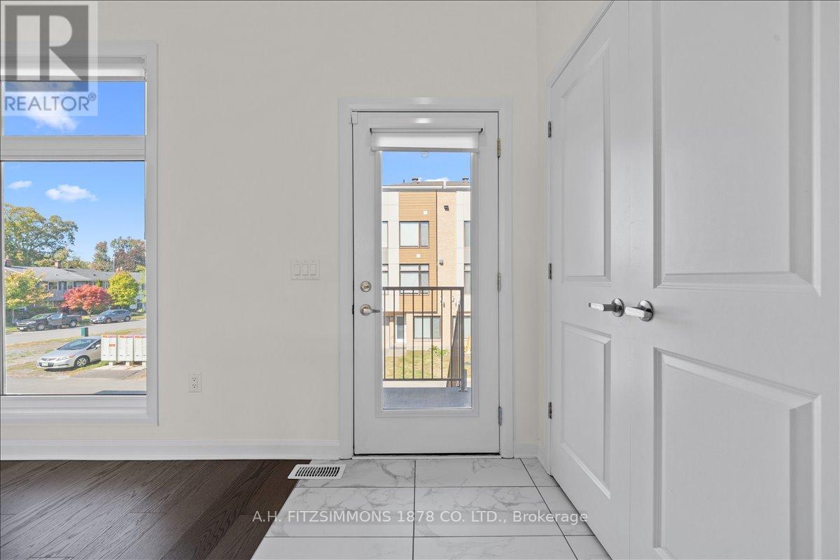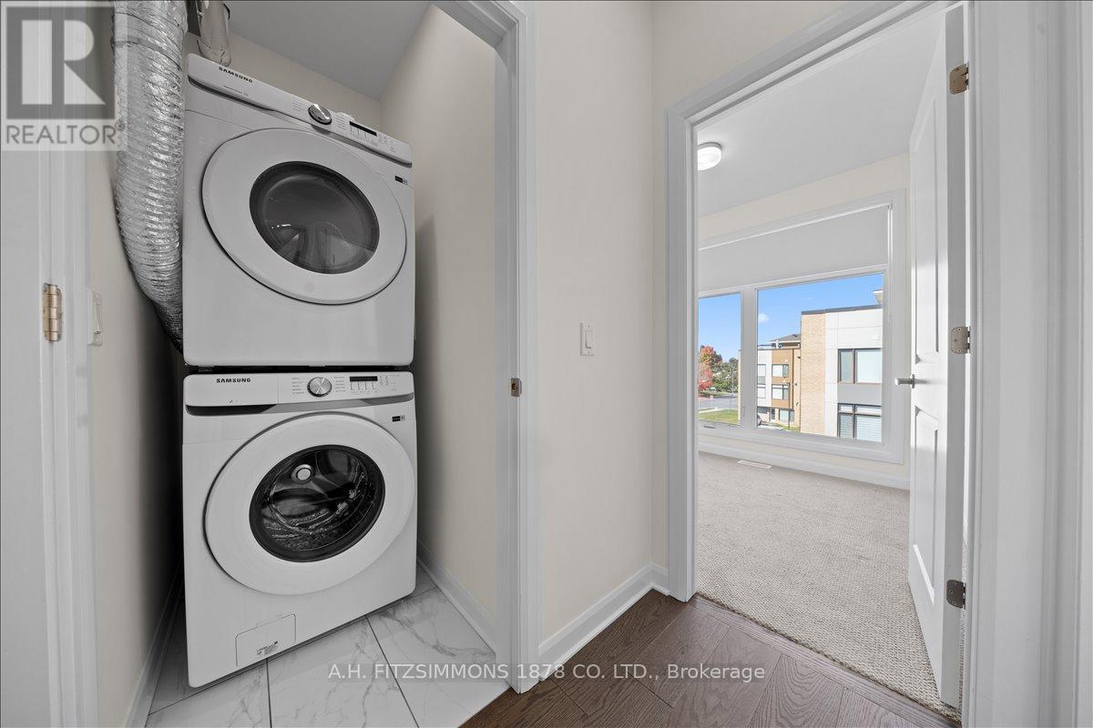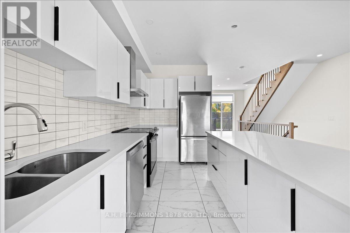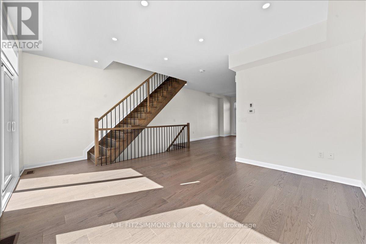 This stylish three-bedroom, three-bath Fresh Town offers exceptional versatility, perfect for first-time buyers, downsizers, or small families. The open-concept main floor boasts wall-to-wall engineered hardwood and a spacious kitchen with quartz countertops and stainless steel appliances. Upstairs, you will find three comfortable bedrooms with floor to ceiling windows, including a bright primary bedroom with its own three-piece ensuite and walk-in closet. The ground floor provides even more flexibility with a private office/den, convenient two-piece bath, and direct access to the attached garage. Tenant pays all utilities. (id:49712)