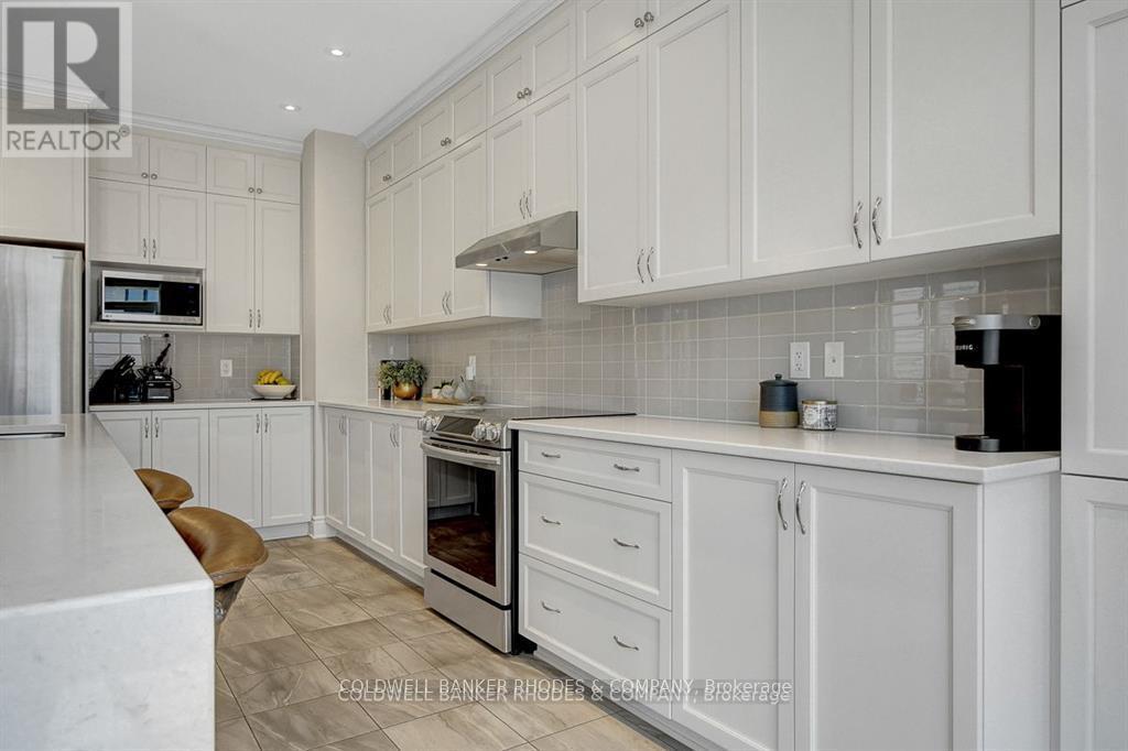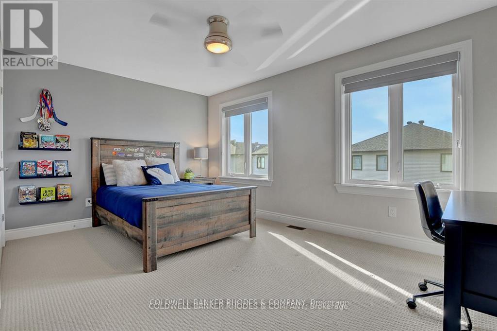 Executive Richcraft Baldwin C | Energy Star | Premium 45 x 105 lot | 4 + 1 beds | Finished basement | Riverside South. Approx. 2,695 sq ft above grade + professionally finished basement (2022) with rec room and fifth bedroom. Chef's Kitchen showcases a waterfall quartz island, 12" uppers to the ceiling, and a stainless steel hood fan. Level 4 Lauzon engineered hardwood, pot lights, a built-in mudroom bench and an open-to-above great room define the main floor. Upstairs offers four generous bedrooms, a professionally landscaped backyard with a deck, 2024 interlock patio & gazebo; fully finished garage & fence. Energy efficient with HRV, high-efficiency hot water tank (rental - new 2022), new Trane A/C (2024) & Ecobee thermostat (2023). Turn-key executive home on one of Riverside South's widest lots - style, efficiency and space combined. (id:49712)