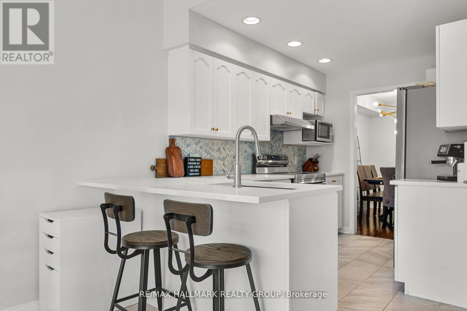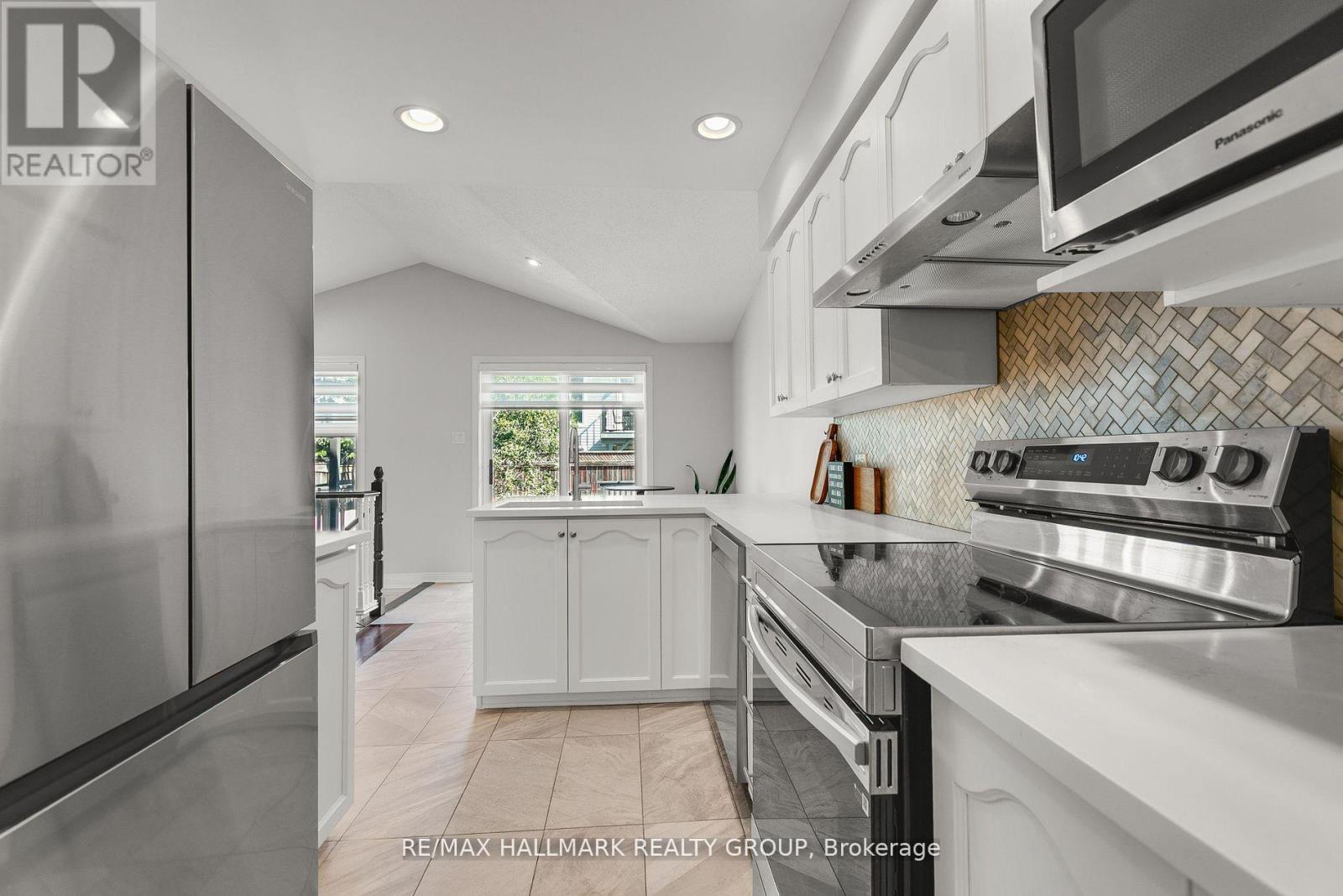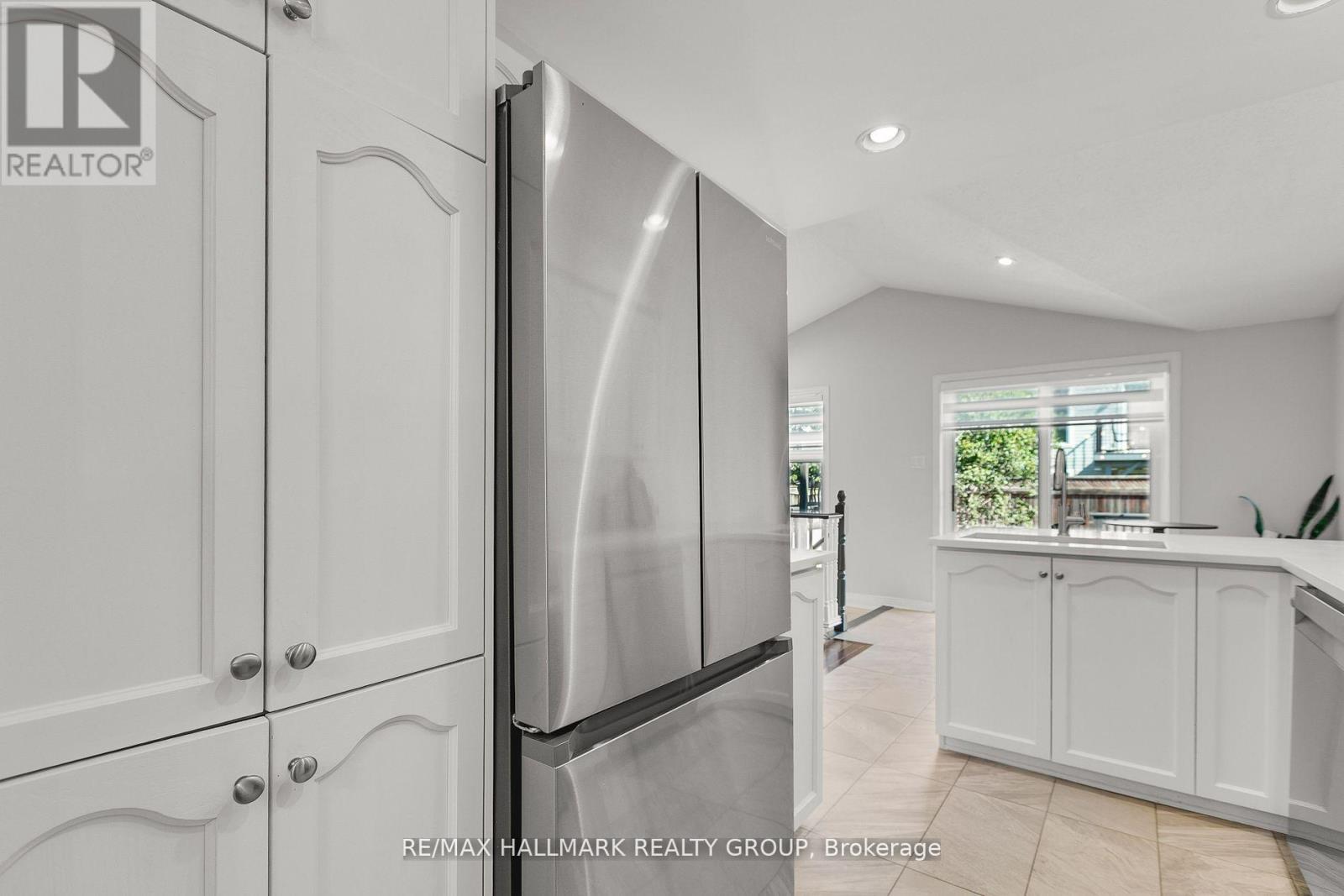 Beautifully updated 3-bedroom townhome in the desirable Bridlewood community of Kanata! The main level offers hardwood and tile flooring, a spacious living room with vaulted ceiling, separate dining area, and a bright eat-in kitchen with quartz counters, breakfast bar, and recently updated SS appliances. Upstairs you'll find a generous primary suite with ensuite and walk-in closet, two additional bedrooms, and a full 3piece bath. The finished lower level features a cozy family room and plenty of storage. Enjoy outdoor living in the fenced backyard with oversized deck, perfect for relaxing or entertaining. Additional features include updated baths, central air, brick frontage with covered entrance, and parking for 2 cars. Located in a family-friendly neighborhood close to excellent schools, parks, trails, shopping, and public transit. (id:49712)