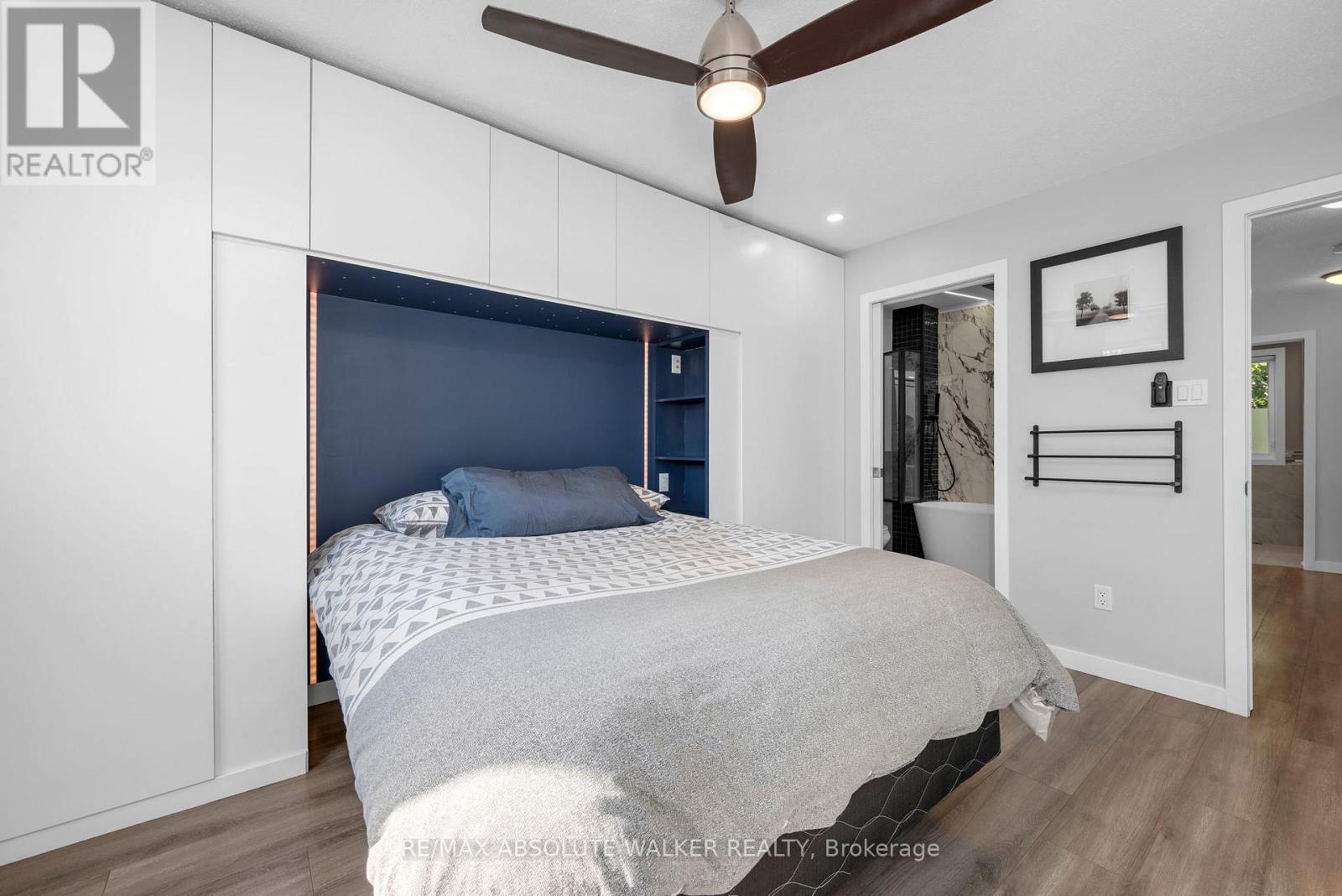 Welcome to this beautifully renovated 3-bedroom, 2.5-bathroom home in the highly sought-after community of Morgan's Grant. Extensively updated from top to bottom, this property perfectly blends modern style, comfort, and functionality. Step inside to find a bright, open layout featuring new lighting throughout and smart LED systems that let you customize the ambiance for any occasion. The upgraded kitchen offers contemporary finishes and plenty of space for cooking and entertaining. Upstairs, retreat to a luxurious primary suite with a high-end ensuite bathroom-complete with a European-style bath and shower combo, elegant French-hinged glass doors, and designer tile work. Two additional bedrooms provide flexibility for family, guests, or a home office. The finished basement adds valuable living space with brand-new flooring, ideal for a media room, gym, or hobby area.Step outside to a large private backyard surrounded by mature trees and lush greenery-a peaceful setting to relax or entertain. Lovingly maintained and thoughtfully improved by the same family for over 20 years, this home is truly one of a kind. Ideally located in a quiet, family-friendly neighbourhood, just a short walk or drive to the Brook street Hotel, parks, trails, and the Kanata Tech Park. This turnkey property offers luxury, privacy, and convenience-all in one of Kanata's most desirable communities. (id:49712)