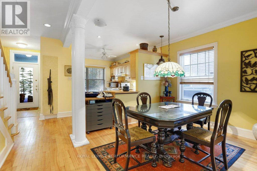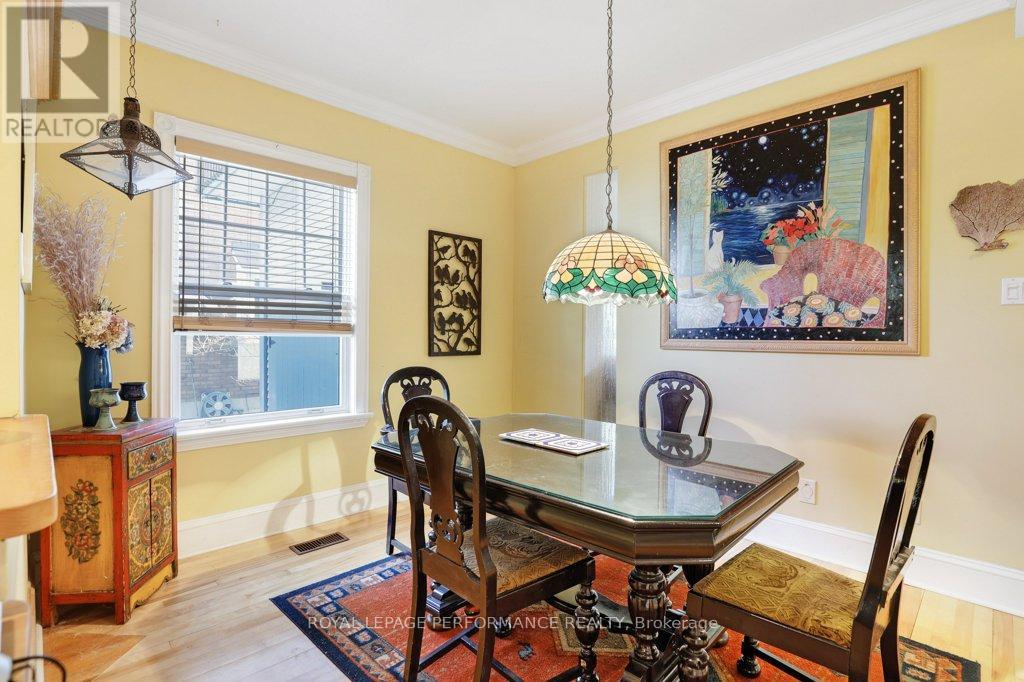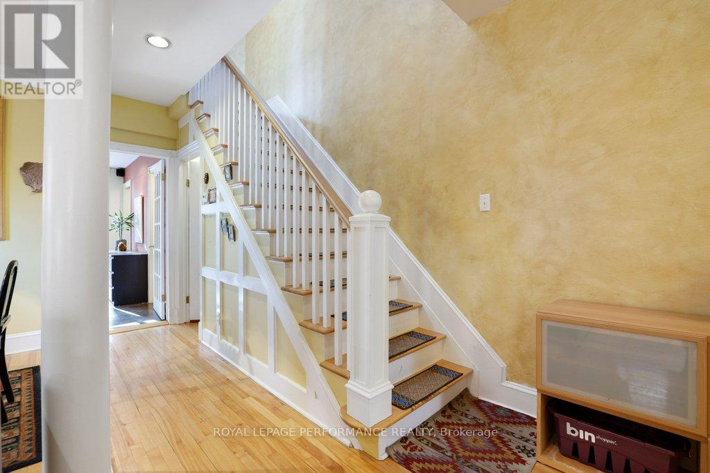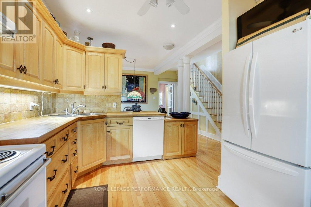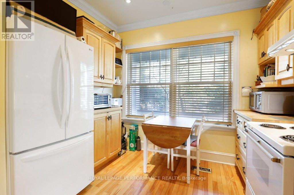 Full of character and warmth, this inviting 3-bedroom, 3-bathroom detached home offers a cozy blend of comfort and charm. The spacious living room features cork flooring, a gas fireplace, and access to a sun-filled, south-facing deck. The open eat-in kitchen and dining area are perfect for family meals, while the private front porch adds a welcoming touch. Both the front and back yards create a peaceful woodland oasis, surrounded by dense, leafy vegetation that provides a sense of calm and exceptional privacy a perfect setting for relaxing outdoors or entertaining. Upstairs, one of the bedrooms opens onto a large second-floor deck, a serene spot to enjoy morning coffee or evening breezes. Recent updates include a central air system (2025), gas water heater (2025, owned), and gas furnace (approx. 2023, owned), ensuring year-round comfort and efficiency. Roughed in whole home security setup. Two parking spaces are included. Set on a quiet street in a highly desirable, family-friendly neighbourhood, this home is steps from parks, recreational paths, and the best of the community. Main Street continues to flourish with local restaurants, cafés, and shops, and the home is within easy walking distance of the Rideau Canal, Rideau River, the Glebe, and Lansdowne Park. 48 hours irrevocable on all offers. (id:49712)