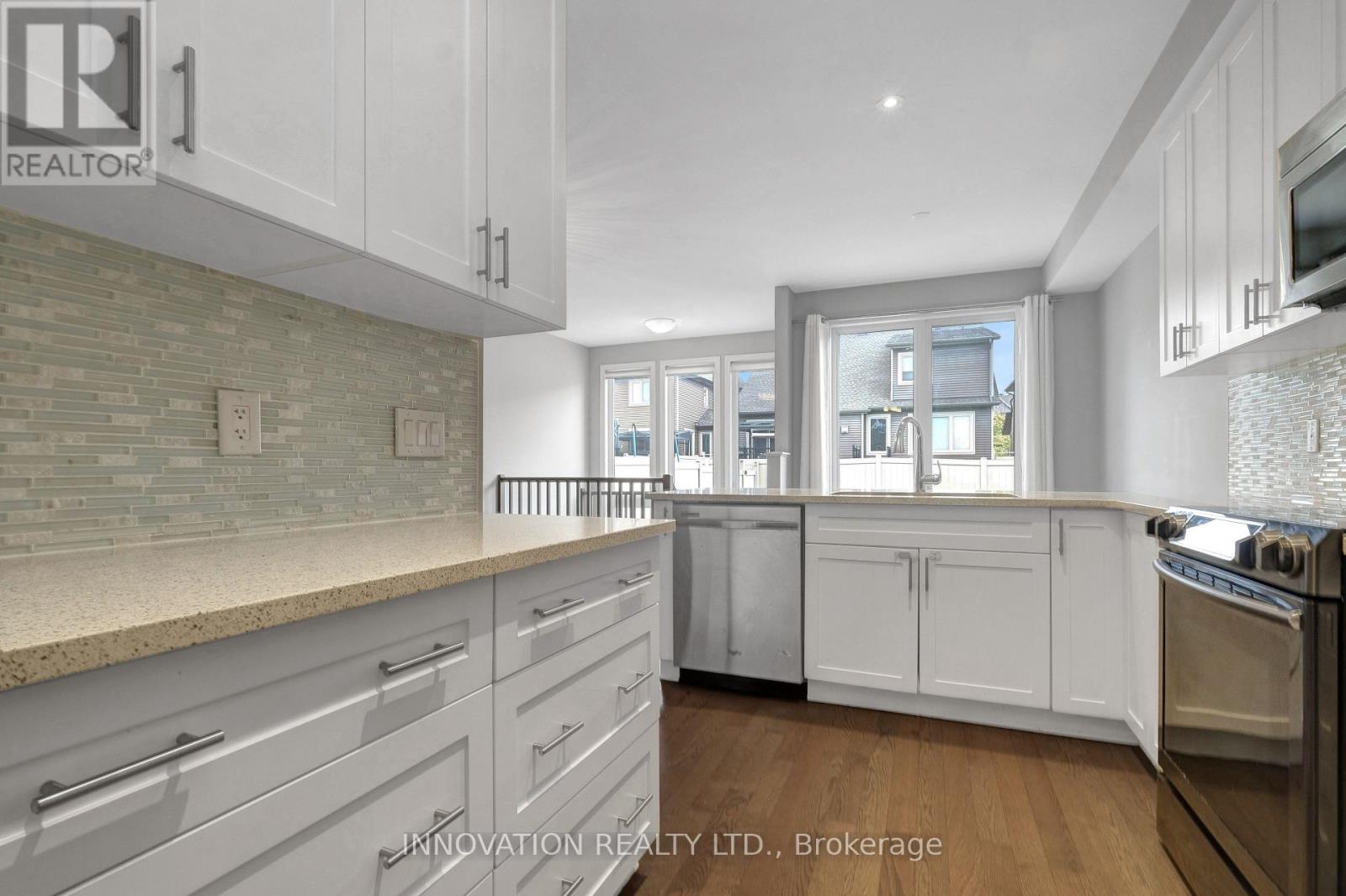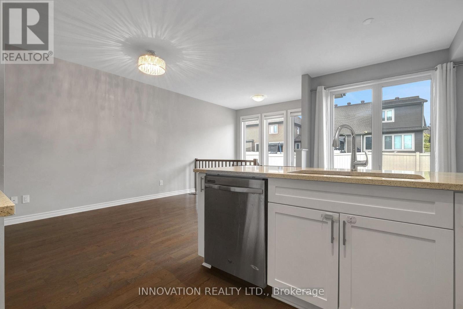 Absolutely stunning! 3 Bedrooms, 3 Bathrooms End unit townhouse, ideally located in Barhaven, close to Costco Shopping Centre, & HWY 416. Features welcoming floor plan, gleaming Hardwood floors in main floor, gourmet kitchen with upgraded cabinets, quartz countertops & S/S appliances, patio door leads to a fenced private backyard with large deck, professionally finished huge family room with Gas Fireplace in lower level, fabulous Master Bedroom with a beautiful 4 pce en suite, good size secondary bedrooms with a full bathroom. Extended driveway with nice interlock, vacant easy to show. (id:49712)