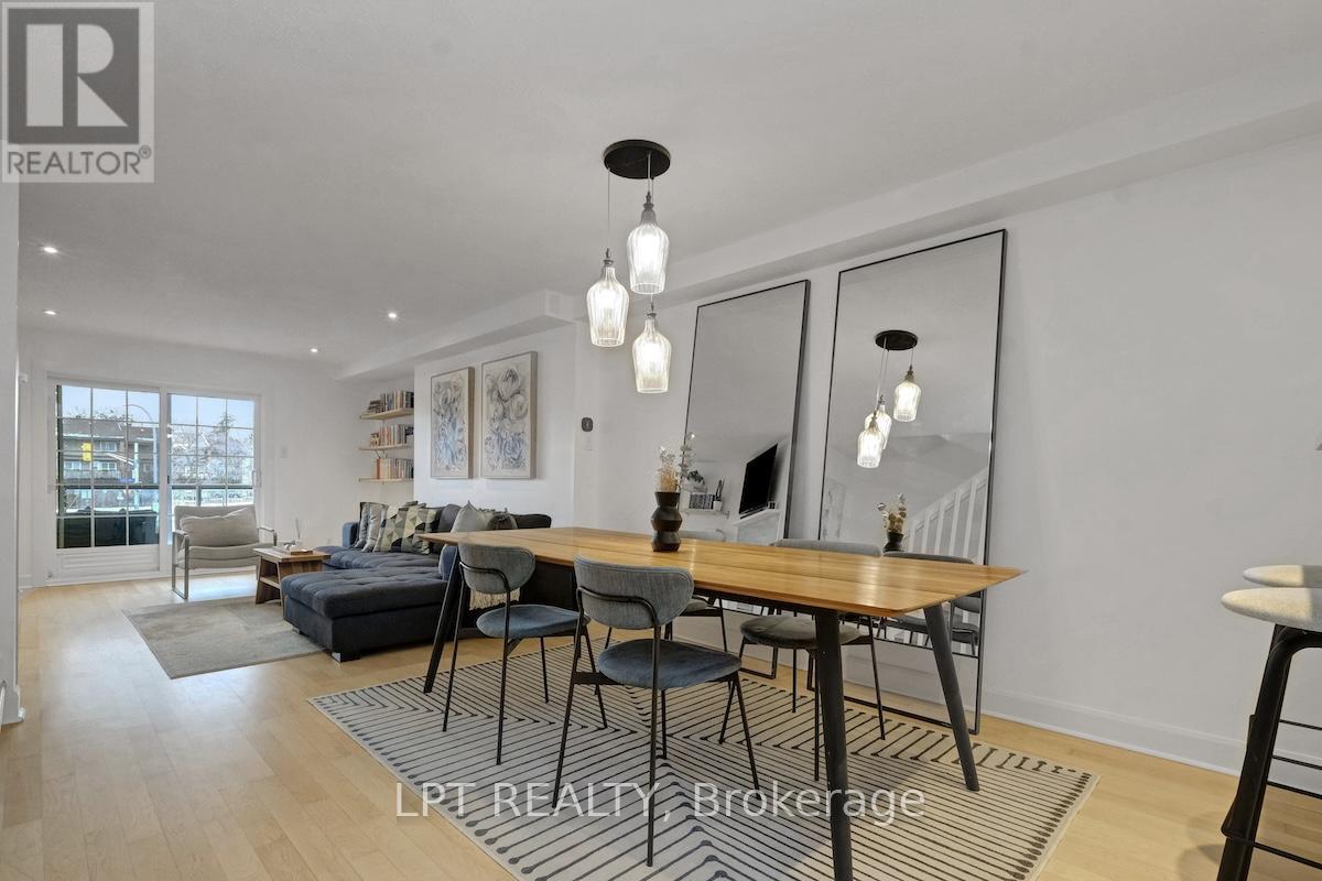 Tucked away on a quiet cul-de-sac in a peaceful pocket of Lower Town, yet just steps from the vibrancy of downtown, this Freehold three-storey 3+1 bedroom, 1.5 bath townhome offers nearly 1,800 square feet of living space, two-car parking with a carport, and a beautifully transformed interior. Extensively renovated inside and out in recent years, this home has been thoughtfully updated with every detail carefully considered to create a stylish, functional, and move-in-ready space. The open concept main level is bright and inviting, with balconies at both ends that extend the living area and flood it with natural light. Upstairs, three spacious bedrooms provide a comfortable retreat for family or guests. The fully finished lower level adds flexibility for an additional bedroom, family room, or home office. Outside, a fully fenced backyard offers a private space to relax or entertain, while the refreshed front landscaping enhances the home's welcoming curb appeal. Perfectly situated near Global Affairs Canada, Parliament Hill, the Ottawa River, and an abundance of cafés, restaurants, shops, parks, and transit, this home blends the benefits of a quiet residential enclave with the convenience of downtown living. Approximate monthly utility costs: Gas $65.22, Hydro $222.75, Water $82.61 (id:49712)