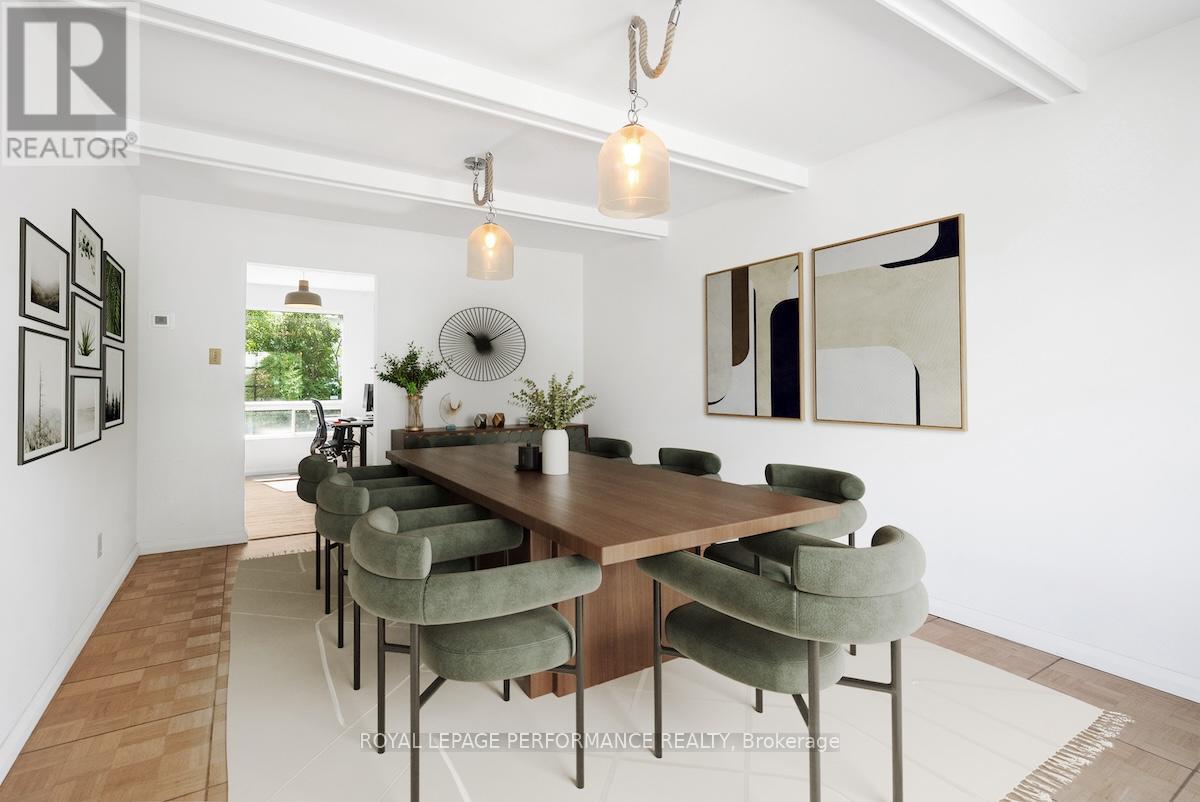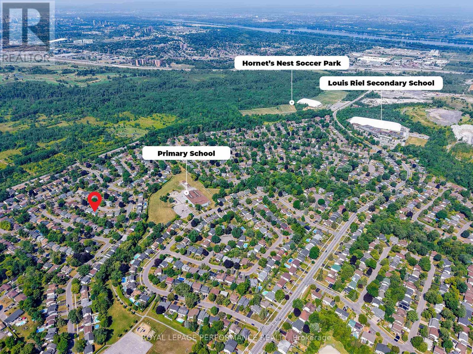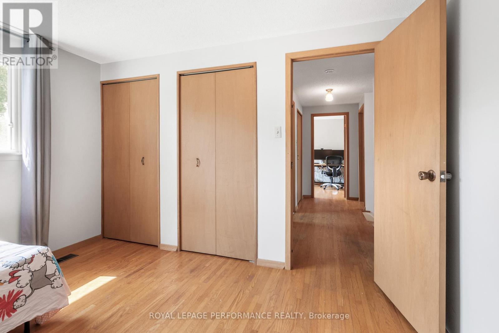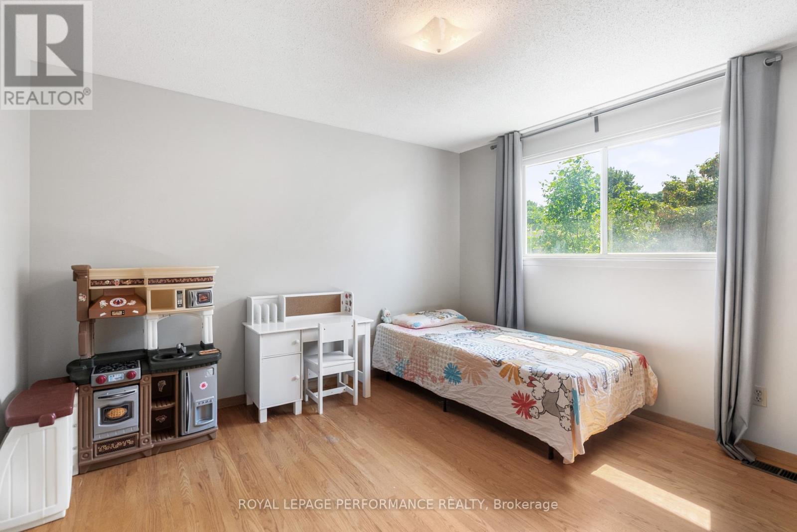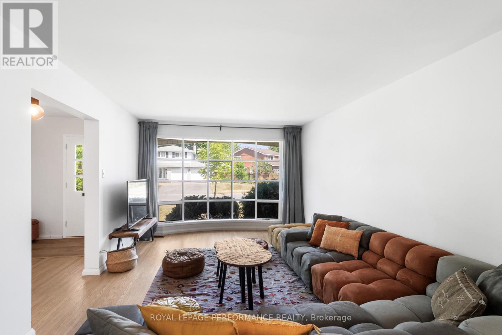 Welcome to this spacious 4-bedroom home ideally situated on a quiet, family-friendly crescent in the heart of Blackburn Hamlet. This two-storey property offers a functional and versatile layout perfect for growing families.The main floor features a bright and inviting family room, a dedicated dining area for hosting, and a cozy living room ideal for everyday relaxation. A convenient powder room and a side entrance to the private yard add practicality to the space. The kitchen area flows well into the backyard, where you'll find a serene, hedged oasis surrounded by mature trees and a covered patio area, perfect for outdoor dining, play, or quiet retreat. The lot is slightly pie shaped. Upstairs, you'll find four generously sized bedrooms, each with good closet space, and a full bathroom. The lower level offers a clean, unfinished basement ready for your customization, whether it be a rec room, home gym, or workshop. Located within walking distance to schools, parks, shopping, and major transit routes, this home offers the perfect blend of suburban peace and urban convenience | Rather than purchasing a home at a higher price point with upgrades that aren't your taste or quality, consider this opportunity to purchase a home that is currently move in ready, where you can update according to your own preferences & timeline | Recent updates & maintenance includes: hardwood floors sanded [2023], removal of the ceiling stipple on the main floor [2023], some light fixtures, removal of the wood panelling & old insulation in the basement [2023], paint [2022], thermostat updated, gas fireplace capped & removed from the living room (where large dining table is in the photos), duct cleaning, annual furnace & AC inspections/servicing, shower head replaced. *Some photos have been virtually staged. (id:49712)
