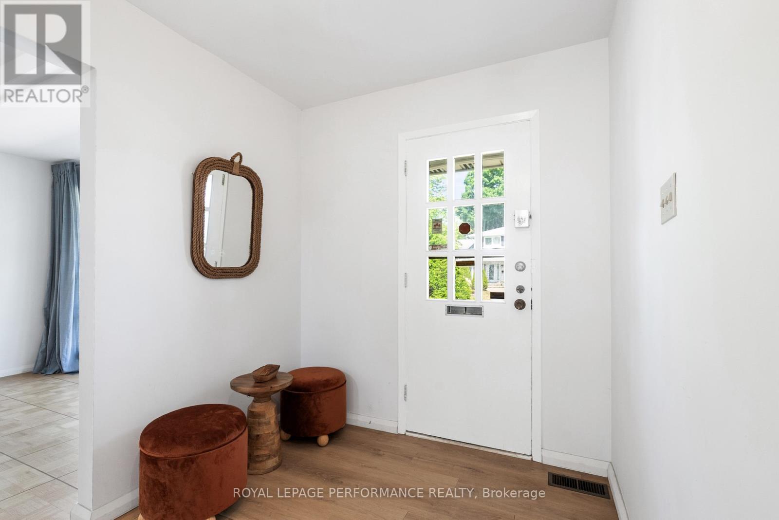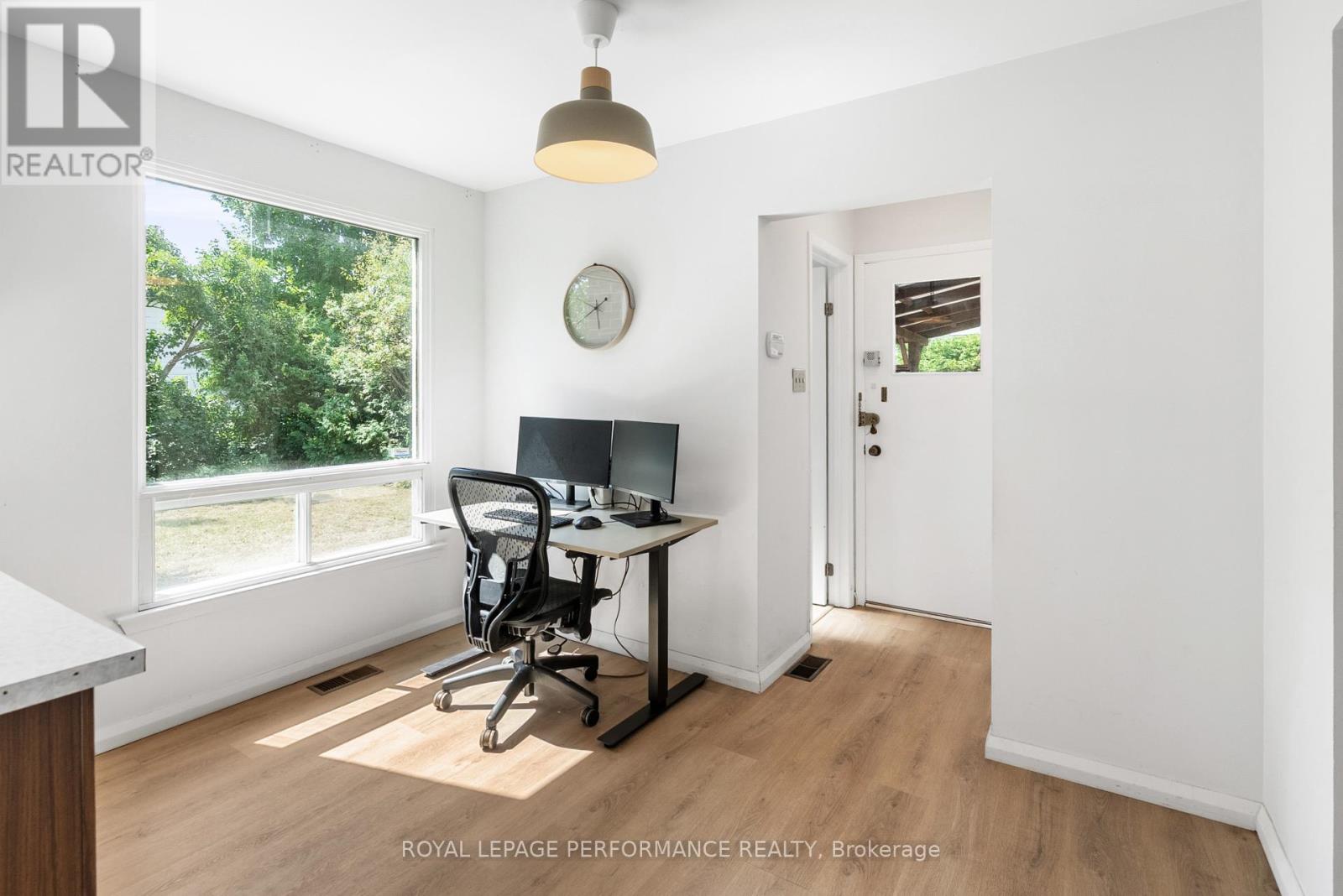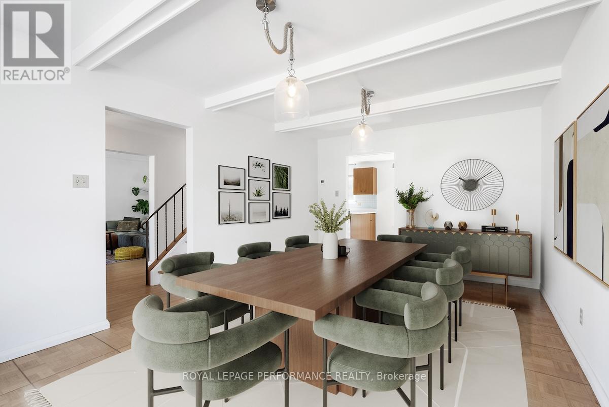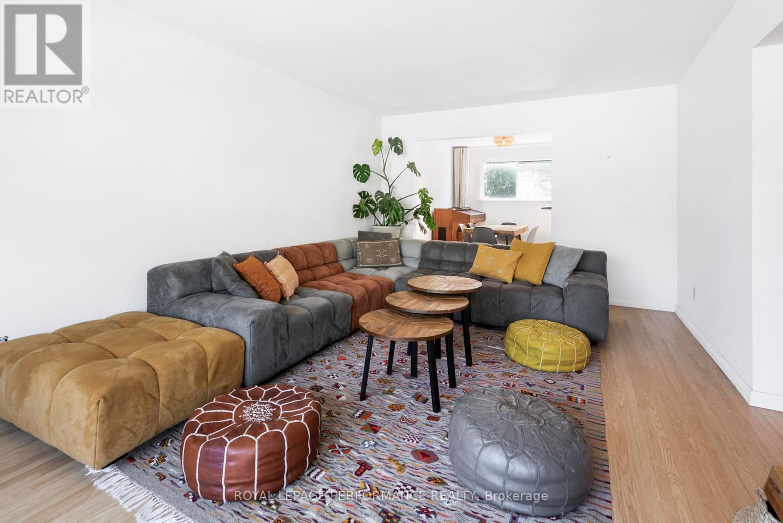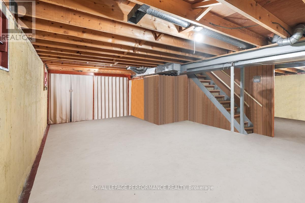 Welcome to this spacious 4-bedroom home ideally situated on a quiet, family-friendly crescent in the heart of Blackburn Hamlet. This two-storey property offers a functional and versatile layout perfect for growing families.The main floor features a bright and inviting family room, a dedicated dining area for hosting, and a cozy living room ideal for everyday relaxation. A convenient powder room and a side entrance to the private yard add practicality to the space. The kitchen area flows well into the backyard, where you'll find a serene, hedged oasis surrounded by mature trees and a covered patio area, perfect for outdoor dining, play, or quiet retreat. The lot is slightly pie shaped. Upstairs, you'll find four generously sized bedrooms, each with good closet space, and a full bathroom. The lower level offers a clean, unfinished basement ready for your customization, whether it be a rec room, home gym, or workshop. Located within walking distance to schools, parks, shopping, and major transit routes, this home offers the perfect blend of suburban peace and urban convenience | Rather than purchasing a home at a higher price point with upgrades that aren't your taste or quality, consider this opportunity to purchase a home that is currently move in ready, where you can update according to your own preferences & timeline | Recent updates & maintenance includes: hardwood floors sanded [2023], removal of the ceiling stipple on the main floor [2023], some light fixtures, removal of the wood panelling & old insulation in the basement [2023], paint [2022], thermostat updated, gas fireplace capped & removed from the living room (where large dining table is in the photos), duct cleaning, annual furnace & AC inspections/servicing, shower head replaced. *Some photos have been virtually staged. (id:49712)