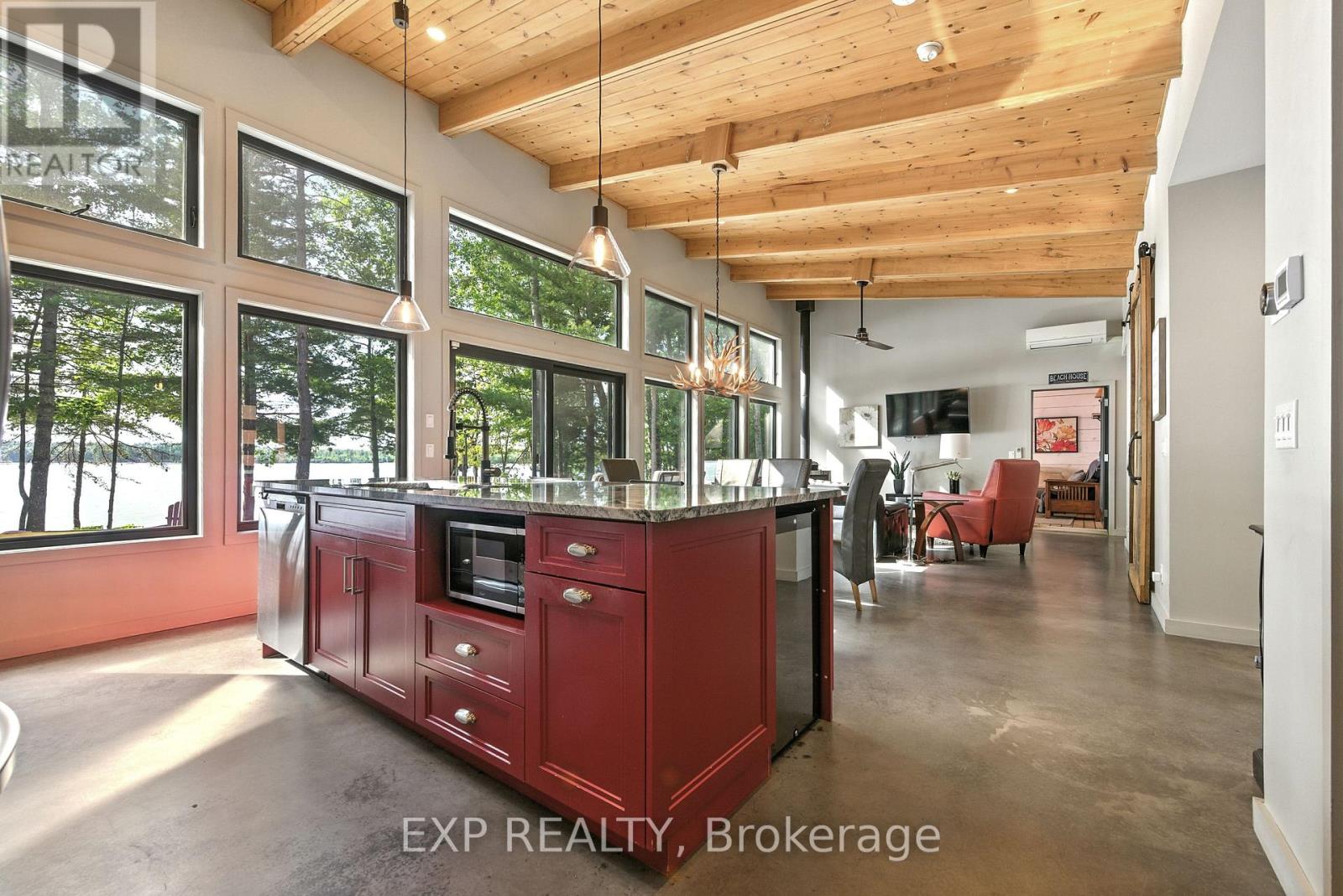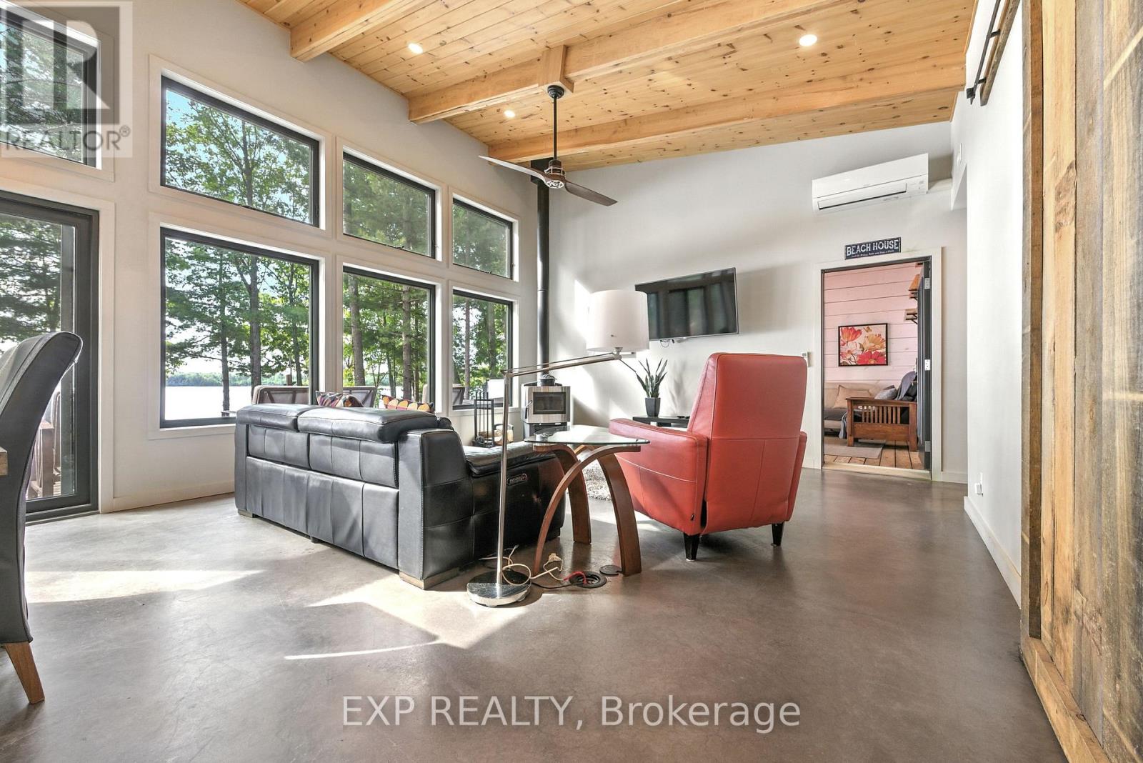 Nestled along the picturesque shores of the Ottawa River, this delightful property offers the perfect blend of rustic charm and modern comfort. Large windows frame breathtaking river views, ensuring youre always just a glance away from nature's beauty. The cozy living room is perfect for relaxing after a day of exploring, while the modern kitchen, complete with sleek countertops and ample storage, is ideal for preparing meals to be enjoyed in the adjacent dining area. Whether you're entertaining family or unwinding with loved ones, this open-concept space provides the flexibility to create memories. Step outside and you're greeted by your very own sandy beach, offering a peaceful retreat and the perfect spot for summer activities. Enjoy leisurely walks along the water's edge, paddleboarding, or simply soaking in the serene surroundings. The backyard provides ample space for outdoor dining, barbecues, or simply enjoying the stunning sunsets over the river. With 2 bedrooms, 2 bathrooms, a spacious sunroom and a separate guest cabin, this home offers comfort and convenience, all while being just moments away from the tranquility of the water. Whether you're looking for a seasonal getaway or a year-round retreat, this Ottawa River gem offers the perfect balance of relaxation and recreation.Dont miss out on the chance to own your piece of paradise. Additionnal features include : high ceilings, radiant floor heating, rear deck. Schedule a viewing today and imagine your life at the water's edge! (id:49712)