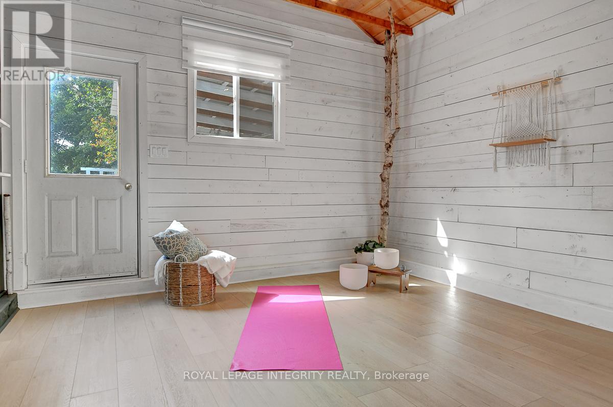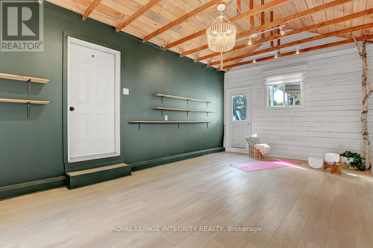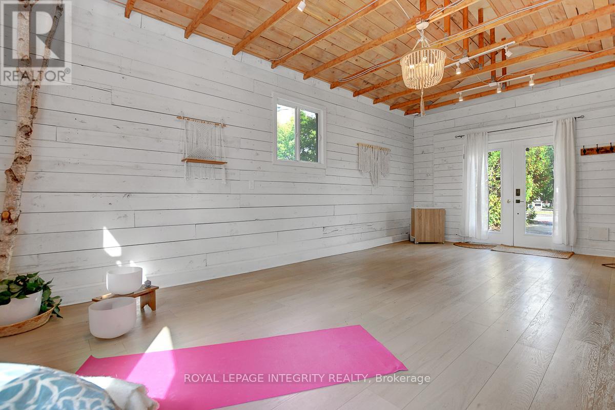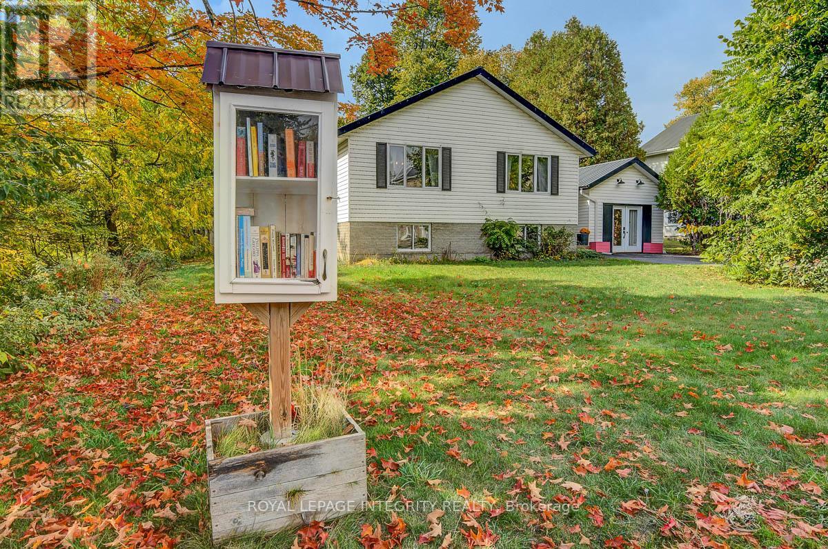 Welcome to 34 Bennett St, located in the heart of Spencerville! This charming 3+1 bedroom, 1 bathroom raised bungalow sits on a large, private lot with no rear neighbours, just steps from all local amenities.The bright main floor features an open-concept living and dining room with hardwood floors, perfect for family living and entertaining. The kitchen offers an abundance of cupboard and counter space, while each of the spacious bedrooms includes a ceiling fan for comfort. The main bathroom is well-appointed with a shower/tub combo and double sinks.The partially finished lower level provides plenty of potential, boasting a large rec room, oversized laundry and storage area, and an additional bedroom. The attached garage has been insulated and transformed into a beautiful yoga studio with separate access, offering flexible use to suit your lifestyle.Outside, the large backyard is private and surrounded by mature trees, with endless possibilities to create your own outdoor oasis. Updates include a furnace and A/C (2019), giving peace of mind for years to come. A wonderful opportunity to enjoy small-town charm with easy access to everyday conveniences - don't miss it! (id:49712)