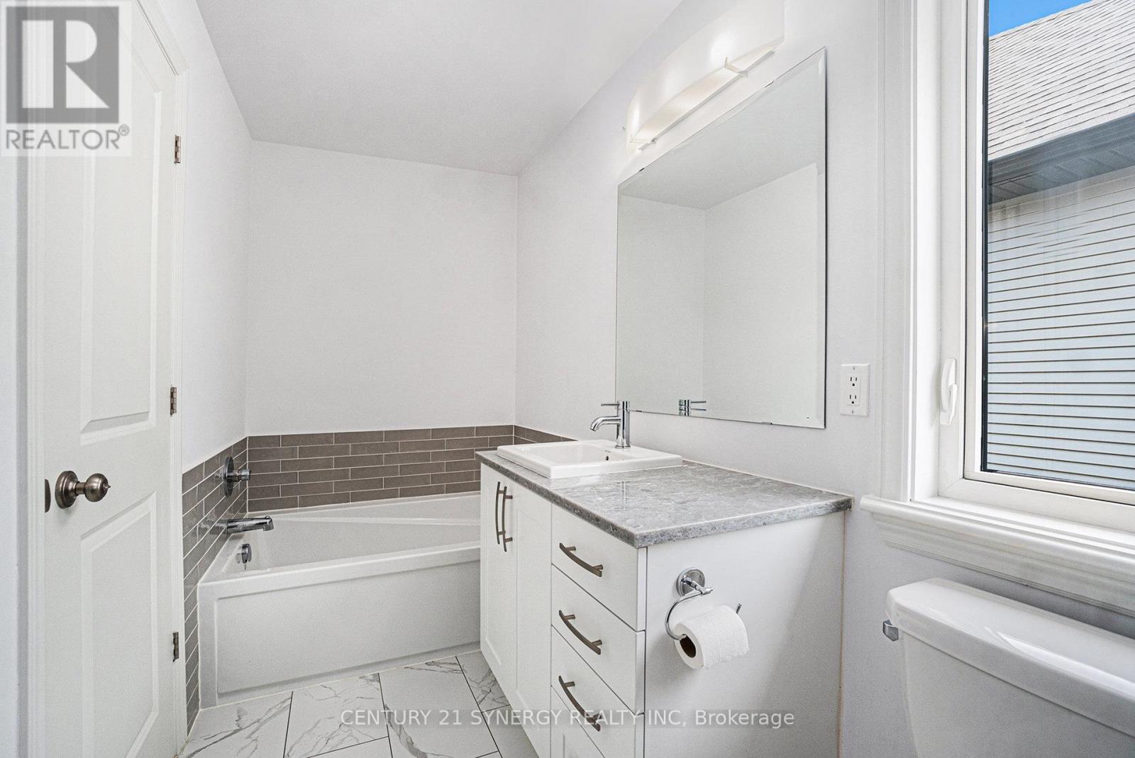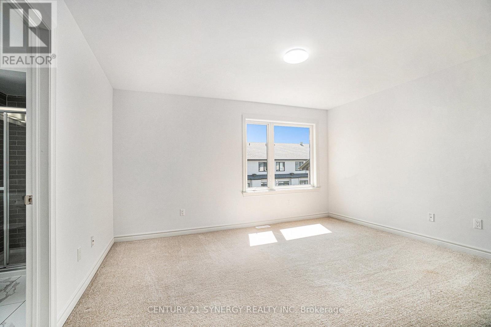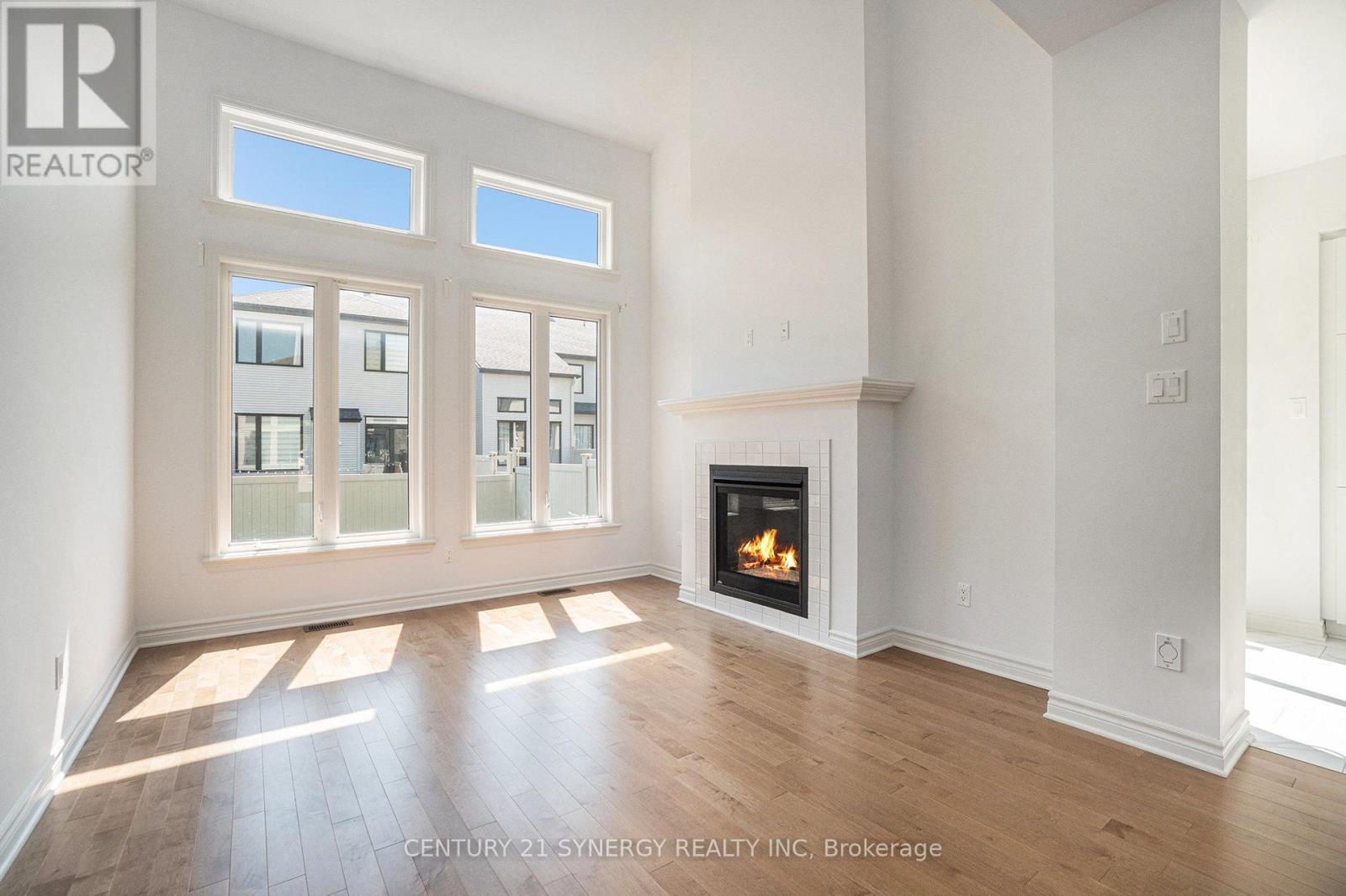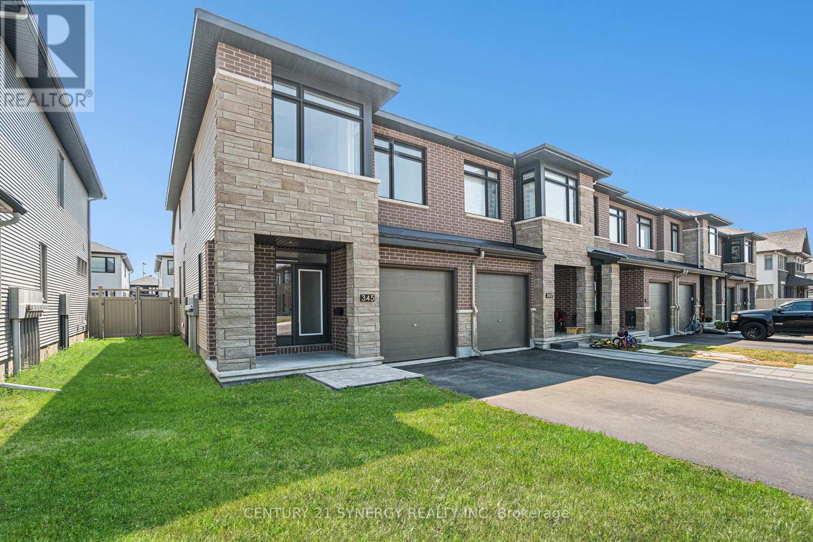 Welcome home to this spectacular Richcraft Executive End-Unit Townhome, where luxury meets comfort in every detail. From the moment you arrive, the curb appeal sets the tone for the elegance inside. The main floor boasts a spacious foyer, clad in large tiles with an oversized closet, a stylish powder room, and inside access to the garage. Step into the bright open-concept living and dining space, flooded with light from the extra windows this end-unit has, highlighted by soaring two-storey windows and an impressive 18-foot ceiling. Warm hardwood floors lead you to a cozy gas fireplace with a custom tiled surround, while the upgraded chefs kitchen steals the spotlight with full-height custom cabinetry, extended pantry, quartz countertops, sleek tile backsplash, gas stove with griddle, stainless steel appliances, and an oversized island with seating for four. Upstairs, the primary suite is a private retreat featuring a large walk-in closet and spa-inspired ensuite with quartz vanity, glass shower, and soaker tub. Two additional bedrooms, a full bathroom, and a convenient laundry room complete the second level. The fully finished lower level offers a large versatile family room, perfect for a home gym, playroom, or rec space, with plenty of storage. Outside, enjoy the fully fenced south-facing backyard with extra space and shade provided by this premium end-unit location with no front neighbours. Recent upgrades include LED lighting, dimmer switches, and interlock. With a beautiful park just steps away, new schools around the corner, and a home that feels brand new, this one won't last long, book a showing today! (id:49712)