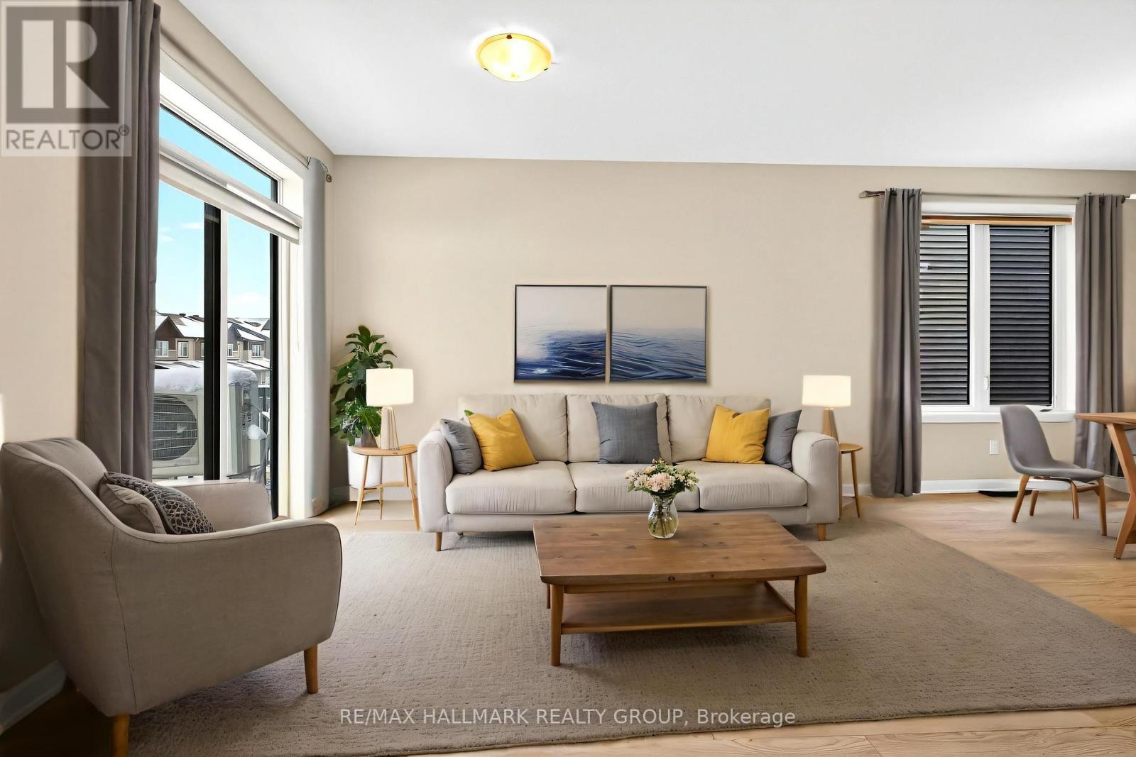 Stylish and move-in ready, this newly painted 3-bedroom end-unit townhome in Barrhaven's sought-after Half Moon Bay community offers a bright, modern open-concept layout perfect for today's lifestyle. The main level features a welcoming foyer with convenient laundry and storage, while the second level boasts a sun-filled kitchen with a central island, open living and dining areas, a functional balcony, and a 2-piece bath. Upstairs, three comfortable bedrooms and a full bathroom provide ample space for family living. As an end unit, this home enjoys extra natural light, added privacy, and great curb appeal-all in a family-friendly neighborhood close to parks, schools, and amenities. (id:49712)