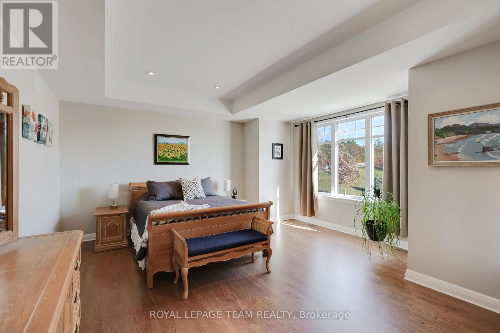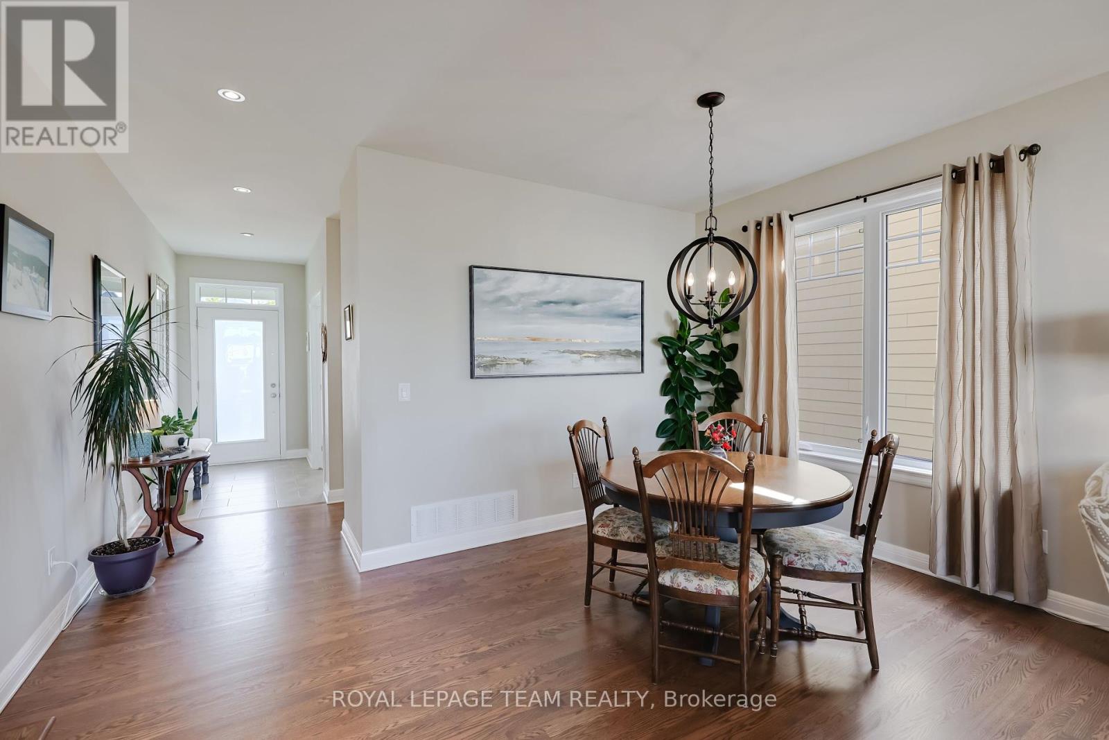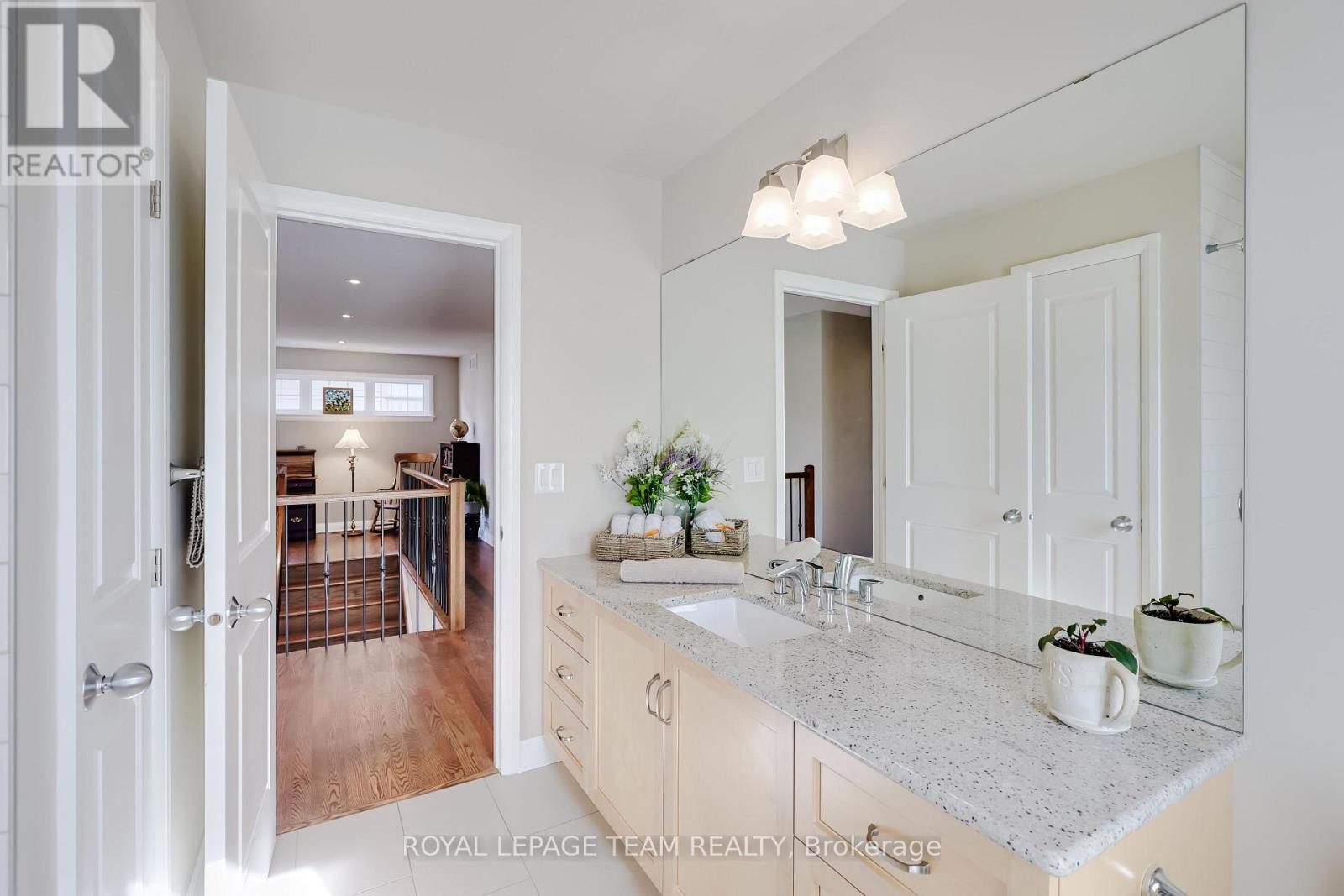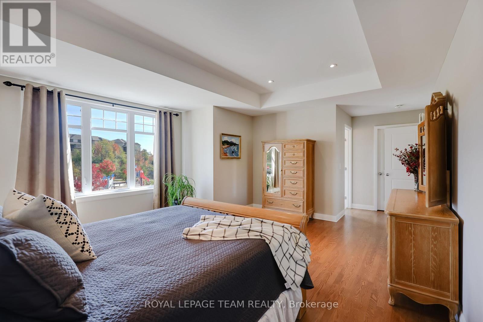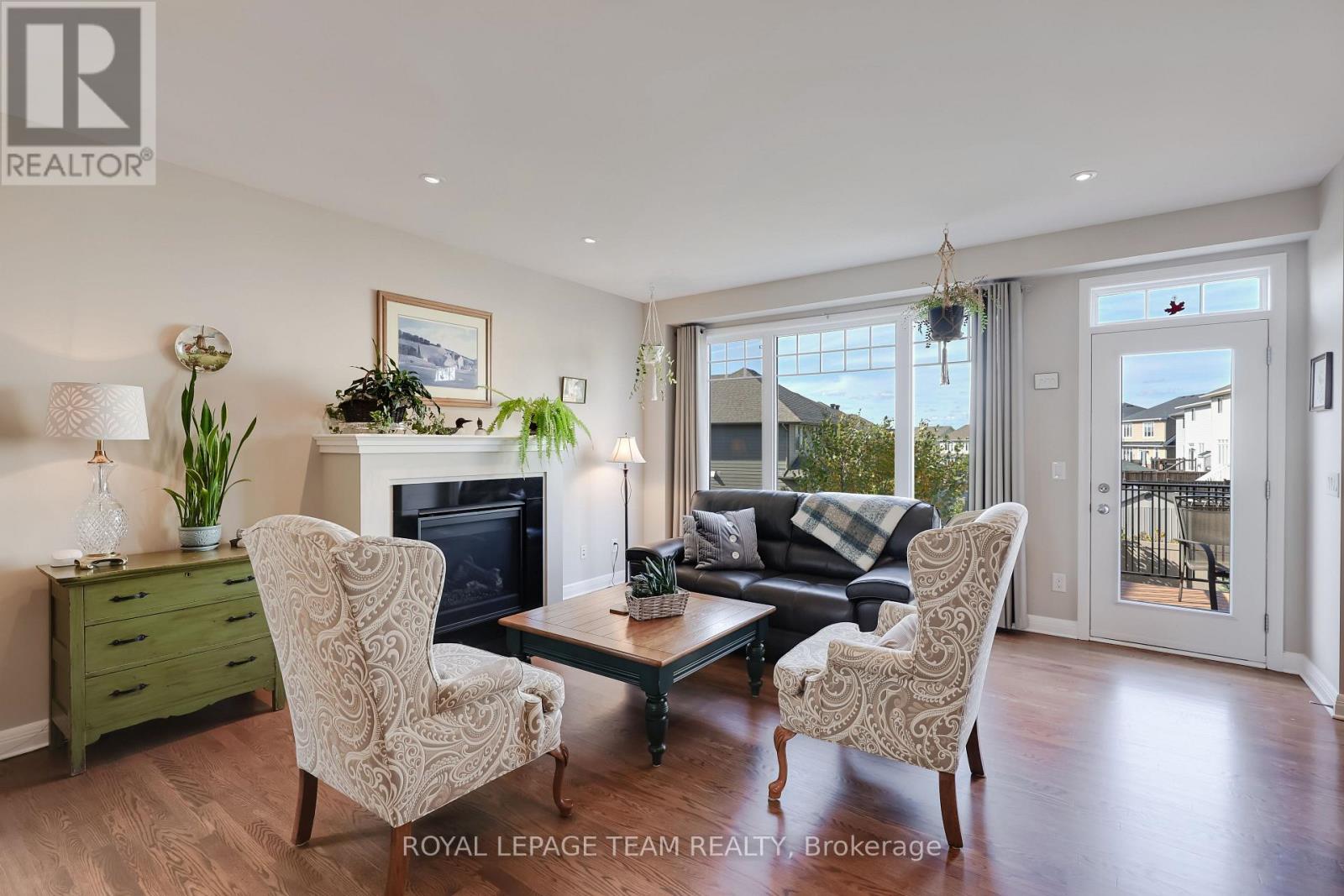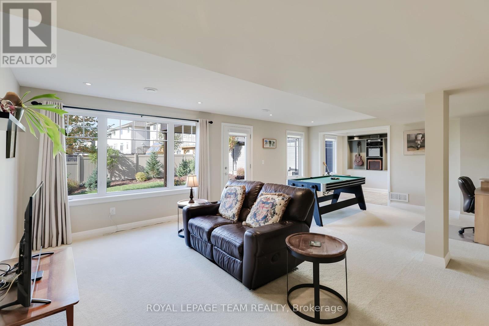 Facing the park and featuring a builder-finished walkout basement, this elegant home is located in the prestigious Kanata Lakes community and has been lovingly maintained by its original owner. Offering nearly 3,000 sq.ft of bright, functional living space, this 4-bedroom, 4-bathroom Uniform-built Griffith model includes a main-floor office and a loft designed for todays modern family. The large front porch overlooks Richardson Heritage Park and playground, creating the perfect spot to relax while watching the kids play. Inside, the open-concept layout highlights oak site-finished hardwood floors, upgraded tiles, and pot lights throughout both levels. The living and dining areas are filled with natural light and anchored by a cozy gas fireplace. The kitchen is a true showpiece, boasting custom Deslaurier cabinetry with crown moulding, granite countertops, a large island with bar seating, premium Samsung appliances, and under-cabinet lighting. Adjacent to the kitchen, the integrated mudroom and laundry area offers a sink, upper cabinets, extra storage, and direct access from the garage for added convenience. Upstairs, the primary suite with raised ceiling and pot lights overlooks the park and features a luxurious 5-piece ensuite with soaker tub, glass shower, double vanities, and custom cabinetry. Three additional well-sized bedrooms, a loft, and a full bath complete the second level. The builder-finished walkout basement provides bright, versatile space perfect for a recreation room, gym, or guest suite, complete with a 3-piece bathroom. Step outside to enjoy a fully landscaped backyard with a lower stone patio, upper deck, perennials, and PVC fencing. Additional upgrades include pot lights, brushed metal stair spindles, granite countertops throughout, and upgraded tiles and cabinetry. Surrounded by top-rated schools, parks, shopping, and the Kanata Tech Hub, this move-in ready home offers luxury, comfort, and an unbeatable location. Rarely Find, Act Fast! (id:49712)