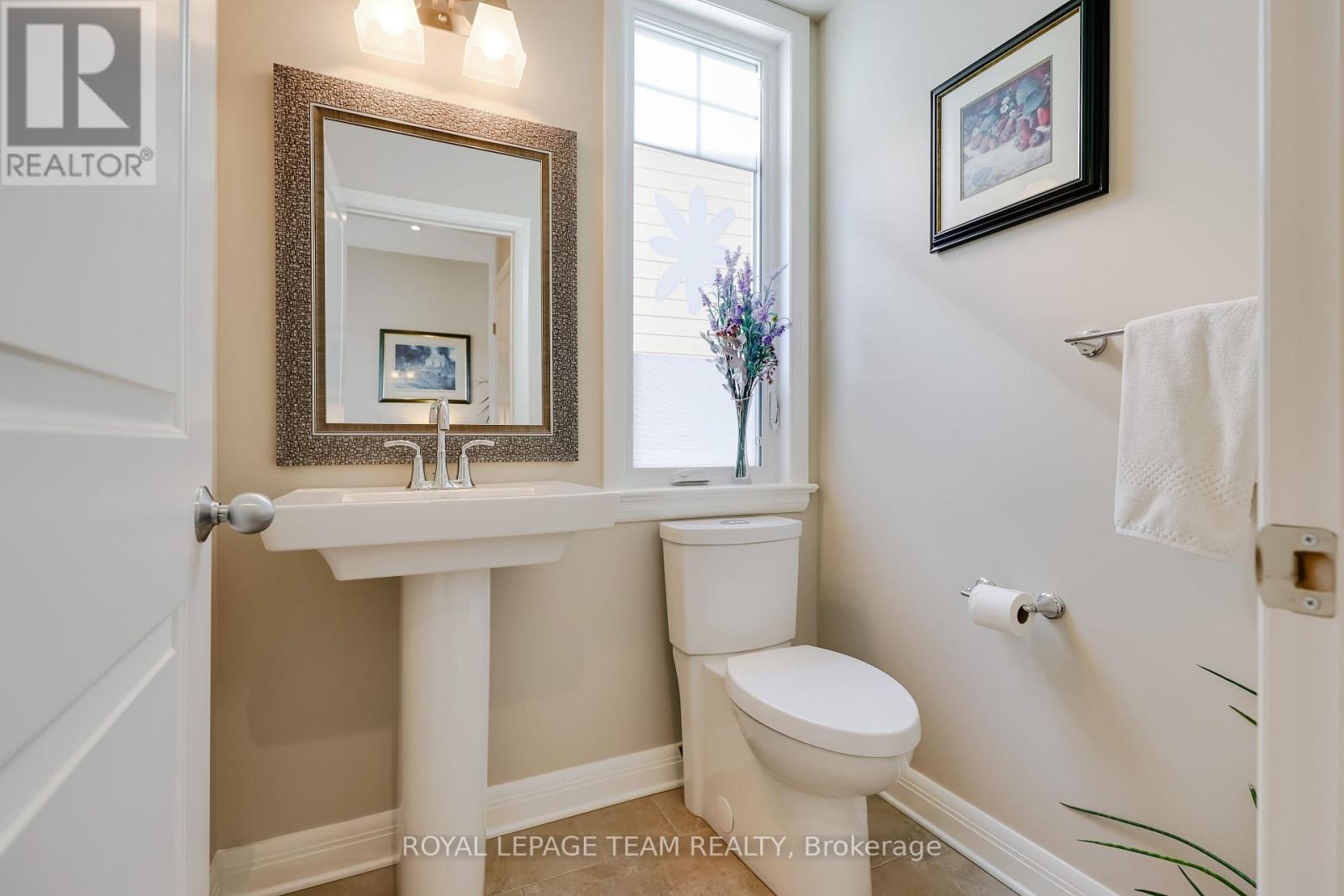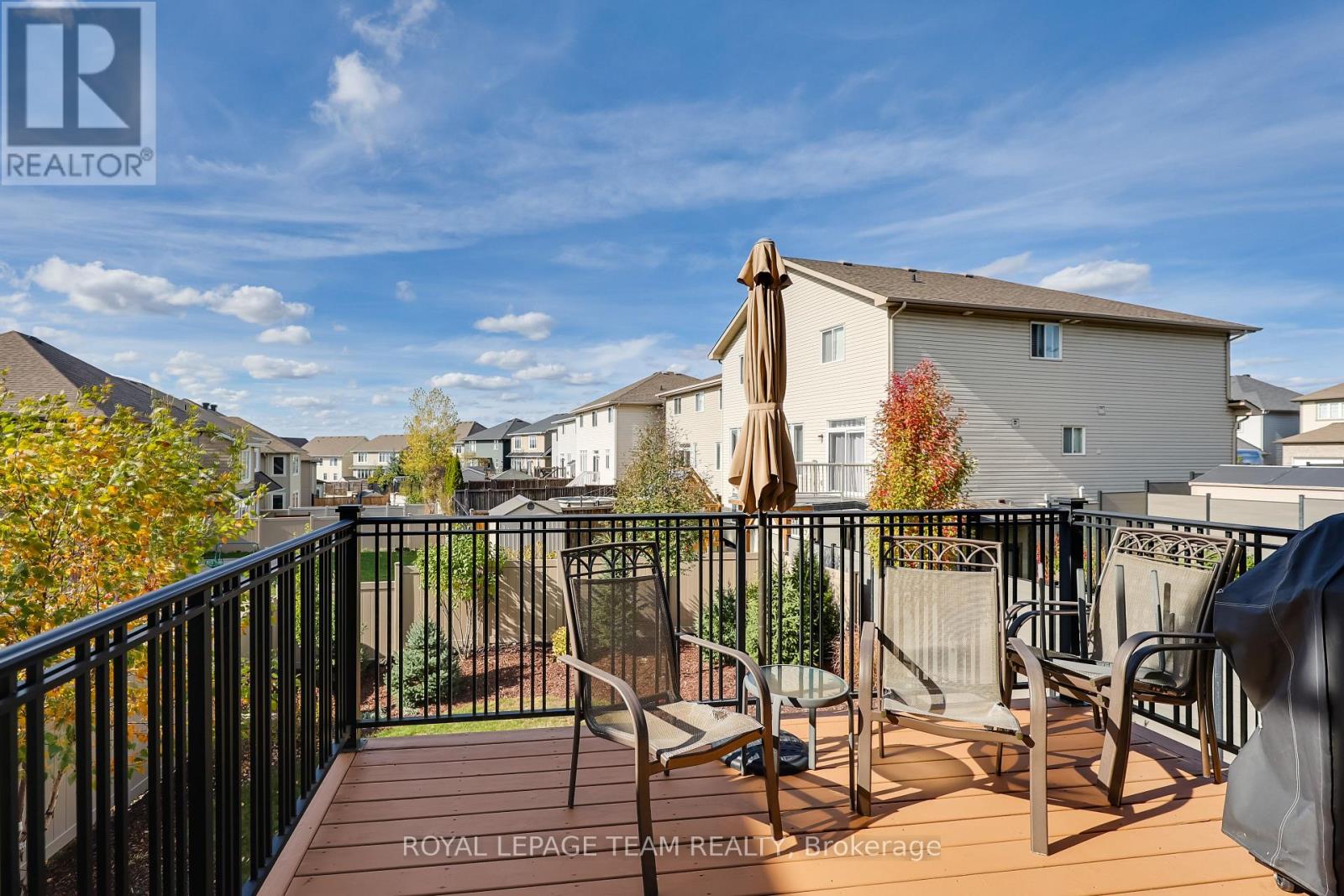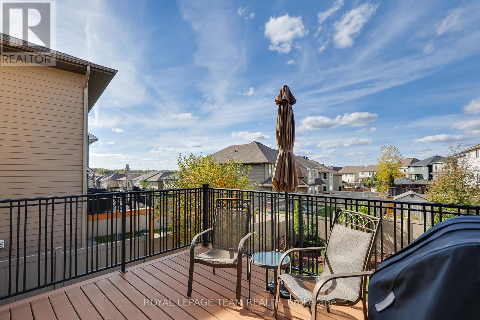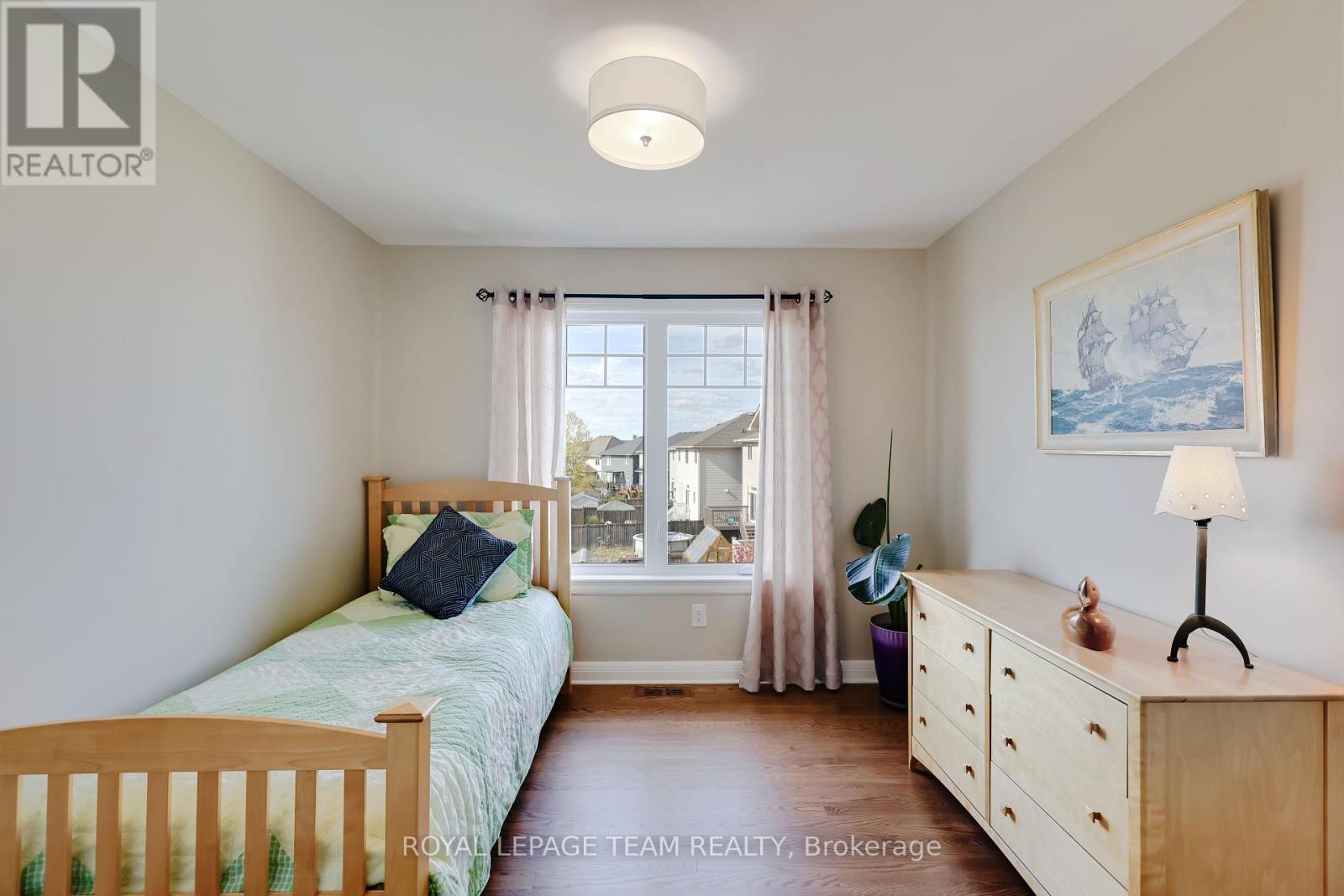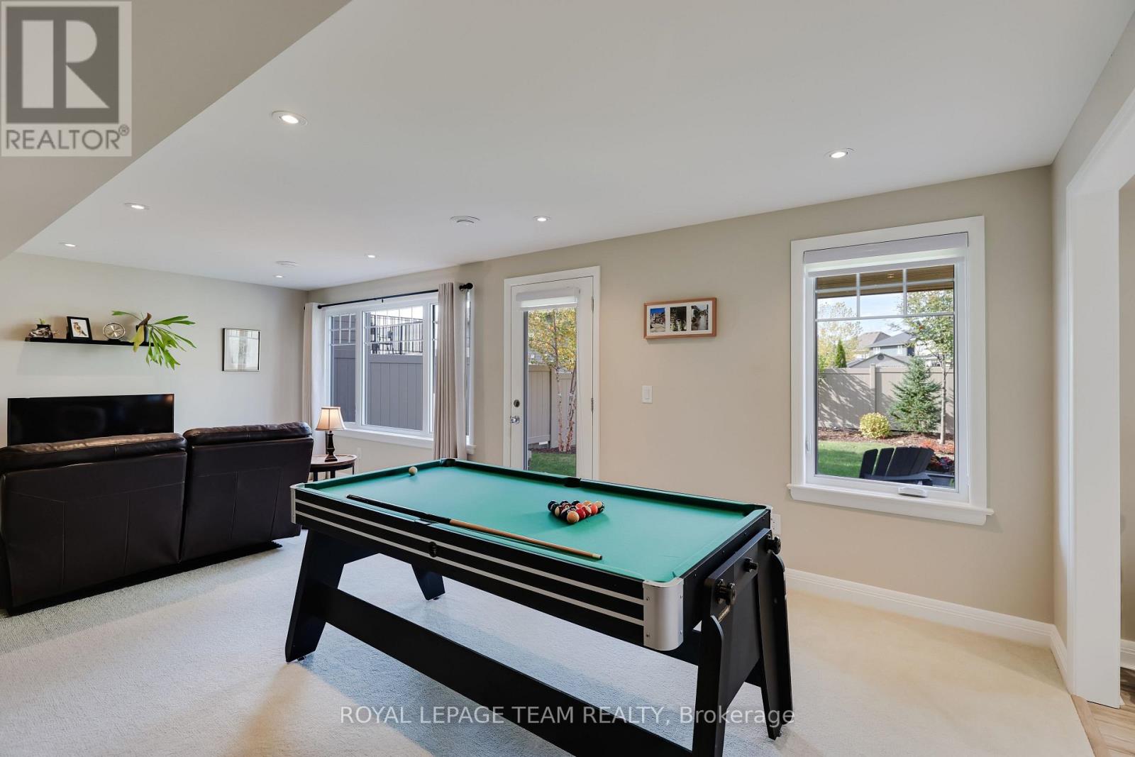 Facing the park and featuring a builder-finished walkout basement, this elegant home is located in the prestigious Kanata Lakes community and has been lovingly maintained by its original owner. Offering nearly 3,000 sq.ft of bright, functional living space, this 4-bedroom, 4-bathroom Uniform-built Griffith model includes a main-floor office and a loft designed for todays modern family. The large front porch overlooks Richardson Heritage Park and playground, creating the perfect spot to relax while watching the kids play. Inside, the open-concept layout highlights oak site-finished hardwood floors, upgraded tiles, and pot lights throughout both levels. The living and dining areas are filled with natural light and anchored by a cozy gas fireplace. The kitchen is a true showpiece, boasting custom Deslaurier cabinetry with crown moulding, granite countertops, a large island with bar seating, premium Samsung appliances, and under-cabinet lighting. Adjacent to the kitchen, the integrated mudroom and laundry area offers a sink, upper cabinets, extra storage, and direct access from the garage for added convenience. Upstairs, the primary suite with raised ceiling and pot lights overlooks the park and features a luxurious 5-piece ensuite with soaker tub, glass shower, double vanities, and custom cabinetry. Three additional well-sized bedrooms, a loft, and a full bath complete the second level. The builder-finished walkout basement provides bright, versatile space perfect for a recreation room, gym, or guest suite, complete with a 3-piece bathroom. Step outside to enjoy a fully landscaped backyard with a lower stone patio, upper deck, perennials, and PVC fencing. Additional upgrades include pot lights, brushed metal stair spindles, granite countertops throughout, and upgraded tiles and cabinetry. Surrounded by top-rated schools, parks, shopping, and the Kanata Tech Hub, this move-in ready home offers luxury, comfort, and an unbeatable location. Rarely Find, Act Fast! (id:49712)
