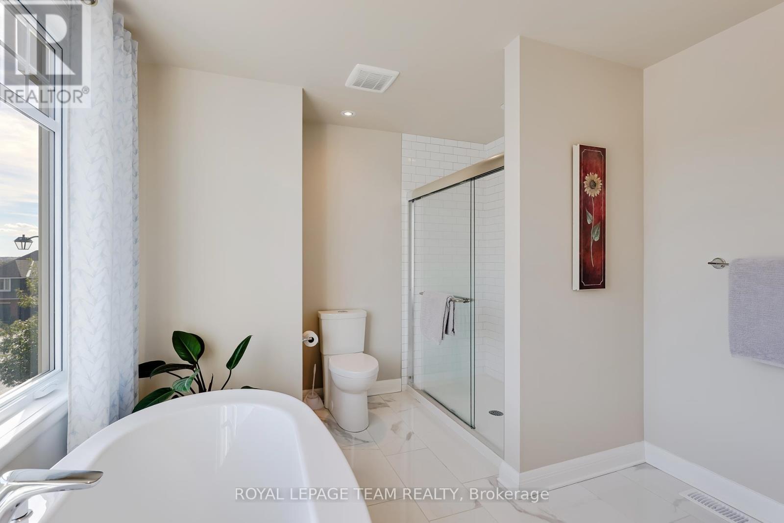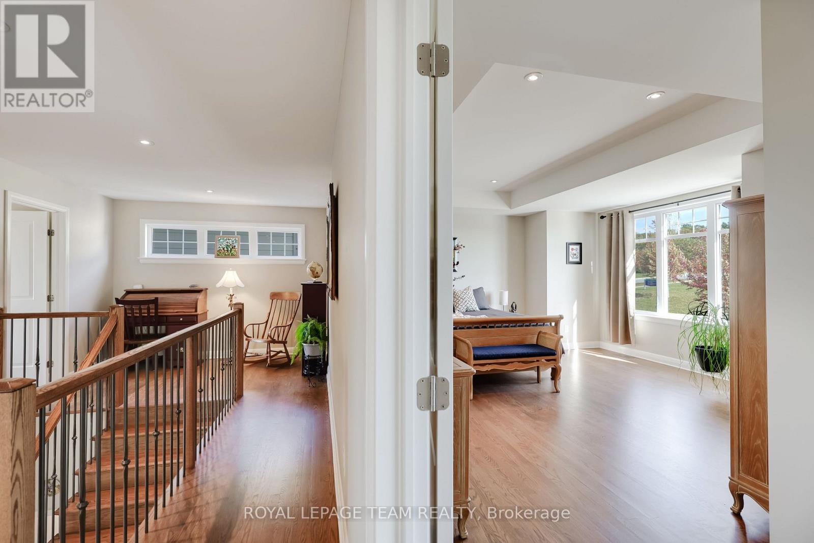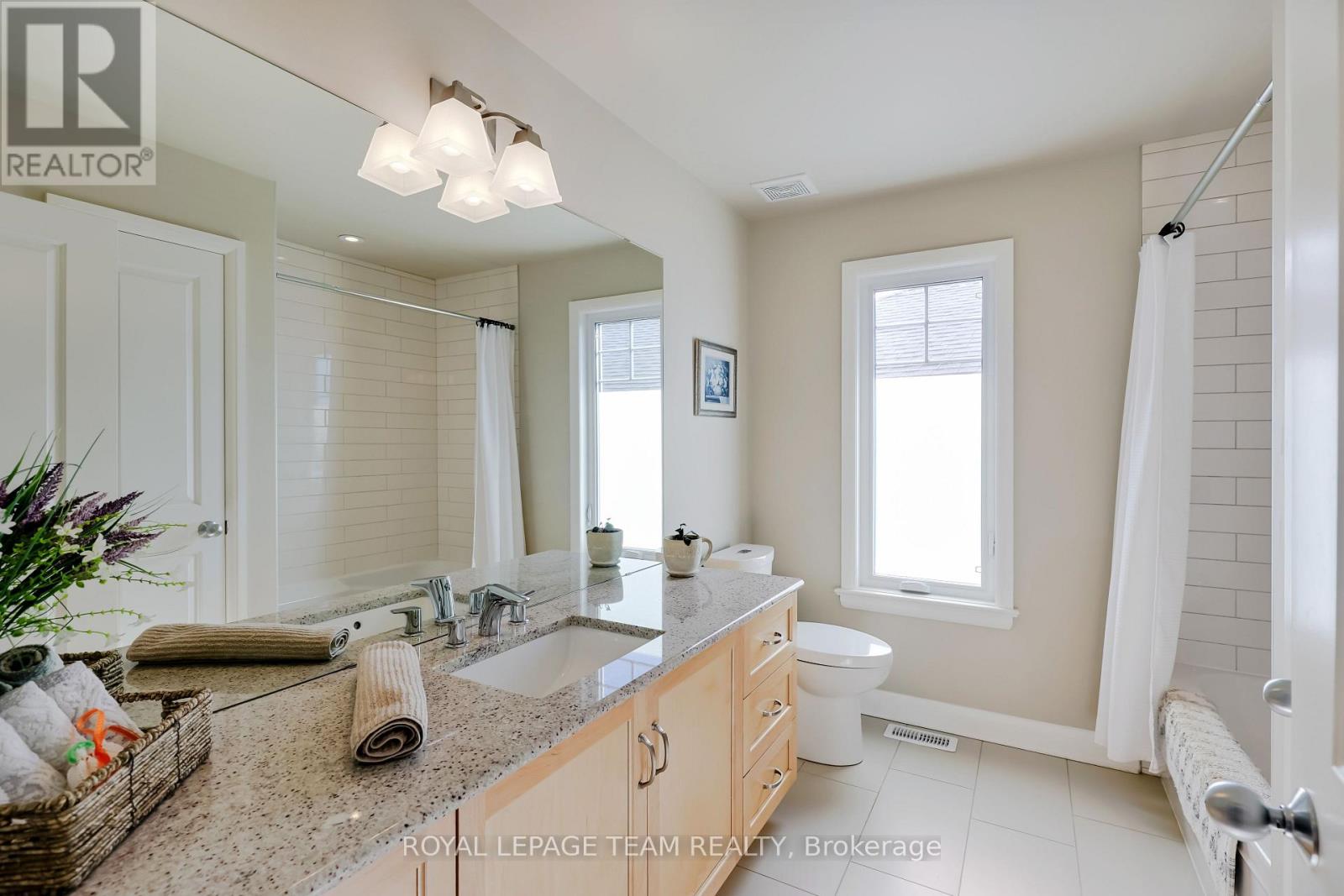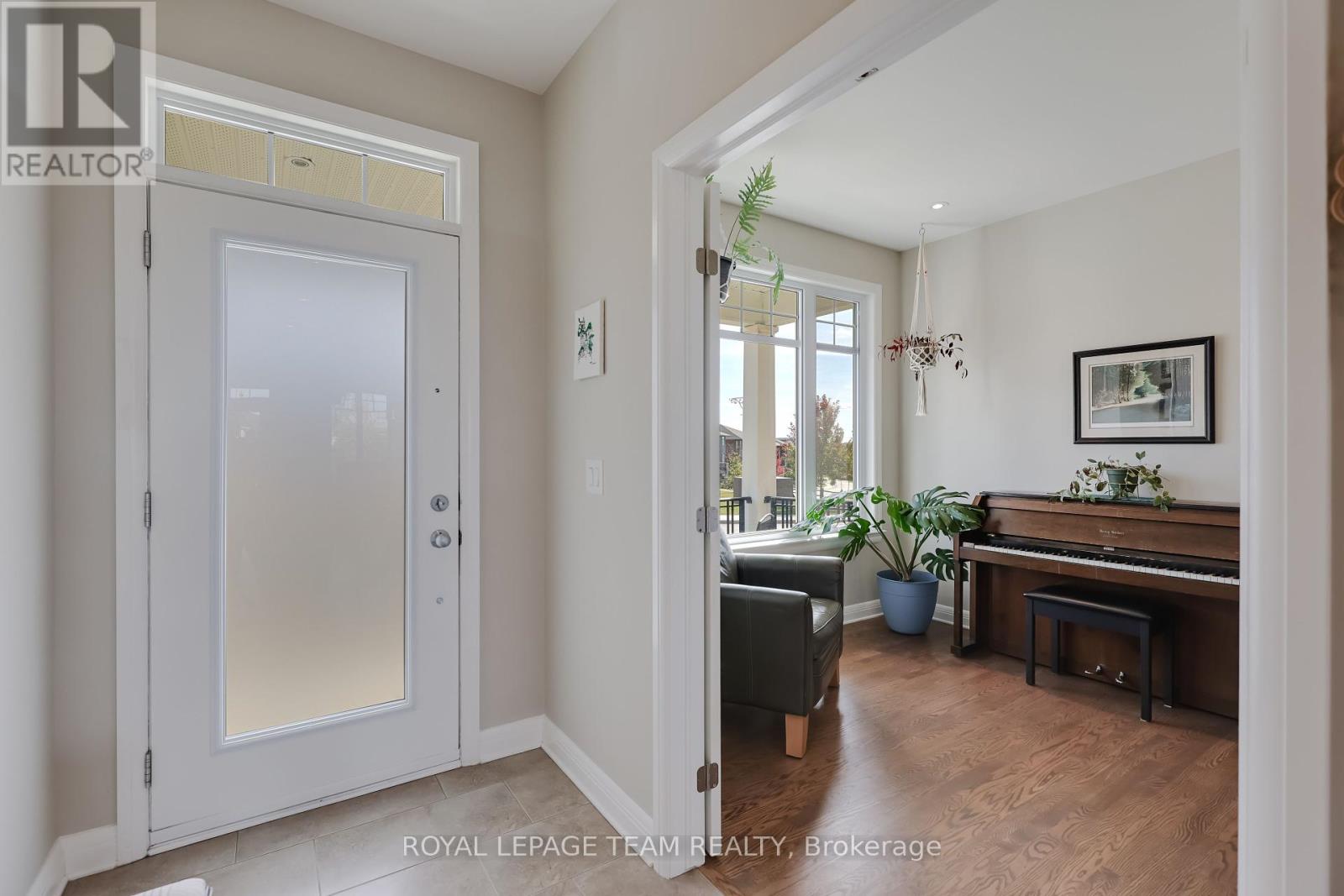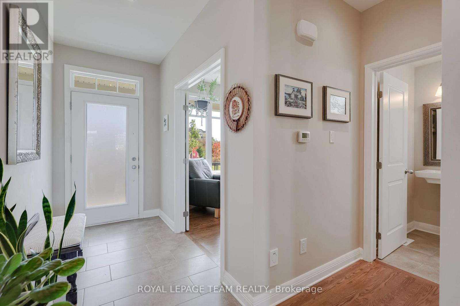 Facing the park and featuring a builder-finished walkout basement, this elegant home is located in the prestigious Kanata Lakes community and has been lovingly maintained by its original owner. Offering nearly 3,000 sq.ft of bright, functional living space, this 4-bedroom, 4-bathroom Uniform-built Griffith model includes a main-floor office and a loft designed for todays modern family. The large front porch overlooks Richardson Heritage Park and playground, creating the perfect spot to relax while watching the kids play. Inside, the open-concept layout highlights oak site-finished hardwood floors, upgraded tiles, and pot lights throughout both levels. The living and dining areas are filled with natural light and anchored by a cozy gas fireplace. The kitchen is a true showpiece, boasting custom Deslaurier cabinetry with crown moulding, granite countertops, a large island with bar seating, premium Samsung appliances, and under-cabinet lighting. Adjacent to the kitchen, the integrated mudroom and laundry area offers a sink, upper cabinets, extra storage, and direct access from the garage for added convenience. Upstairs, the primary suite with raised ceiling and pot lights overlooks the park and features a luxurious 5-piece ensuite with soaker tub, glass shower, double vanities, and custom cabinetry. Three additional well-sized bedrooms, a loft, and a full bath complete the second level. The builder-finished walkout basement provides bright, versatile space perfect for a recreation room, gym, or guest suite, complete with a 3-piece bathroom. Step outside to enjoy a fully landscaped backyard with a lower stone patio, upper deck, perennials, and PVC fencing. Additional upgrades include pot lights, brushed metal stair spindles, granite countertops throughout, and upgraded tiles and cabinetry. Surrounded by top-rated schools, parks, shopping, and the Kanata Tech Hub, this move-in ready home offers luxury, comfort, and an unbeatable location. Rarely Find, Act Fast! (id:49712)