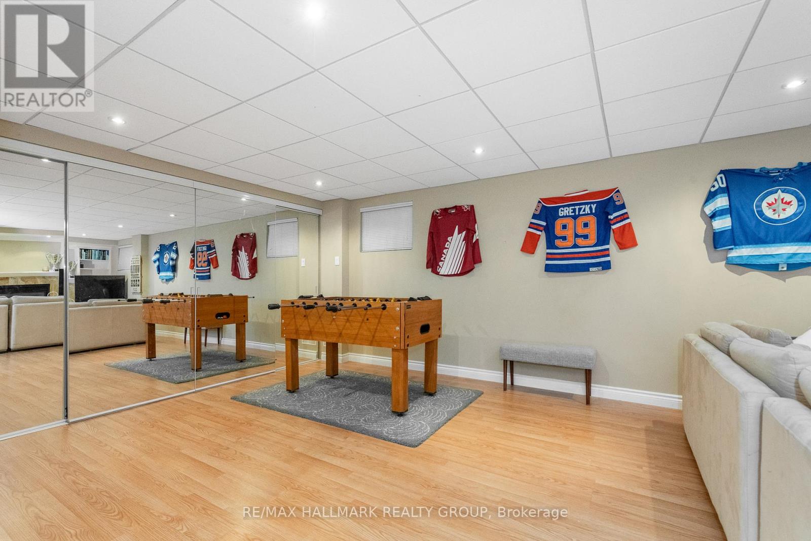 Attractive landscaping and interlock stone walkway enhance the curb appeal of this lovingly maintained home. Pride of ownership is evident as you step inside a bright front entry with tile floor and a double coat closet. A traditional floor plan features spacious living room and dining room, which are set apart for formal entertaining. These rooms are enhanced with large bay windows and gleaming hardwood floor which is extended throughout the main level. Cooking will become an enjoyable task in the updated kitchen offering sleek granite countertops, shaker-style cabinetry including pot drawers, tile backsplash, and every cook's dream, a wall-to-wall pantry. The bright eating area enjoys tranquil views of the back yard setting and is open to the family room, featuring an attractive fireplace, built-in cabinetry, and patio doors offering plenty of natural light and easy access to the back yard. Mud room with extra-large closet (originally housing the laundry, which has been relocated to the lower level), and powder room are conveniently located. Hardwood staircase leads to the 2nd level. Originally a 4-bedroom, the 4th bedroom has been converted to a luxury walk-in closet for the primary bedroom (seller will reinstate if requested), which also enjoys a private ensuite bath with a glass shower stall. Two additional bedrooms are well proportioned with ample closet space, and the main bath is a 4-piece. The lower level has been developed to include a recreation room with a second fireplace and wall-to-wall cabinetry, office/hobby room and the oversized relocated laundry with plenty of storage space. Last but not least! Enjoy the private fully-fenced back yard with deck, hot tub, patio and plenty of room to personalize this space. Quiet, family-friendly crescent within easy access to all the fabulous amenities that Barrhaven offers. Quiet crescent with excellent amenities nearby. Come back to stay! Day-before notice for appointments. 24-hrs on offers. (id:49712)
