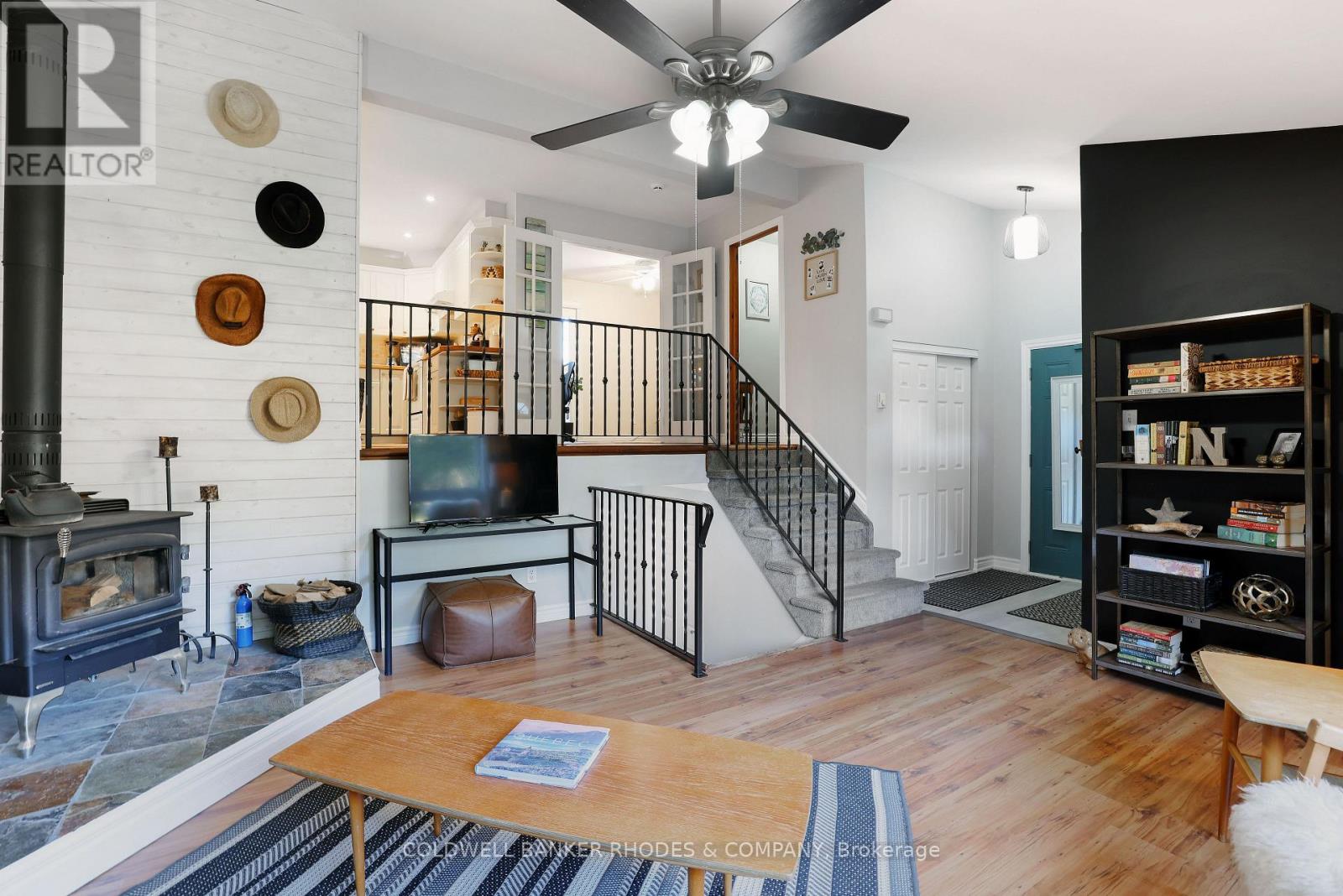 Charming country living minutes from Carleton Place! Move-in condition 3 bedroom, 1.5 bathroom backsplit style detached home on a lovely approx. 2 acre lot with spacious detached workshop. Main floor living room with wood stove and soaring ceilings open to the upper level. Large picture windows allow for a bright, sunny home throughout the year! Upper level features open concept kitchen/dining/family room perfect for entertaining with patio door leading to back yard deck. Kitchen features centre island with butcher block countertops, ceramic tile flooring and ample cabinetry. Upper level also features a powder room and a closed door office/den with patio doors to deck. Lower level features three good sized bedrooms, renovated 5 piece bathroom with double sinks (2020), laundry room and lots of storage. Attached double garage with inside entry. Spacious insulated workshop has power and loft storage - perfect for an artist workshop or hobbyist. Treed lot offers serene privacy with conifers, fruit trees and natural beauty. Perfect for an active lifestyle with a recreational trail at the end of Lake Park Rd allowing you to safely walk into Carleton Place. Other recent updates include: primary sump pump & back up sump pump (2023), water treatment system including the softener and water filter (2022), home and workshop exterior completely painted (2020), water pressure tank (2020), re-shingled roof (2019). (id:49712)