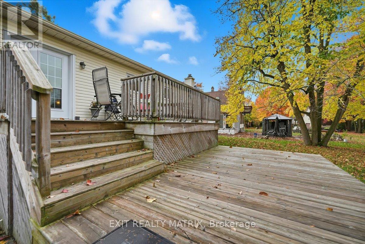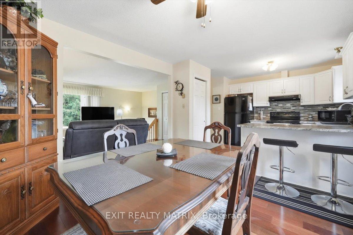 Charming and spacious, this beautifully maintained home is set on a generous, tree-lined lot with mature landscaping, providing both curb appeal and lovely outdoor privacy. The main floor offers a bright and inviting living room with beautiful hardwood flooring and a large picture window. The hardwood continues into the recently updated kitchen, complete with a pantry and an open layout connecting to the dining area, which features patio doors leading to the deck - perfect for indoor-outdoor entertaining. Three spacious bedrooms and a full bathroom complete the main floor, offering comfort and convenience for family living. The recently finished lower level (2023) offers endless possibilities with its spacious 27'10" x 25'9" layout. It features a bar area, cozy wood stove, a full 3-piece bathroom, a large utility room, and the potential to create a fourth bedroom - ideal for guests, hobbies, or additional living space. The generously sized deck is perfect for summer barbecues, morning coffee, or simply unwinding outdoors. The surrounding yard provides plenty of green space for play, gardening, bonfires or watching the sunsets. Whether you're hosting friends on the deck or letting kids or pets roam freely, the outdoor setting complements the home beautifully and enhances your lifestyle. The oversized detached single garage features dual overhead garage doors (front and rear) for ease of access and great flexibility-ideal for vehicles, hobby space or storage. Easy access to nearby schools, Keith M. Boyd Park & playground, 10 km paved New York Central Recreational Trail, Arena, Sports dome and soon to be Recreation Complex with 3 ice rinks, a 25-meter indoor pool & more, giving you both convenience and adventure. Just a short drive to Ottawa-making commuting or city-access a breeze, while enjoying small-town charm and atmosphere. great for families or those seeking calm and community. (id:49712)