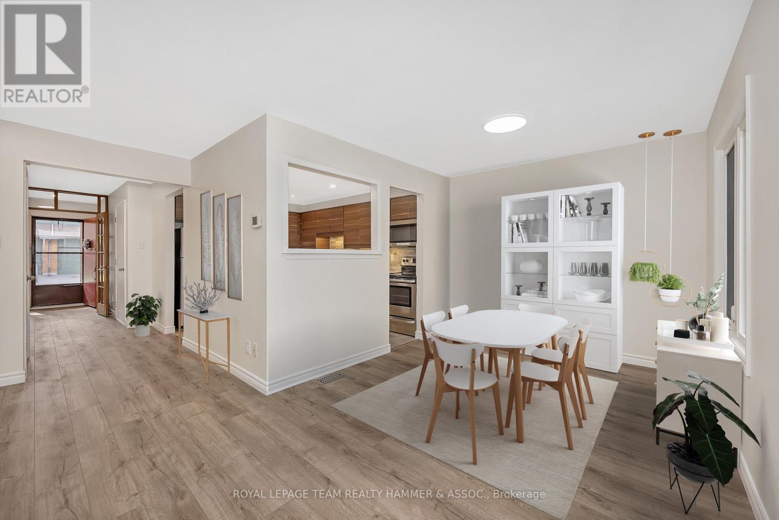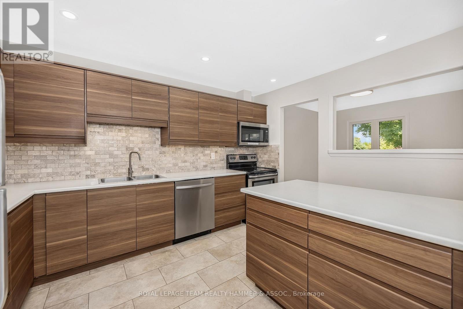 ** Open House Sun Nov 30 from 2-4PM ** 8 Chisholm Court, a beautifully updated and move-in-ready 4-bedroom, 3-bath end-unit townhome on a desirable corner lot in the heart of Beaverbrook, Kanata. Bright, spacious, and thoughtfully redesigned, this home offers a smart layout with stylish updates throughout.The main floor features a wide foyer leading to a stunning renovated kitchen with melamine countertops, sleek cabinetry, and abundant natural light. The open-concept living and dining areas provide the perfect flow for everyday living and entertaining, enhanced by brand-new luxury vinyl FLOORING (2025), fresh PAINT (2025), updated POT LIGHTS (2025), and a modern powder bath. A major highlight of this home is the conversion from baseboard heating to forced air, a rare and highly valued upgrade in this community, offering enhanced comfort and efficiency. Upstairs, the spacious primary suite boasts a walk-in closet and private 3-piece ensuite. Three additional generously sized bedrooms each include ample closet space and share a beautifully updated full bathroom, offering comfort and convenience for the whole family.The finished lower level extends the living space with a large recreation room, laundry area, and excellent storage. Step outside to your private backyard oasis with no rear neighbours, creating the ideal setting for summer BBQs, playtime, or relaxing in the sun with full privacy.Located in the sought-after Beaverbrook/Kanata North area, this home offers unmatched access to countless parks, playgrounds, and walking/biking trails, including the Trans Canada Trail. Minutes from Kanata Centrum and Hazeldean Mall with shops, restaurants, cinemas, and groceries close by. Pets are welcome - this condo has no pet restrictions, adding flexibility and peace of mind for animal lovers. With its rare forced-air upgrade, stylish renovations, and prime location, 8 Chisholm Court delivers comfort, convenience, and a move-in-ready lifestyle you'll love coming home to. (id:49712)