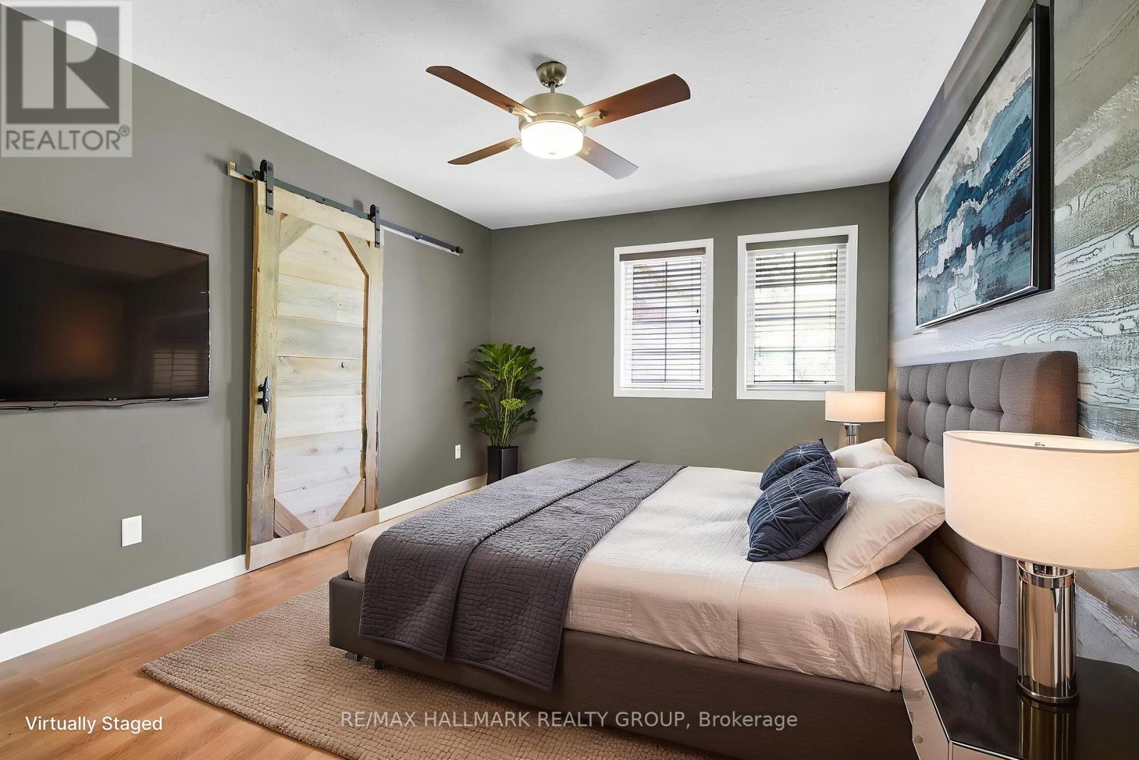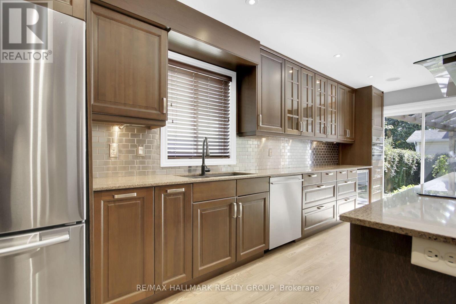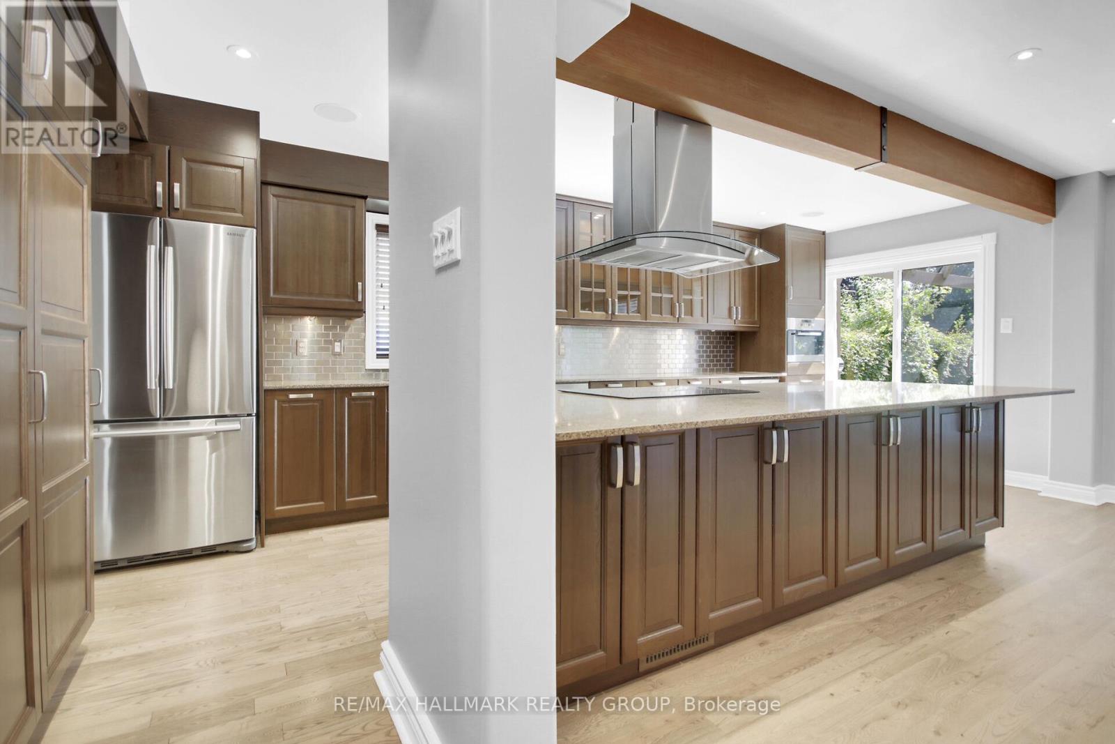 This home will WOW you with luxury in its 2-stories boasting 3 spacious bedrooms and 3 elegant bathrooms. Gleaming hardwood floors! Stone wall in the dining room! Amazing custom kitchen with granite counters, huge island with cooktop, hood fan and built-in dual ovens; large built-in microwave and beverage fridge, a ton of cupboards, a desk area and living room area. The second floor offers a large yet cozy family room with fireplace perfect for gatherings, primary bedroom with ensuite and walk-in closet. Two good sized bedrooms and full bathroom. The beautifully finished lower level has a feature wall, games table, laundry and storage. Comfortable fenced backyard with pergola and shed provide a private area to relax. Nestled on a quiet court in a vibrant community, this home offers the perfect blend of comfort and convenience. Don't miss your chance to call this extraordinary property home! (id:49712)