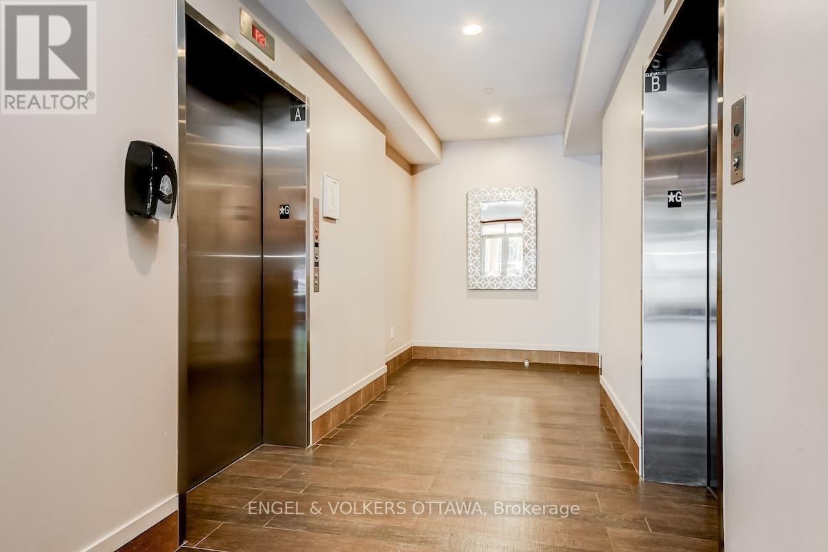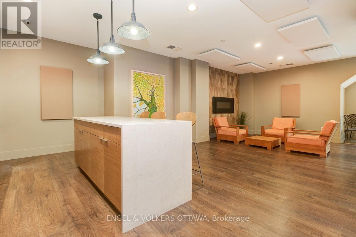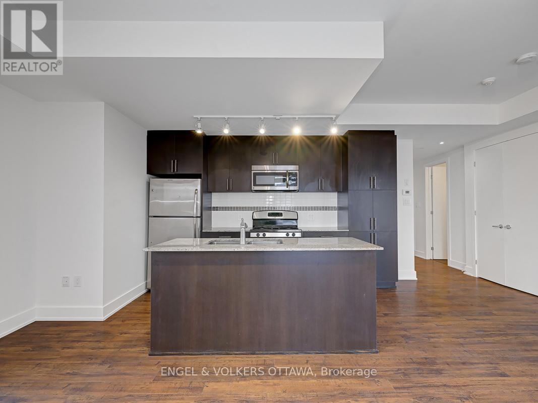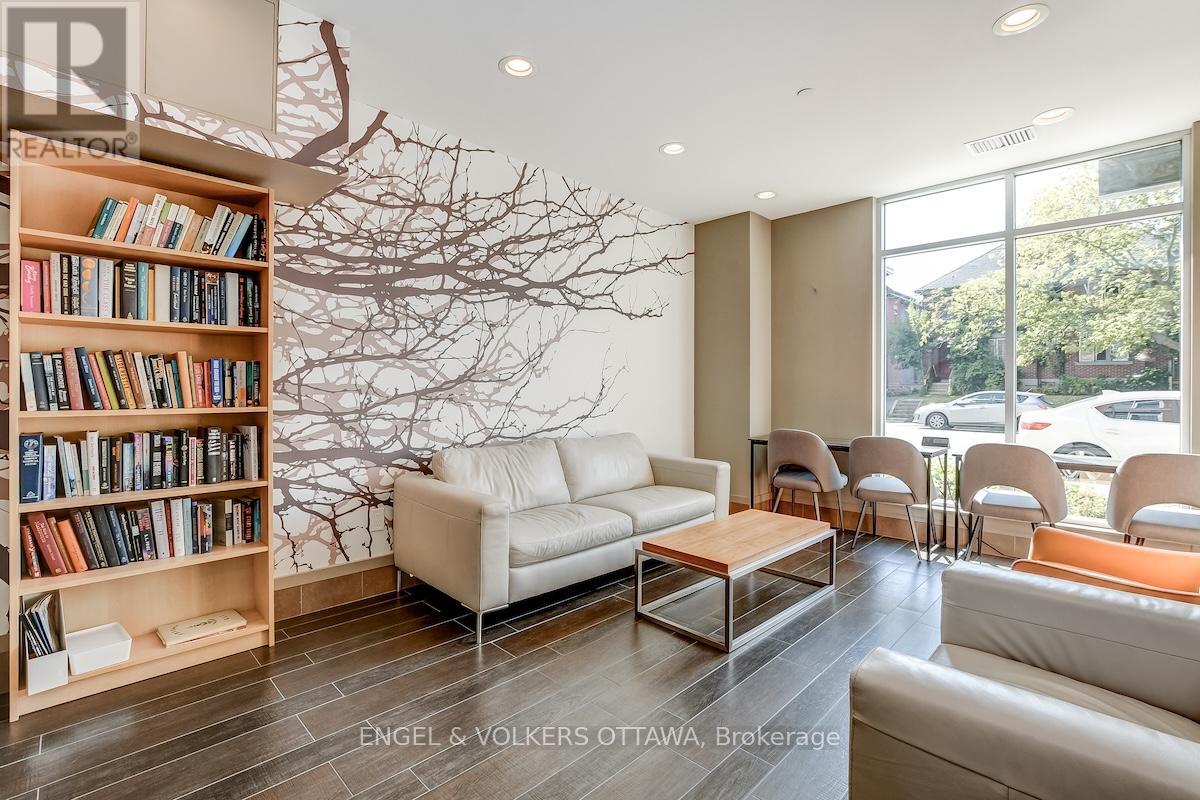 $840 MonthlyLeed certified building in excellent location.Walk to great shops and restaurants. Transit at the front door. Dark stained wood laminate floors, stainless steel appliances, Garage parking and locker. Roof terrace, party room, meeting room, guest suite, gym and garden area. Listing agent related to sellers. Some photos virtually staged. Super condo in a great neighbourhood. Look out to top of trees. Small balcony, Parking space: P2 #42, Locker: P2 #21. Heat pump to be replaced by Condo Corporation in April 2026. Consideration for EV charging is being undertaken by the Board of Directors. (id:49712)