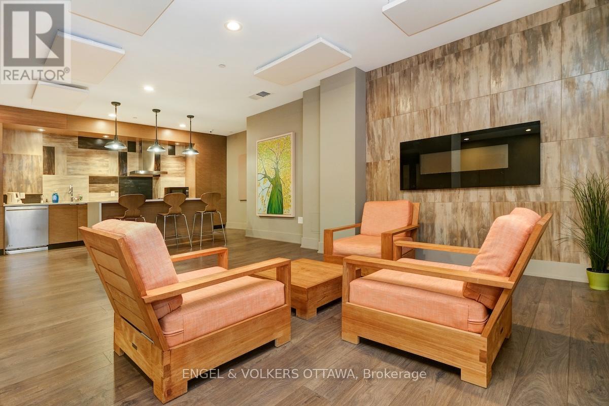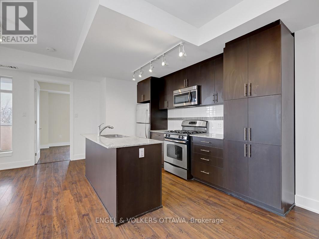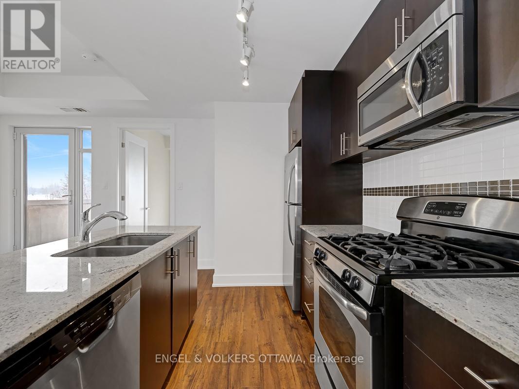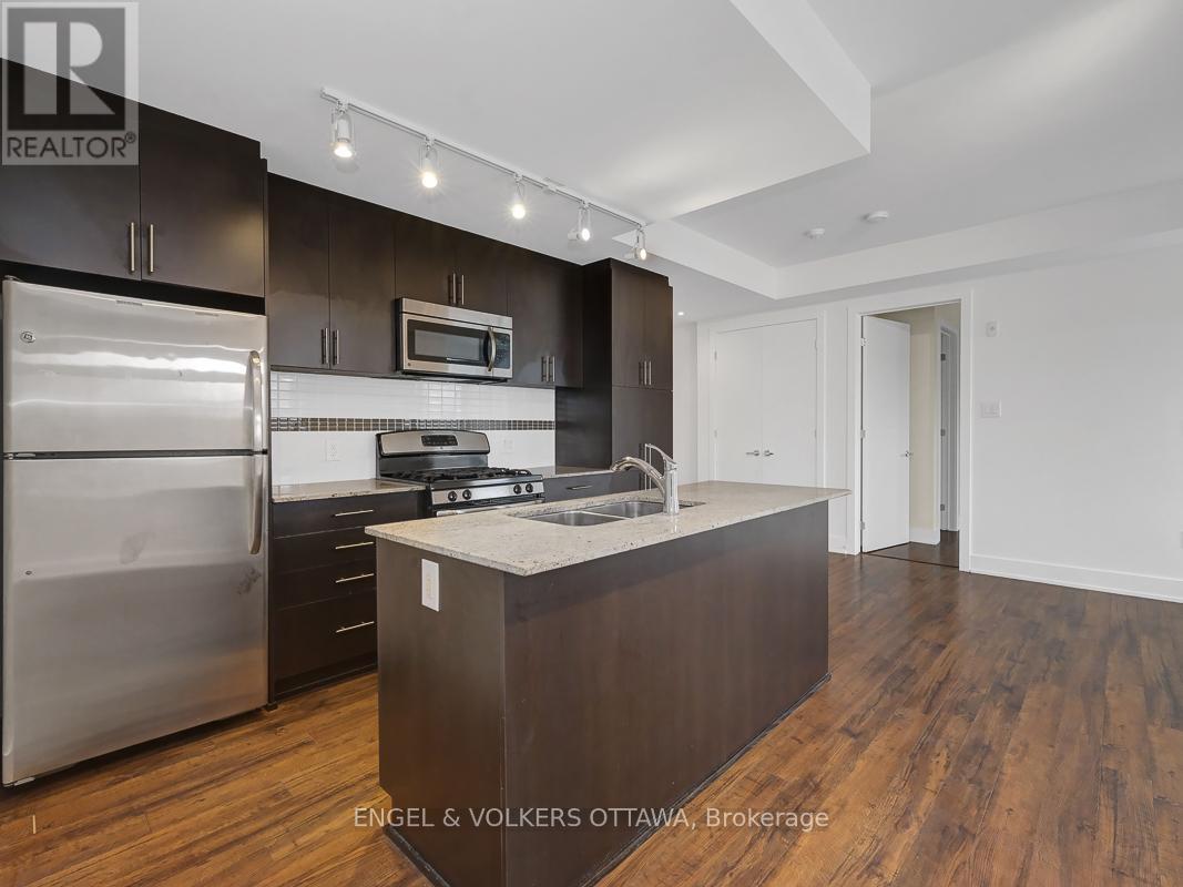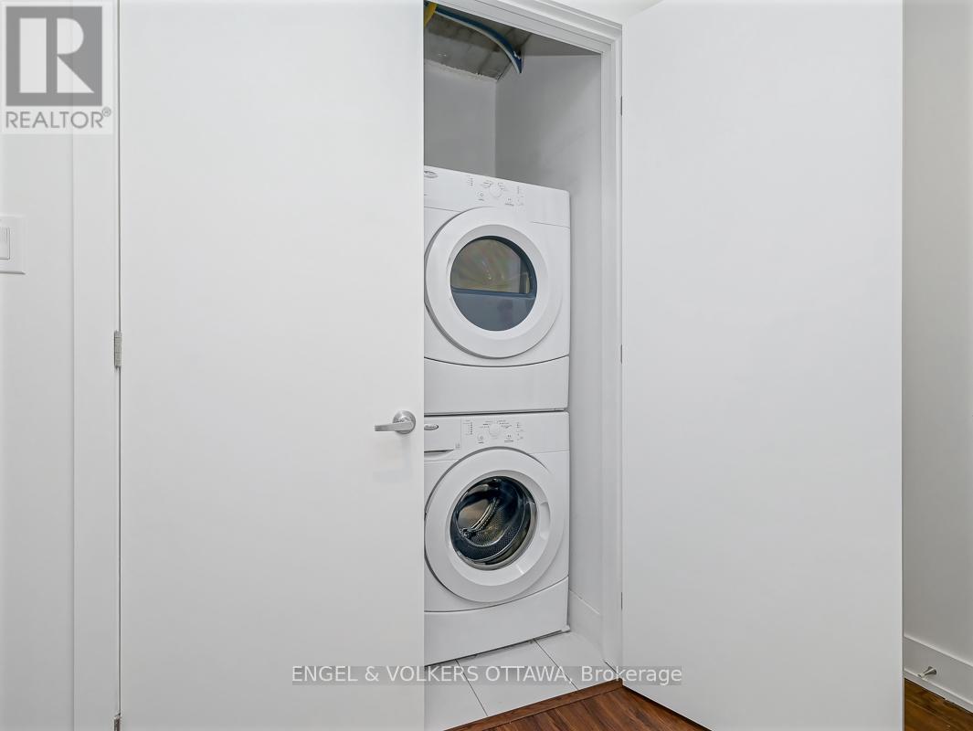 $840 MonthlyLeed certified building in excellent location.Walk to great shops and restaurants. Transit at the front door. Dark stained wood laminate floors, stainless steel appliances, Garage parking and locker. Roof terrace, party room, meeting room, guest suite, gym and garden area. Listing agent related to sellers. Some photos virtually staged. Super condo in a great neighbourhood. Look out to top of trees. Small balcony, Parking space: P2 #42, Locker: P2 #21. Heat pump to be replaced by Condo Corporation in April 2026. Consideration for EV charging is being undertaken by the Board of Directors. (id:49712)