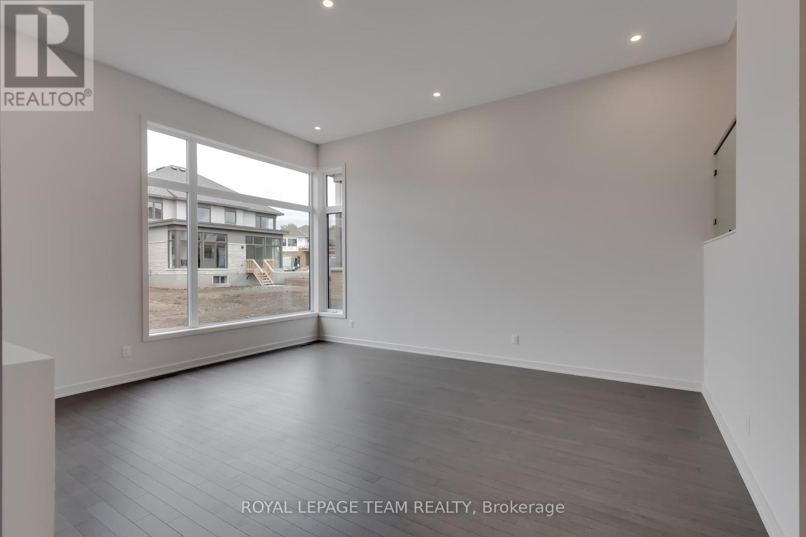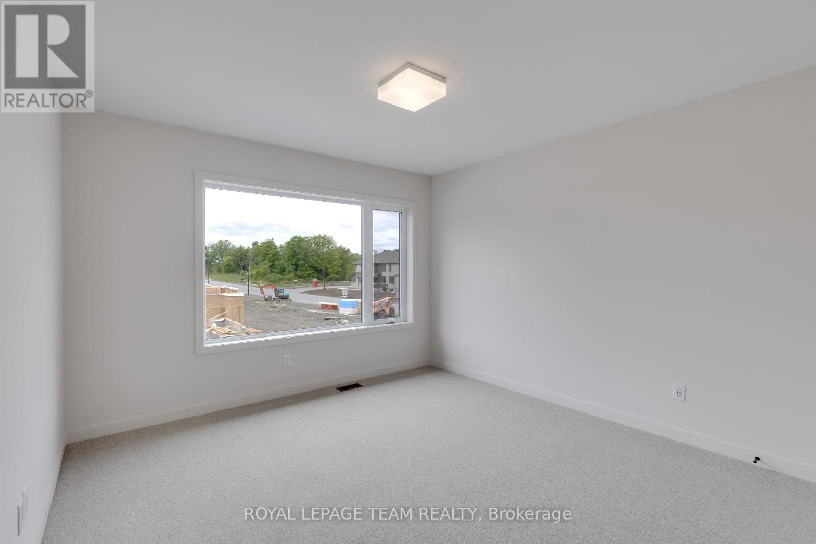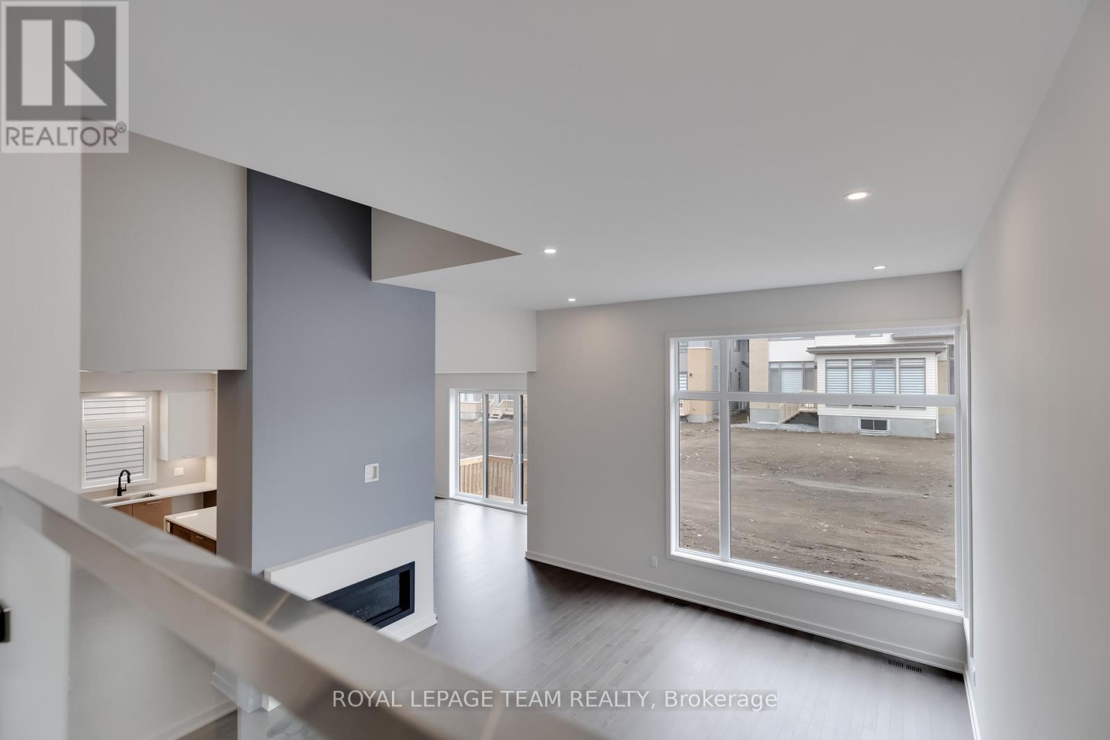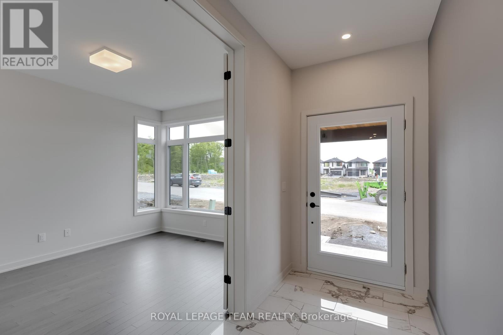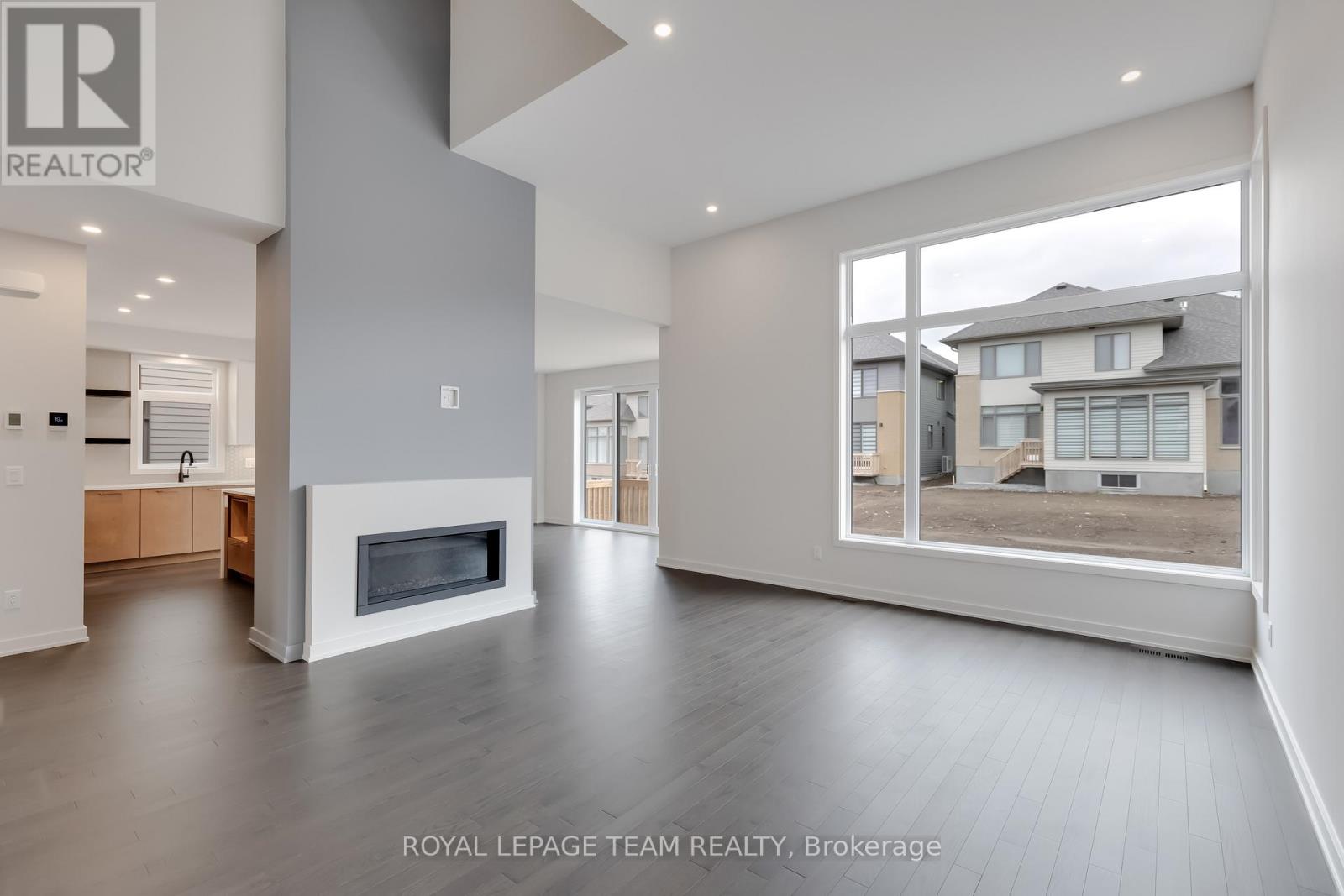 An architectural masterpiece in the prestigious Pond community of Kanata Lakes, this brand-new 4-bedroom residence by HN Homes seamlessly blends refined elegance, modern functionality, and exceptional craftsmanship. Set on a premium 44' lot with ideal east-west exposure, the home is filled with natural light from sunrise to sunset. The thoughtfully designed layout features tons of above-grade living space plus a finished basement, making it ideal for growing families. The main level showcases 9-foot smooth ceilings, wide-plank oak hardwood flooring, and large windows that amplify brightness and flow. The living room impresses with a soaring 12-foot ceiling and sleek linear gas fireplace, while a private den offers the perfect workspace or study zone. The gourmet kitchen includes a quartz waterfall island, full-height backsplash, custom cabinetry, and a walk-in pantry conveniently tucked between the kitchen and mudroom. A built-in coffee nook adds character and everyday functionality. The sunlit dining area connects seamlessly to the backyard through oversized four-panel patio doors - ideal for entertaining or quiet moments outdoors. Upstairs, the open-to-below hallway leads to a luxurious primary retreat with double doors, raised ceiling, transom windows, dual walk-in closets, and a spa-style 5-piece ensuite featuring an upgraded glass shower. One secondary bedroom enjoys direct access to the main bath, while the laundry room is enhanced with quartz counters, cabinets, and a sink. The finished basement offers a spacious family room and a 3-piece rough-in for future customization. With nearly $50K in builder upgrades - spot lights, capped fixtures, exterior lighting - this home is also energy-smart, with R60 attic insulation, a tankless water heater, and advanced environmental systems. Located near top schools, parks, and Kanata High Tech Park, this home truly delivers luxury, comfort, and lifestyle in one of Ottawa's most desirable communities. (id:49712)