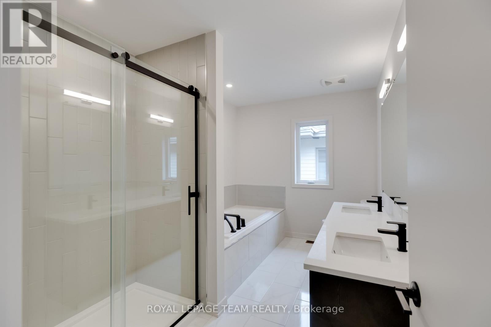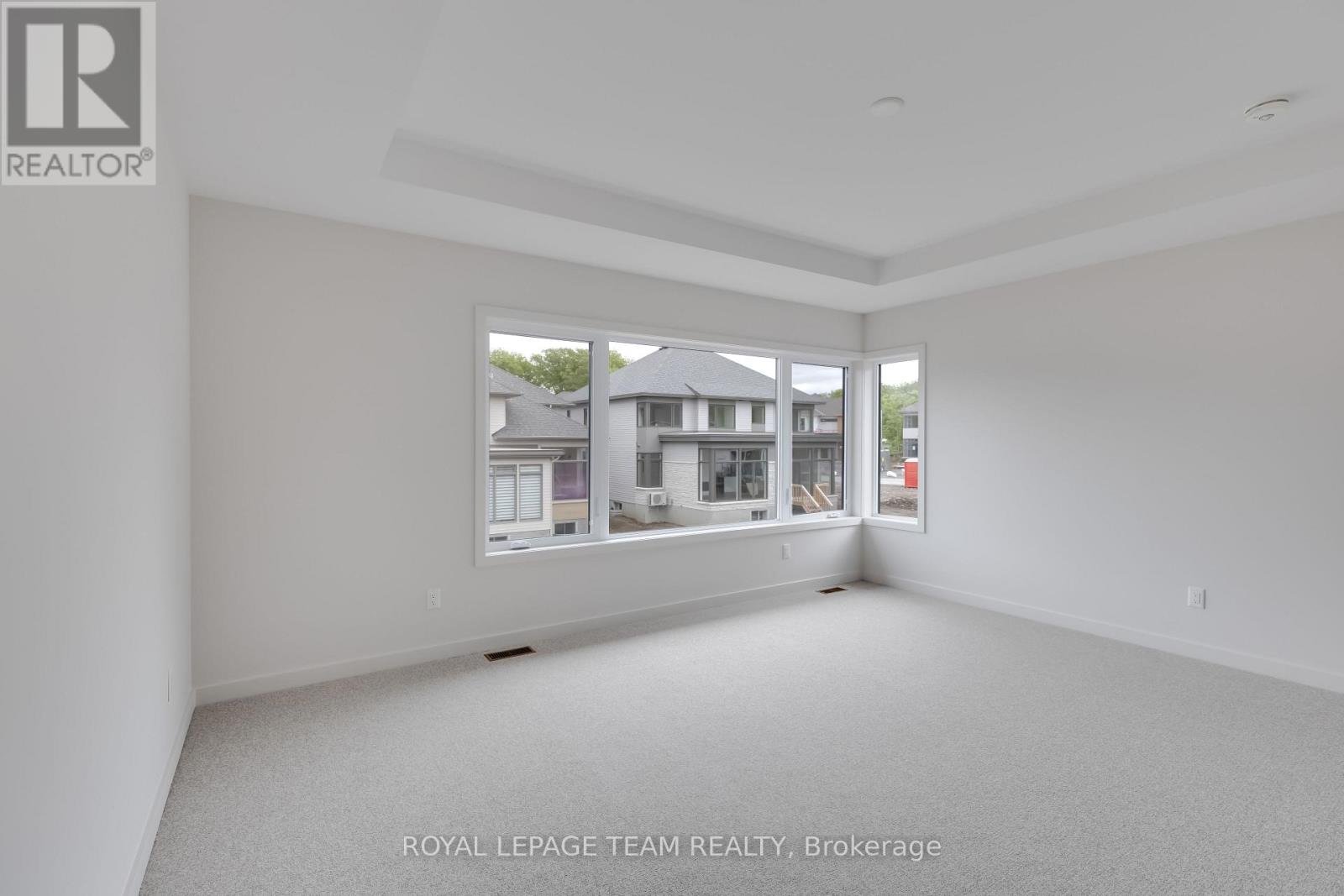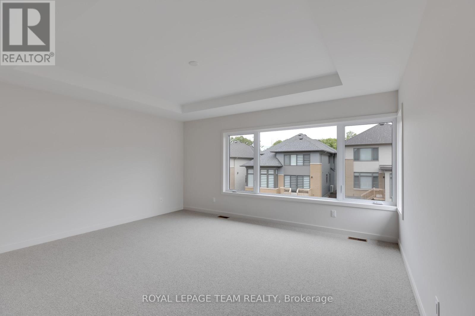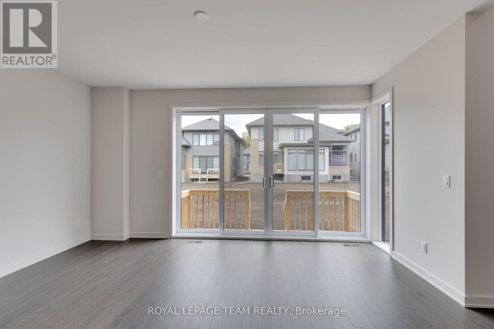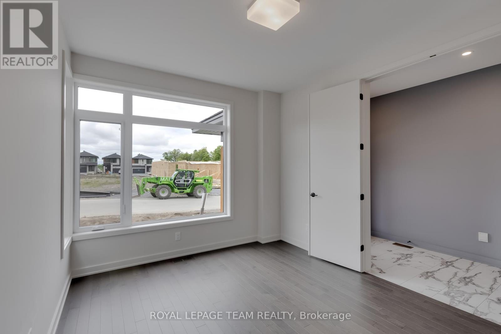 An architectural masterpiece in the prestigious Pond community of Kanata Lakes, this brand-new 4-bedroom residence by HN Homes seamlessly blends refined elegance, modern functionality, and exceptional craftsmanship. Set on a premium 44' lot with ideal east-west exposure, the home is filled with natural light from sunrise to sunset. The thoughtfully designed layout features tons of above-grade living space plus a finished basement, making it ideal for growing families. The main level showcases 9-foot smooth ceilings, wide-plank oak hardwood flooring, and large windows that amplify brightness and flow. The living room impresses with a soaring 12-foot ceiling and sleek linear gas fireplace, while a private den offers the perfect workspace or study zone. The gourmet kitchen includes a quartz waterfall island, full-height backsplash, custom cabinetry, and a walk-in pantry conveniently tucked between the kitchen and mudroom. A built-in coffee nook adds character and everyday functionality. The sunlit dining area connects seamlessly to the backyard through oversized four-panel patio doors - ideal for entertaining or quiet moments outdoors. Upstairs, the open-to-below hallway leads to a luxurious primary retreat with double doors, raised ceiling, transom windows, dual walk-in closets, and a spa-style 5-piece ensuite featuring an upgraded glass shower. One secondary bedroom enjoys direct access to the main bath, while the laundry room is enhanced with quartz counters, cabinets, and a sink. The finished basement offers a spacious family room and a 3-piece rough-in for future customization. With nearly $50K in builder upgrades - spot lights, capped fixtures, exterior lighting - this home is also energy-smart, with R60 attic insulation, a tankless water heater, and advanced environmental systems. Located near top schools, parks, and Kanata High Tech Park, this home truly delivers luxury, comfort, and lifestyle in one of Ottawa's most desirable communities. (id:49712)