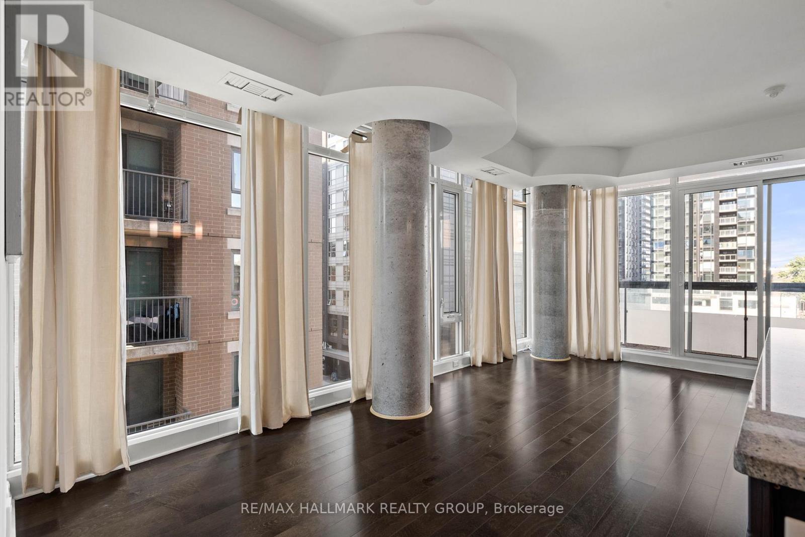 Experience downtown living at its best in this bright and spacious 2-bedroom, 2-bath condo at 238 Besserer Street. Perfectly located steps from the ByWard Market, Rideau Canal, LRT, University of Ottawa, and the citys best restaurants and shops, this condo combines modern comfort with unbeatable convenience.The open-concept layout features large floor-to-ceiling windows that flood the space with natural light, complemented by hardwood floors and in-unit laundry for everyday ease. The contemporary kitchen is complete with stainless steel appliances, granite countertops, and a large island with seating - ideal for cooking, dining, and entertaining.Enjoy your morning coffee or unwind in the evening on your private balcony overlooking the lively downtown core. Both bedrooms are generously sized, with the primary suite offering its own ensuite bathroom for added privacy.The building offers premium amenities including an indoor pool, fitness centre, sauna, party room, and a spacious outdoor courtyard perfect for relaxing or socializing. Secure entry and 24-hour monitoring provide peace of mind.Storage locker included. Heat, water, and air conditioning are all covered in the condo fees.Whether you're a professional, student, or investor, this stylish residence delivers the perfect blend of comfort, convenience, and downtown lifestyle (id:49712)